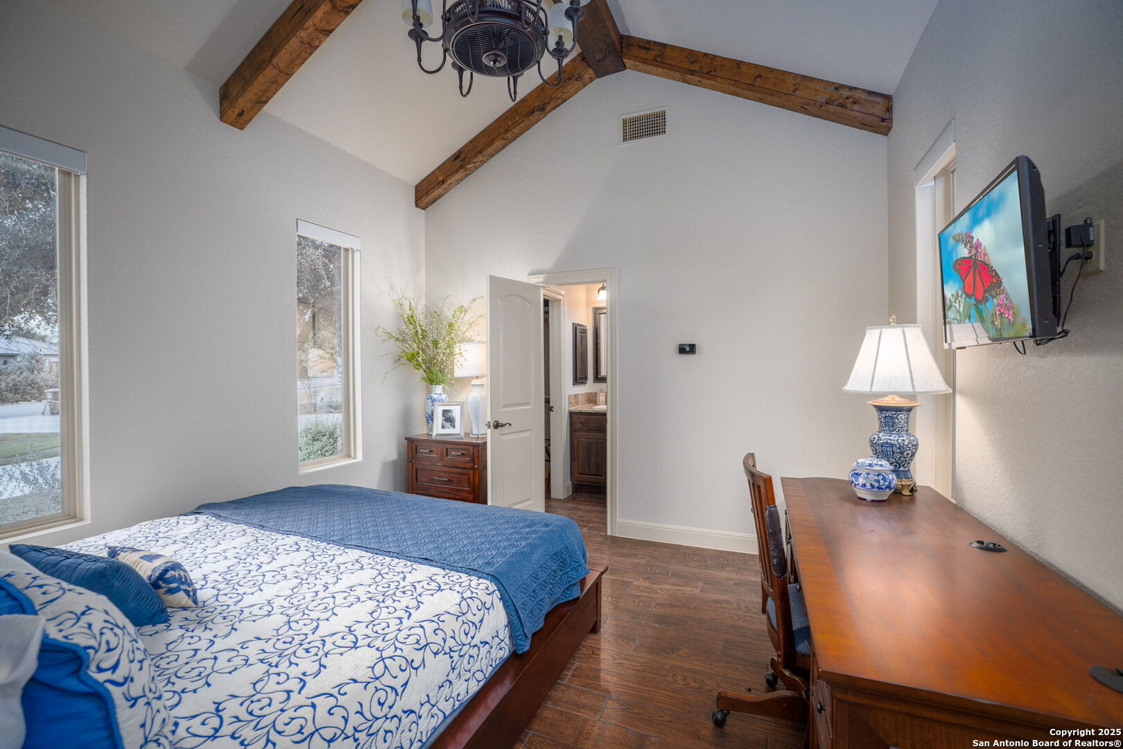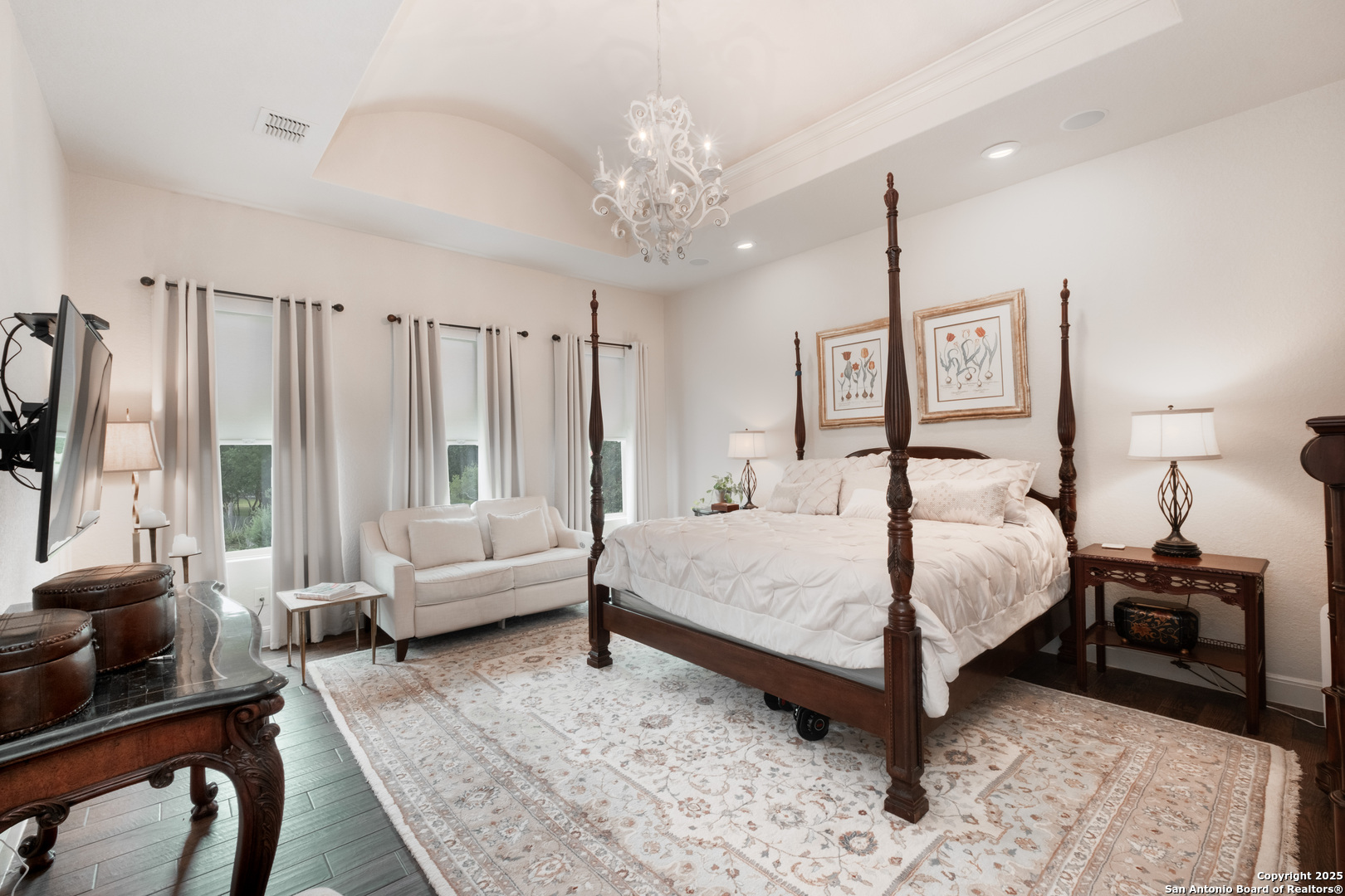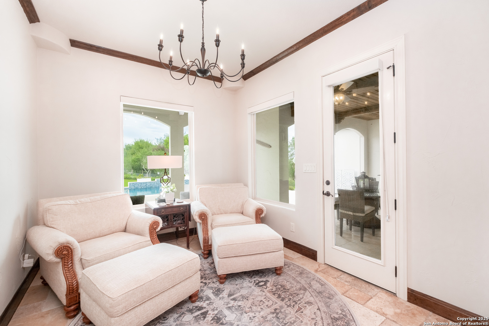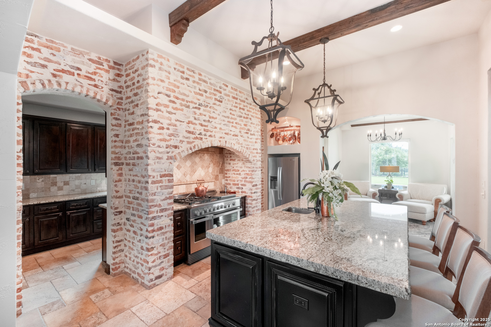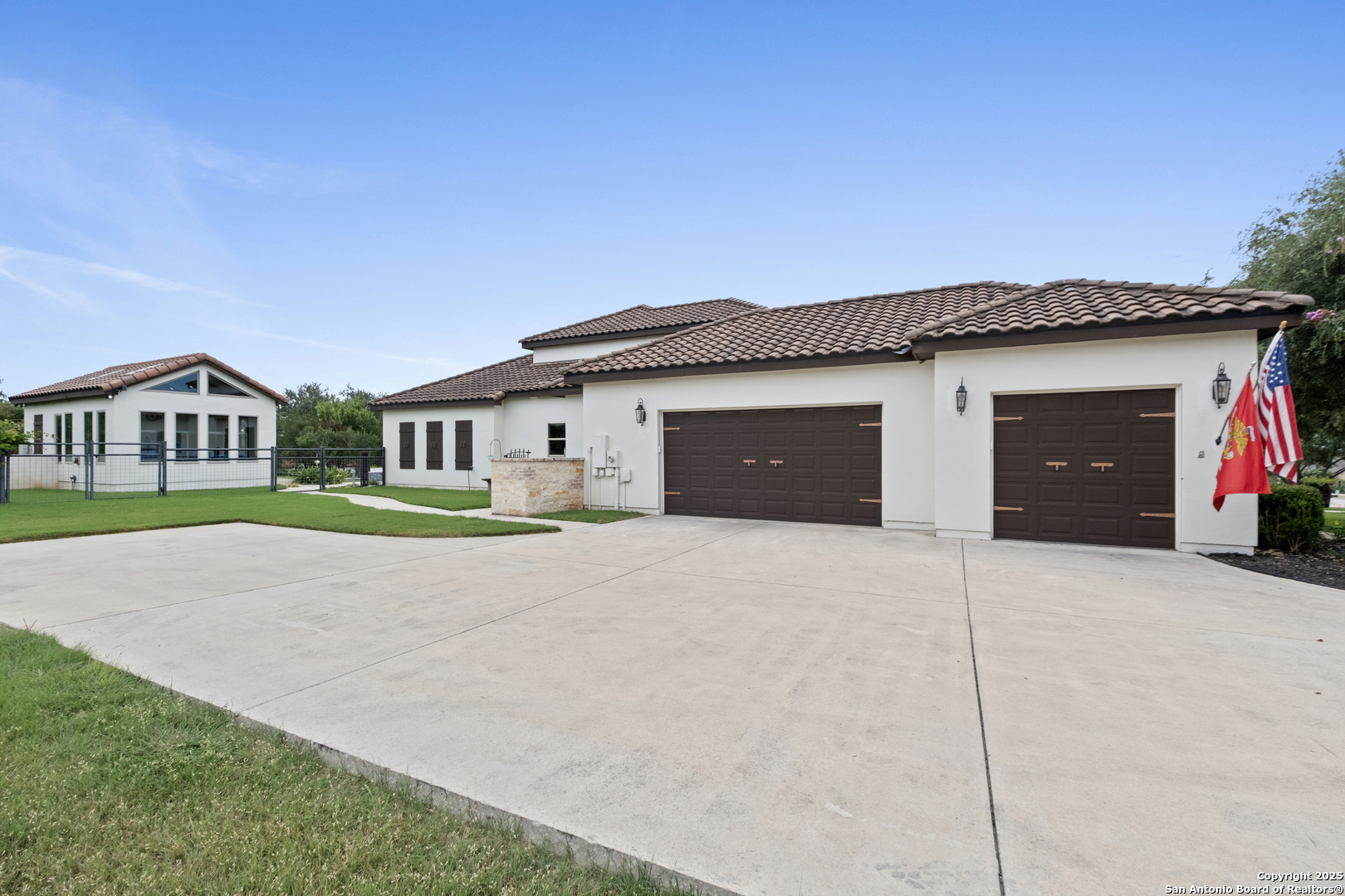 Old World Architecture masterfully blends European Elegance with Modern Luxury! Located in Prestigious Vintage Oaks Nestled on a 1-acre lot, this 5-bedroom, 4.5-bath will not disappoint! Enter through the wrought iron gate into gorgeous private courtyard adorned with arches, wood burning fireplace. Attached casita for multi-generational family or quiet getaway for guests. Enter into main home through the double wrought iron doors passing down foyer with barrel roll ceiling into the sprawling living room with open and expansive feel. Fireplace stands floor to ceiling. The impressive European-style gourmet kitchen, adorned with knotty alder cabinets and commercial grade appliances, is complemented by a separate chef's prep kitchen and two inviting eating areas, perfect for grand entertaining. Offset in the formal dining you can house your favorite wines or China in separate bar room. The private owner's retreat is a sanctuary, featuring a spacious bedroom with a cozy seating area, a lavish bathroom with a jetted tub, large walk-in shower, dual vanities, a makeup vanity, and two generous closets. The study is nestled in back of home for quiet concentration. The other 3 bedrooms are situated down private hallway with possibility of a flex space. Unwind in the luxurious heated saltwater pool and hot tub, or cultivate your garden in the exquisite greenhouse, equipped with electricity, water, and heat with many other options to convert to your own liking. Dedicated dog run or garden area is fenced separately. Custom chandeliers, blinds, and exposed wood ceilings and beams accent the home's sophisticated charm. This Vintage Oaks masterpiece, bathed in natural light, is a rare gem of unparalleled style and comfort! Resort style amenities to add. Clubhouse, 3 pools, fitness center, volleyball court, pickleball courts, basketball court and walking trails. Seller motivated.