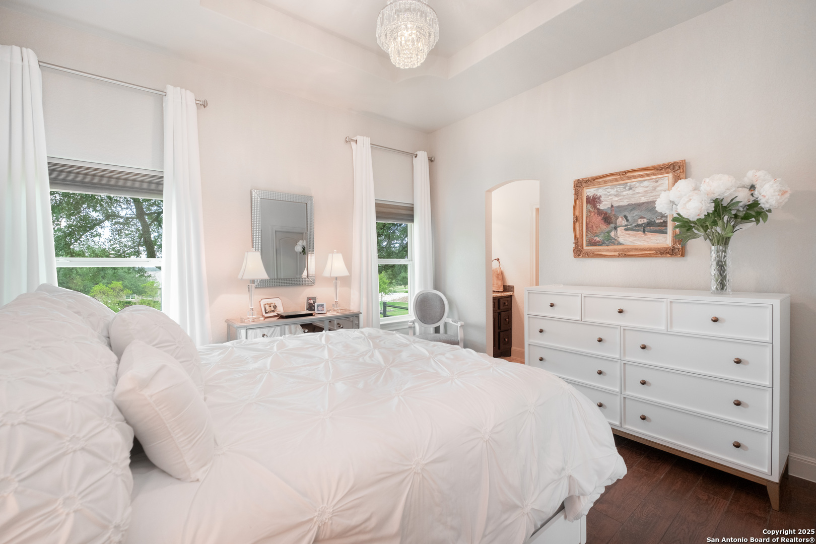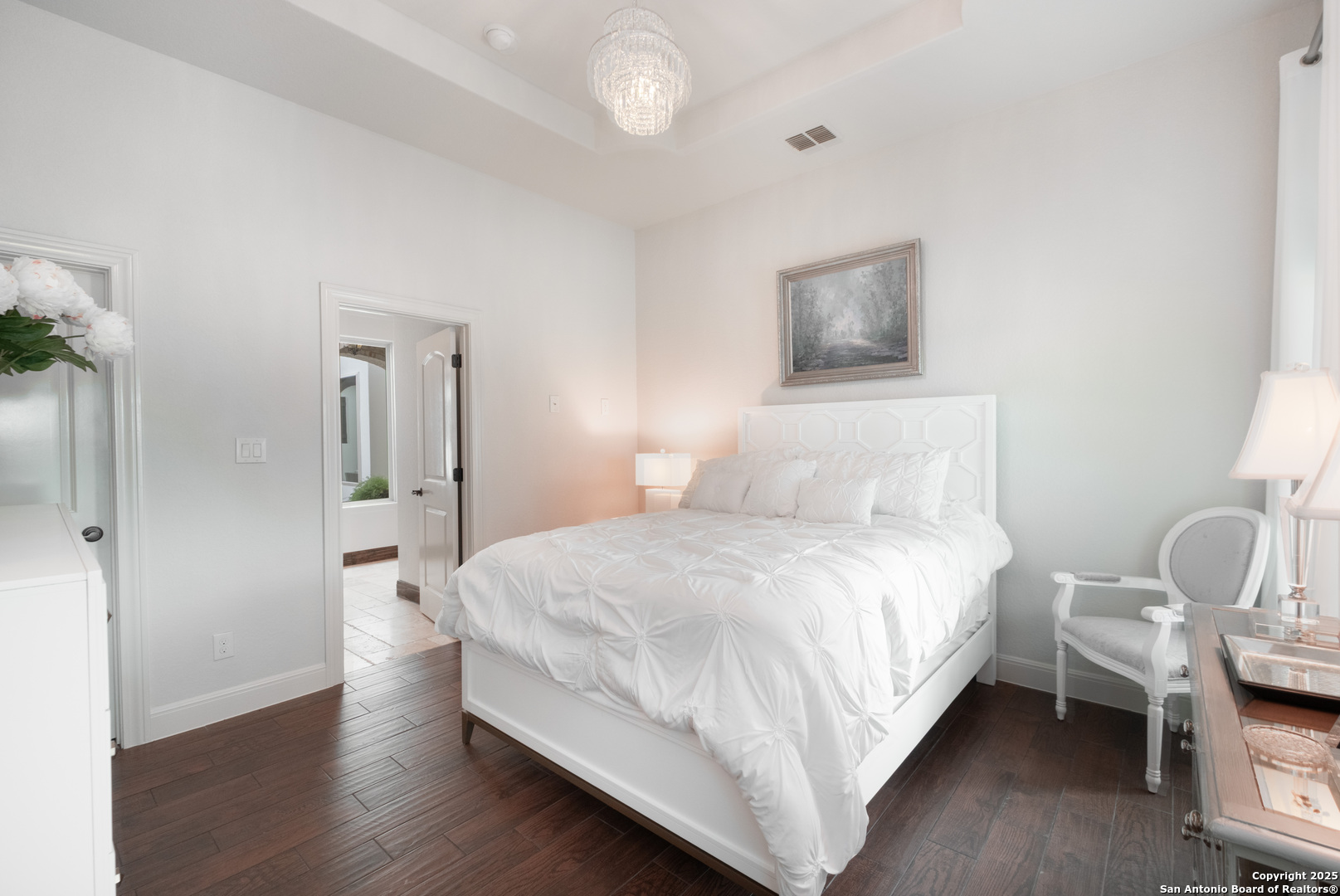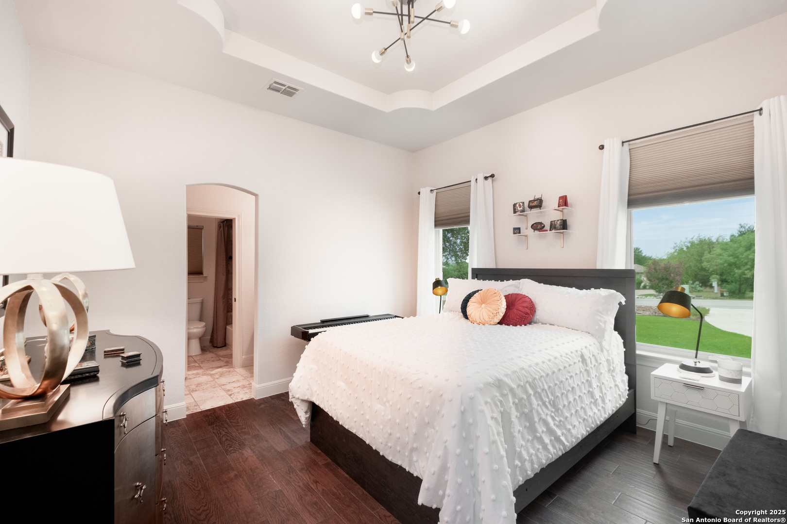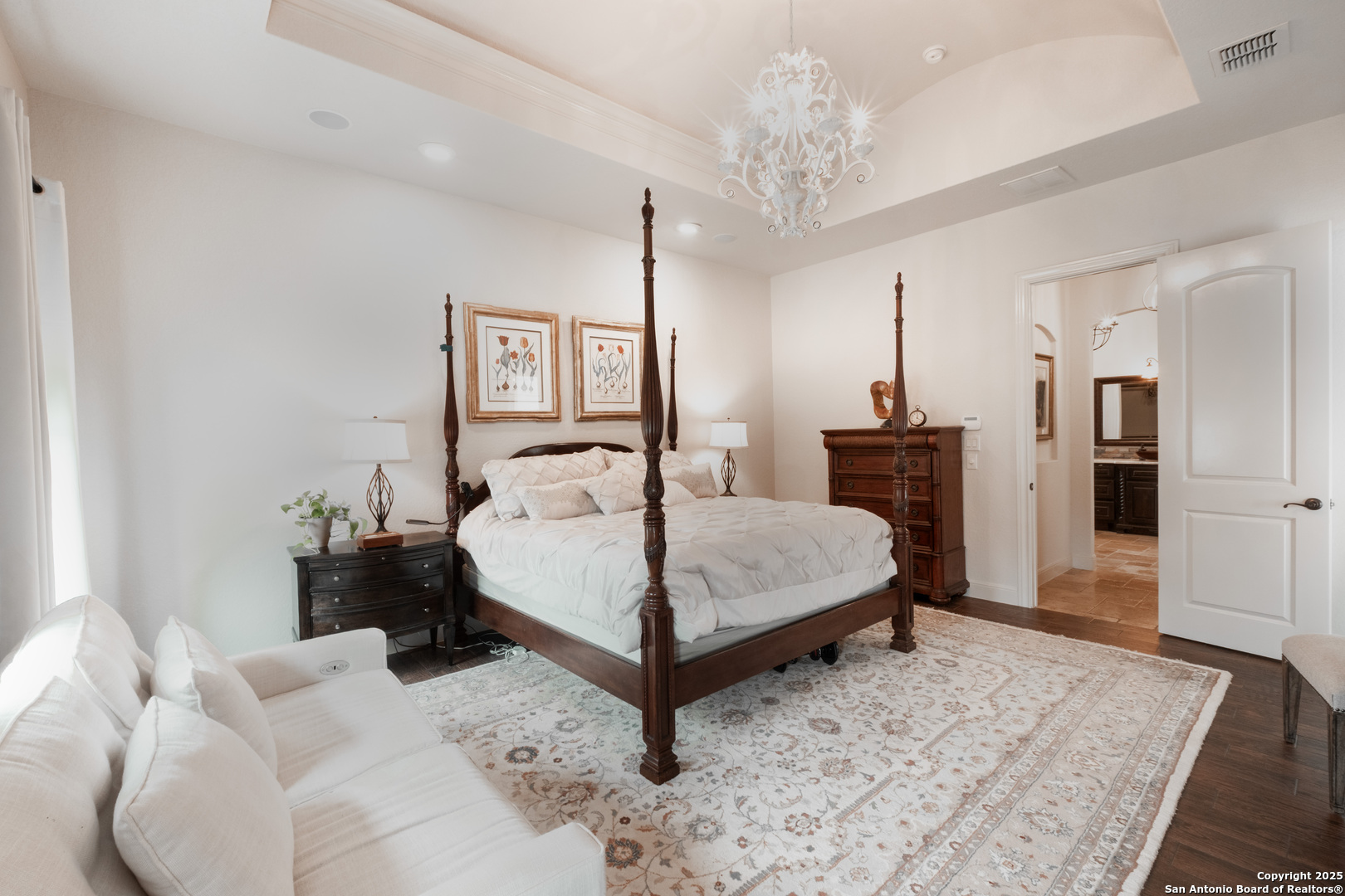 Old World Architecture masterfully blends European Elegance with Modern Luxury! Located in Prestigious Vintage Oaks Nestled on a 1-acre lot, this 5-bedroom, 4.5-bath will not disappoint! Enter through the wrought iron gate into gorgeous private courtyard adorned with arches, wood burning fireplace. Attached casita for multi-generational family or quiet getaway for guests. Enter into main home through the double wrought iron doors passing down foyer with barrel roll ceiling into the sprawling living room with open and expansive feel. Fireplace stands floor to ceiling. The impressive European-style gourmet kitchen, adorned with knotty alder cabinets and commercial grade appliances, is complemented by a separate chef's prep kitchen and two inviting eating areas, perfect for grand entertaining. Offset in the formal dining you can house your favorite wines or China in separate bar room. The private owner's retreat is a sanctuary, featuring a spacious bedroom with a cozy seating area, a lavish bathroom with a jetted tub, large walk-in shower, dual vanities, a makeup vanity, and two generous closets. The study is nestled in back of home for quiet concentration. The other 3 bedrooms are situated down private hallway with possibility of a flex space. Unwind in the luxurious heated saltwater pool and hot tub, or cultivate your garden in the exquisite greenhouse, equipped with electricity, water, and heat with many other options to convert to your own liking. Dedicated dog run or garden area is fenced separately. Custom chandeliers, blinds, and exposed wood ceilings and beams accent the home's sophisticated charm. This Vintage Oaks masterpiece, bathed in natural light, is a rare gem of unparalleled style and comfort! Resort style amenities to add. Clubhouse, 3 pools, fitness center, volleyball court, pickleball courts, basketball court and walking trails. Seller motivated.