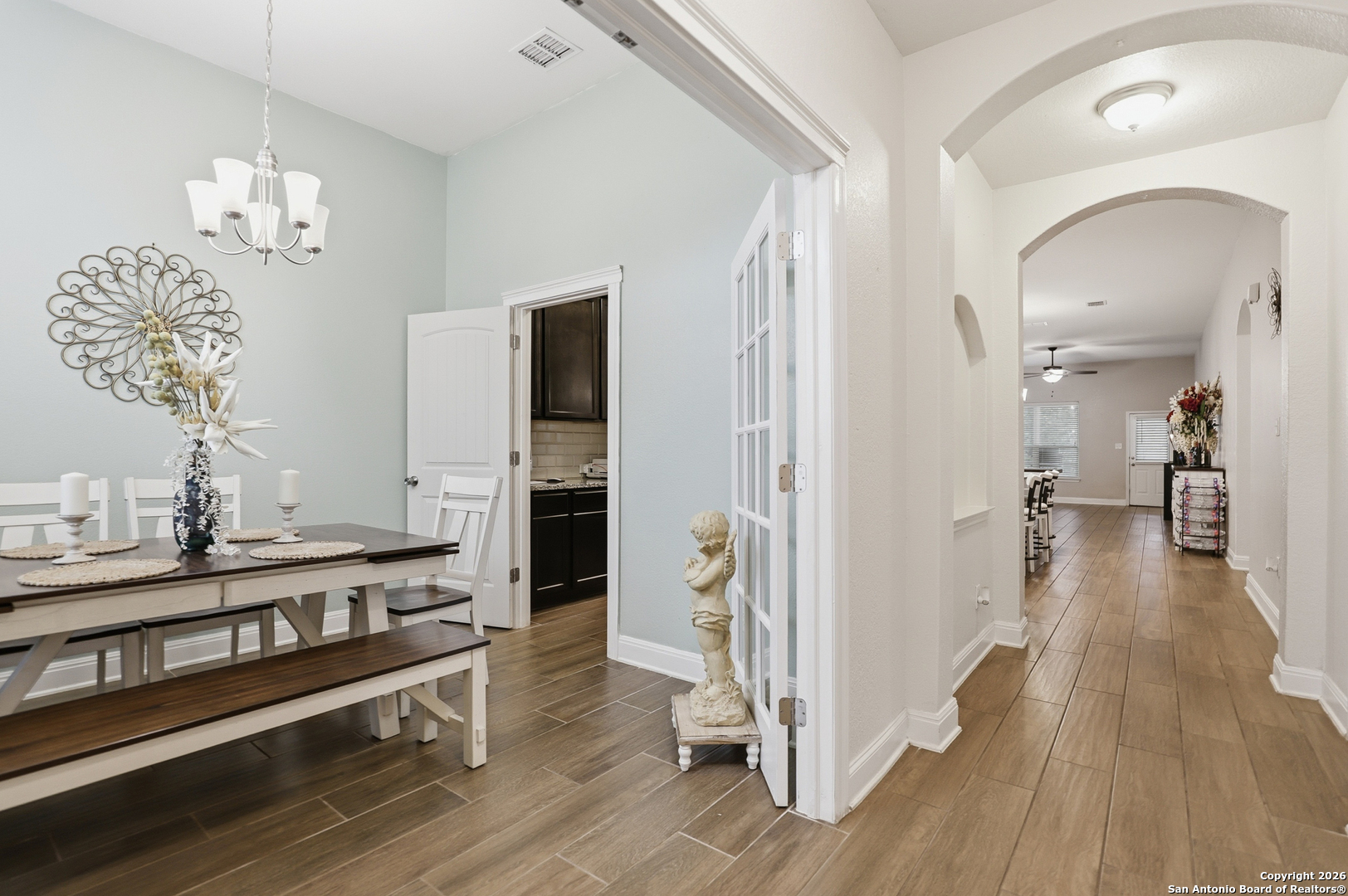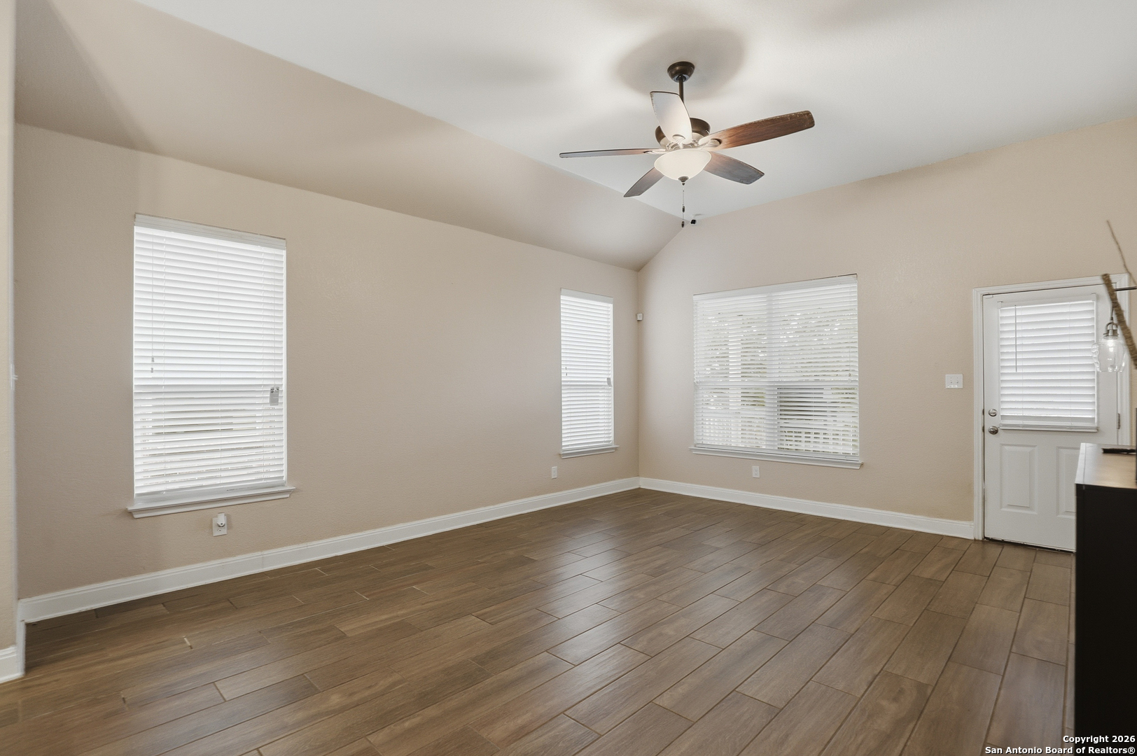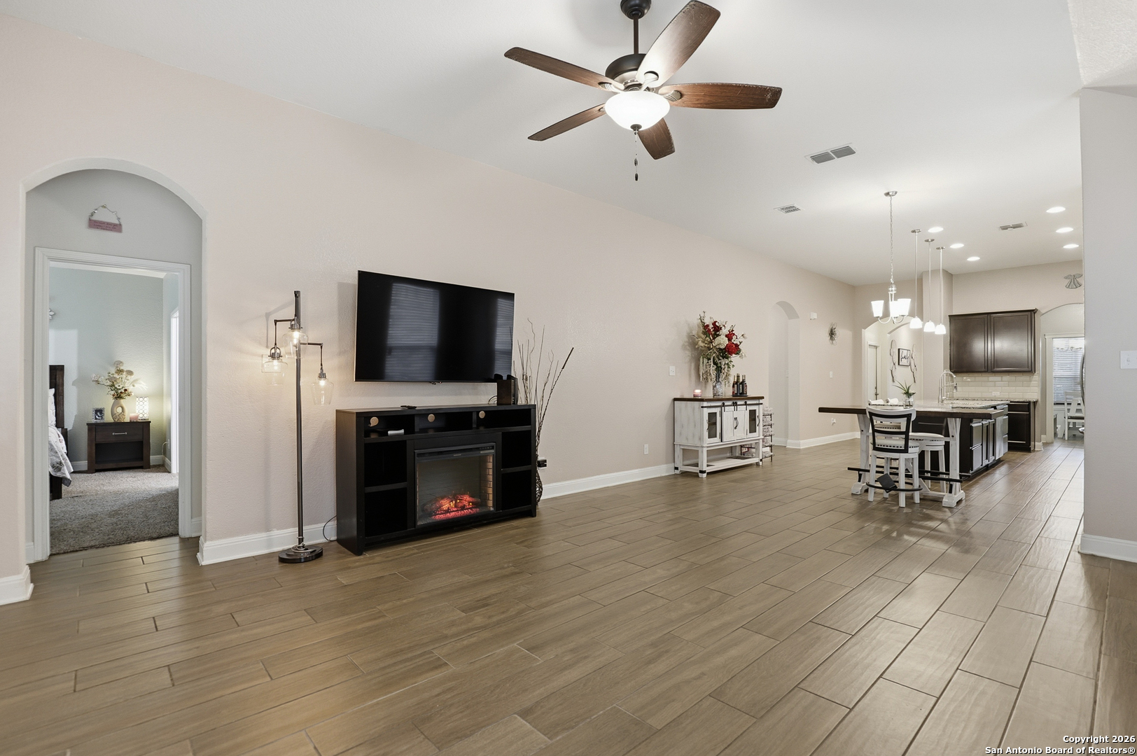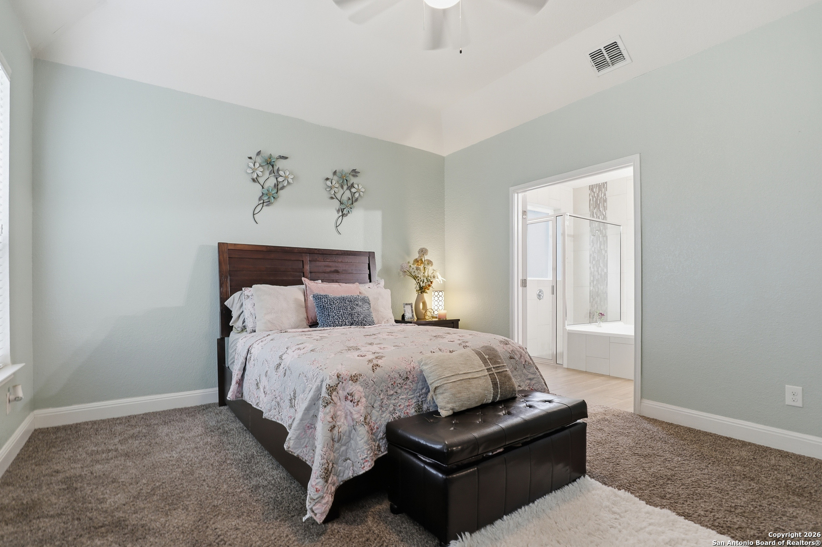 Welcome to this beautifully designed one-story home in Alamo Ranch featuring 3 bedrooms, 2 full baths, and 1,942 sq ft of smart, open living space! From the moment you enter the elongated foyer, you'll feel the warmth and functionality this home offers. The spacious eat-in kitchen is a showstopper with its oversized island, granite countertops, tile backsplash, abundant cabinetry, stainless steel appliances, gas range, and a convenient butler's pantry, perfect for entertaining and everyday living. The primary suite is privately situated at the back of the home and includes a luxurious ensuite with double vanities, a separate garden tub and walk-in shower, and a large walk-in closet that connects directly to the laundry room for added convenience. Enjoy the outdoors on your covered patio, ideal for relaxing or hosting guests. At the front of the home, a flexible space offers the option for a formal dining room or home office to suit your needs. Located in the highly desirable Northside ISD, this home combines style, comfort, and convenience in one of San Antonio's fastest-growing communities. Don't miss this opportunity!