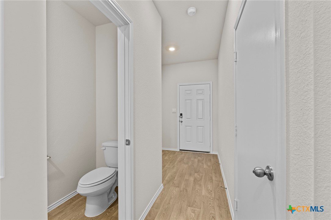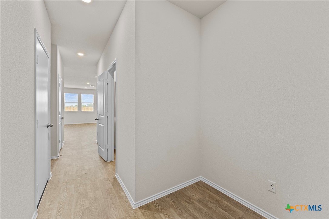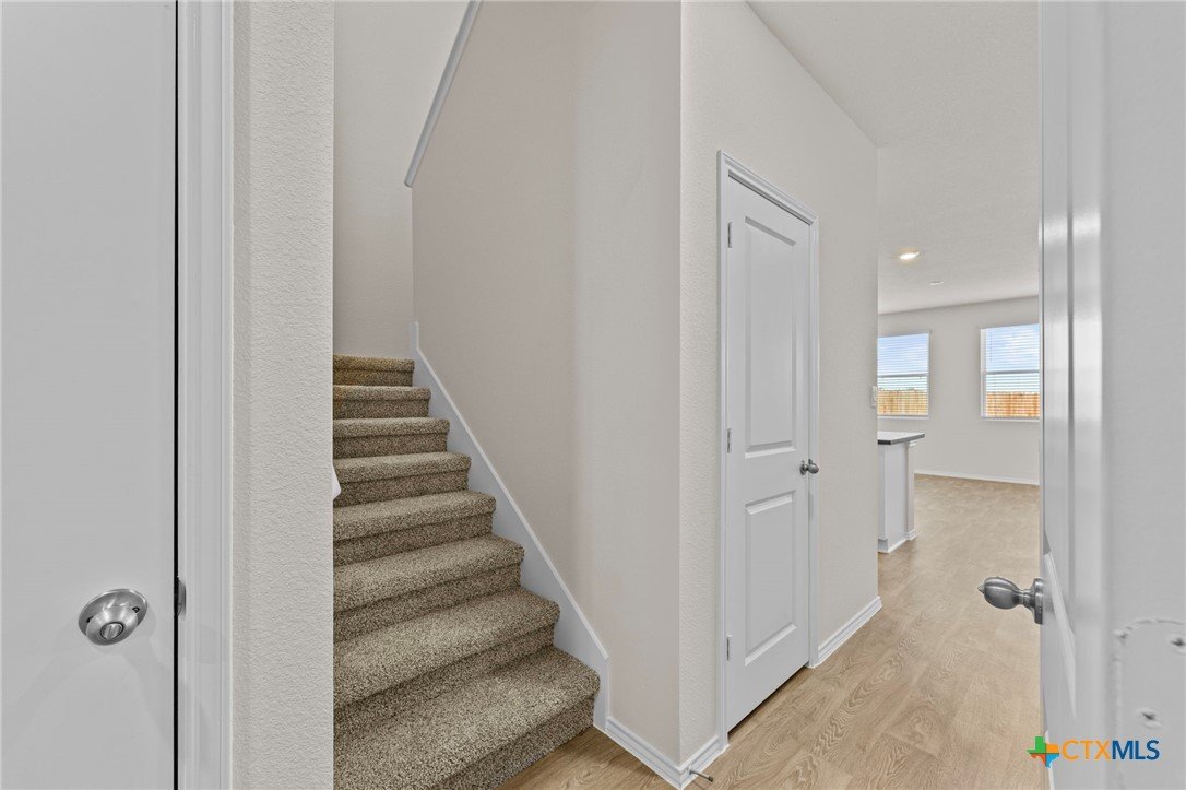 Seller is willing to assist with closing costs or a rate buy-down through preferred lender with an acceptable offer. The Linnet is one of our new two-story floorplans featured in our Bollinger community in Maxwell, Texas. This 1,419 square foot home includes 3 bedrooms, 2.5 bathrooms and a 1 car garage. Our homes in Bollinger feature our modern farmhouse exterior and the Linnet floorplan is available in 2 exterior options. As you step inside, you’ll cross through the foyer, passing the powder room and staircase, and enter the dining room, kitchen, and family room. Built as an open concept, this space is sure to be the center of your home life and family activities. The kitchen features laminate countertops with 50/50 stainless steel drop-in bowl, 4” laminate backsplash, 36” upper cabinets and stainless-steel appliances, including a gas range. Off the kitchen is the pantry and hall closet. Upstairs you’ll find the 3 bedrooms and 2 full bathrooms. At the front of the home is the primary bedroom with an attached private bathroom, making the start of your day a seamless step from sleep to your morning routine. Enjoy the walk-in shower, laminate countertop, and a generously sized walk-in closet. The secondary bedrooms include a closet with shelving and the hall bathroom includes a shower/tub combination. The utility room and hall closet finish out the upstairs space