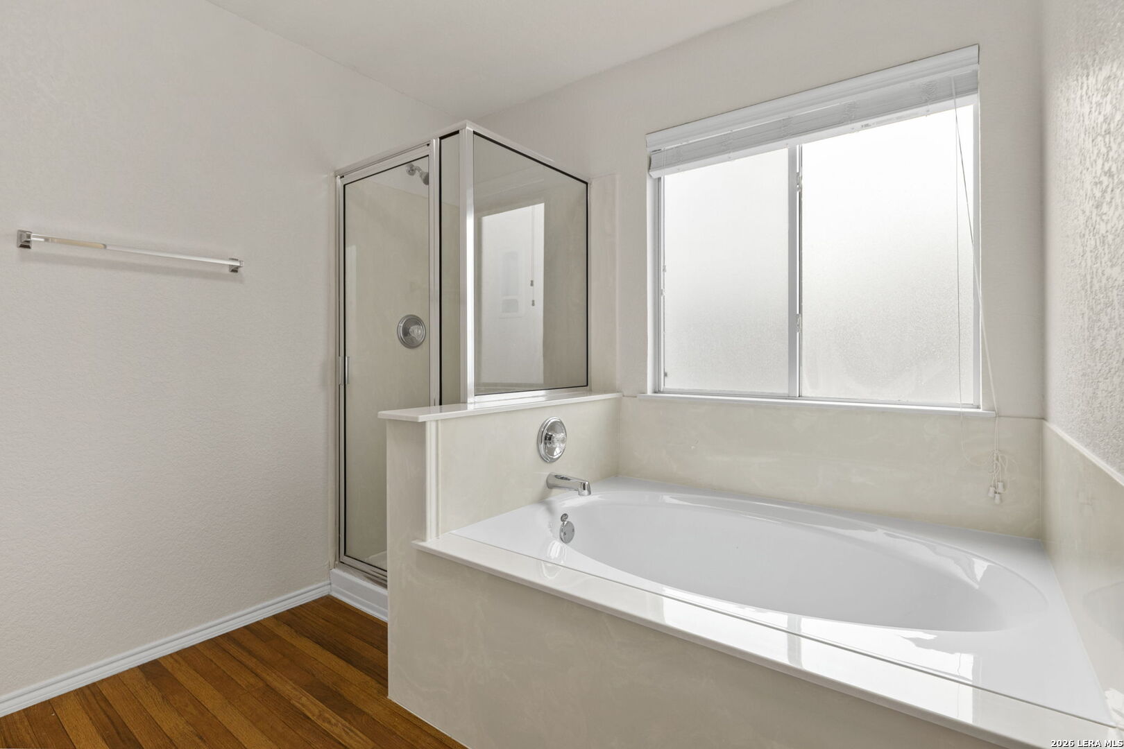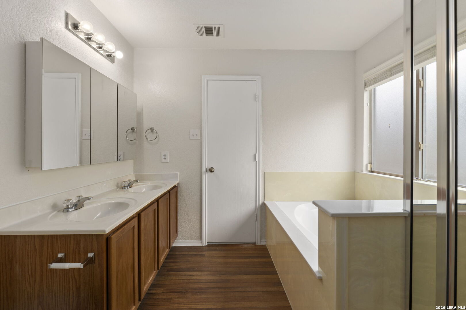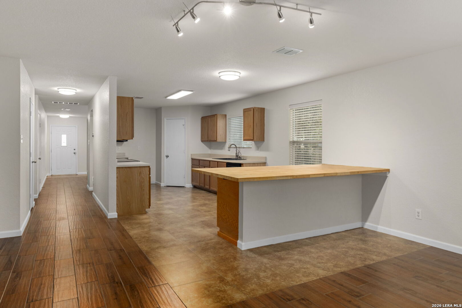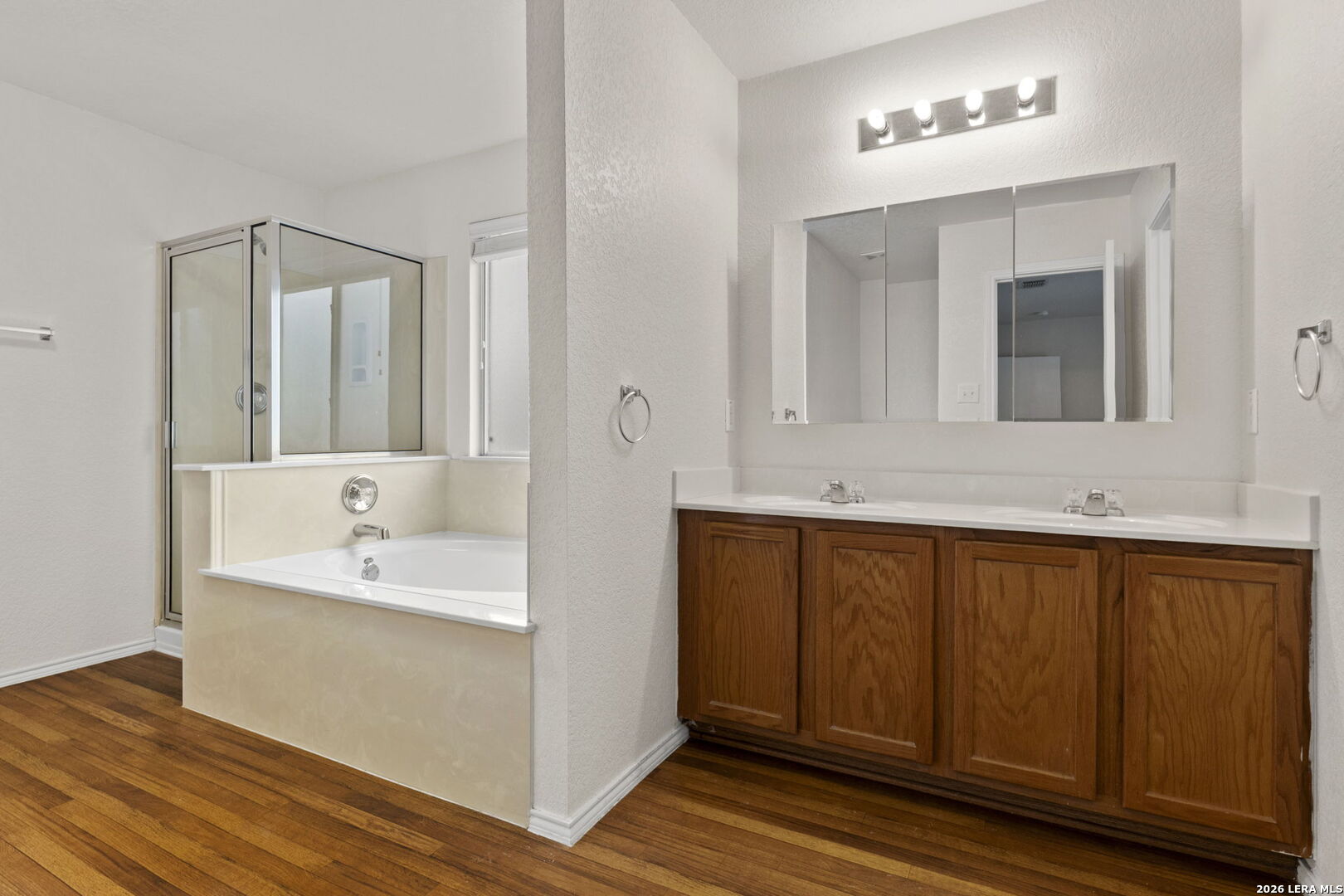 Versatility meets comfort in this spacious two-story home offering 4 bedrooms, 3.5 baths, and an impressive three living areas-perfect for everyday living and entertaining alike. A standout feature is the dual primary bedroom setup, with one conveniently located on the first floor and another upstairs, each complete with its own en suite bath-ideal for multi-generational living or hosting guests in style. The kitchen is designed to be the heart of the home, featuring abundant cabinetry and a large peninsula island topped with butcher block counters, offering both function and charm. Upstairs, you'll find a generously sized gameroom, the second primary suite, two additional bedrooms, and a conveniently located laundry room. Step outside to enjoy a low-maintenance backyard retreat, complete with a covered patio, an expansive stone paver patio with pergola, raised garden beds, and a storage shed-ready for relaxing evenings, weekend gatherings, or growing your own herbs and veggies. All of this, ideally situated with quick and easy access to Loop 1604 and IH-10, placing shopping, dining, and commuting within easy reach.