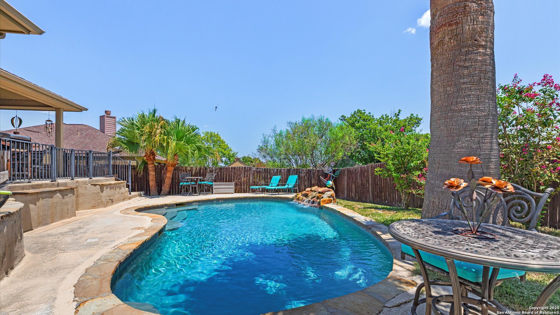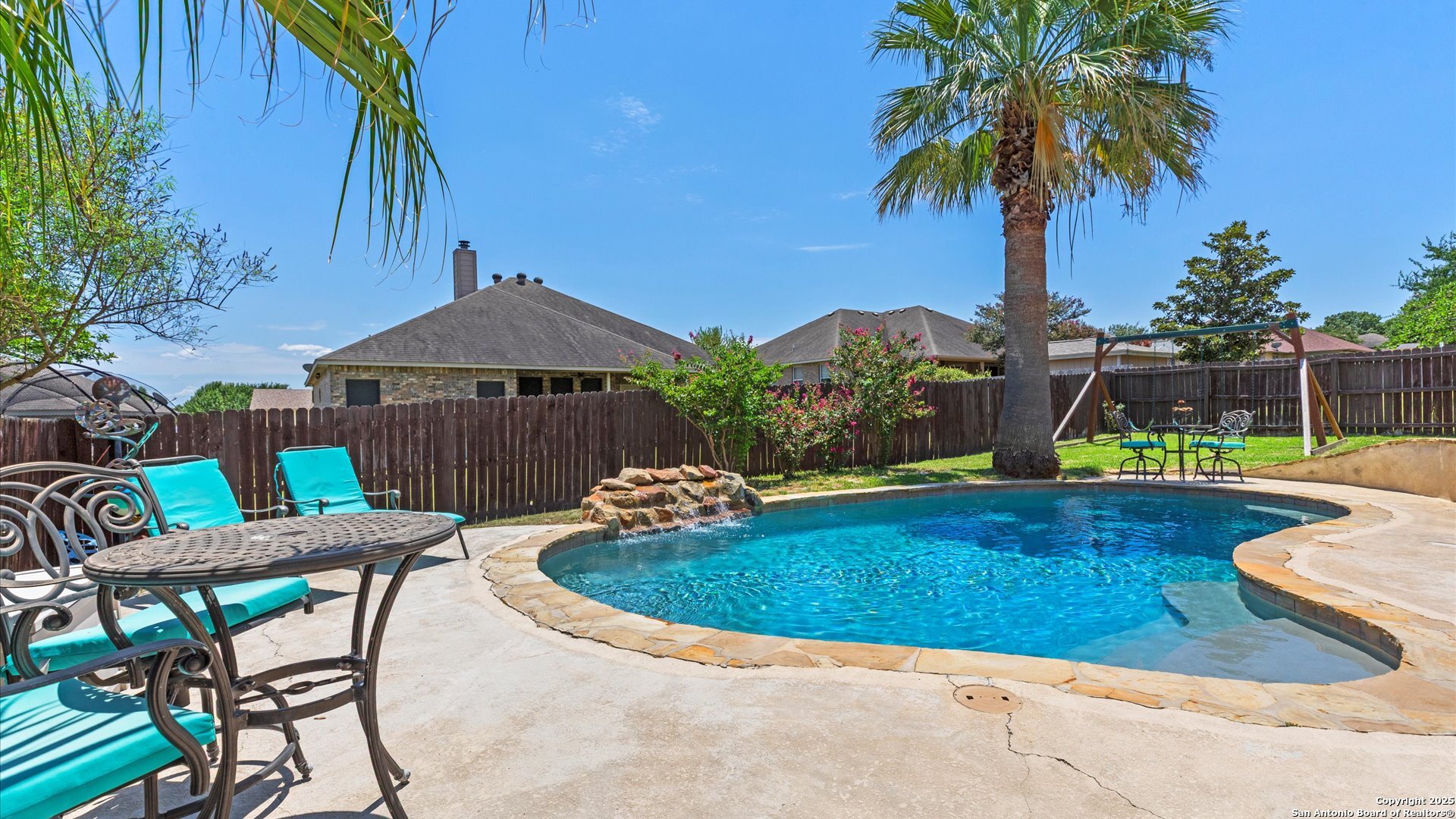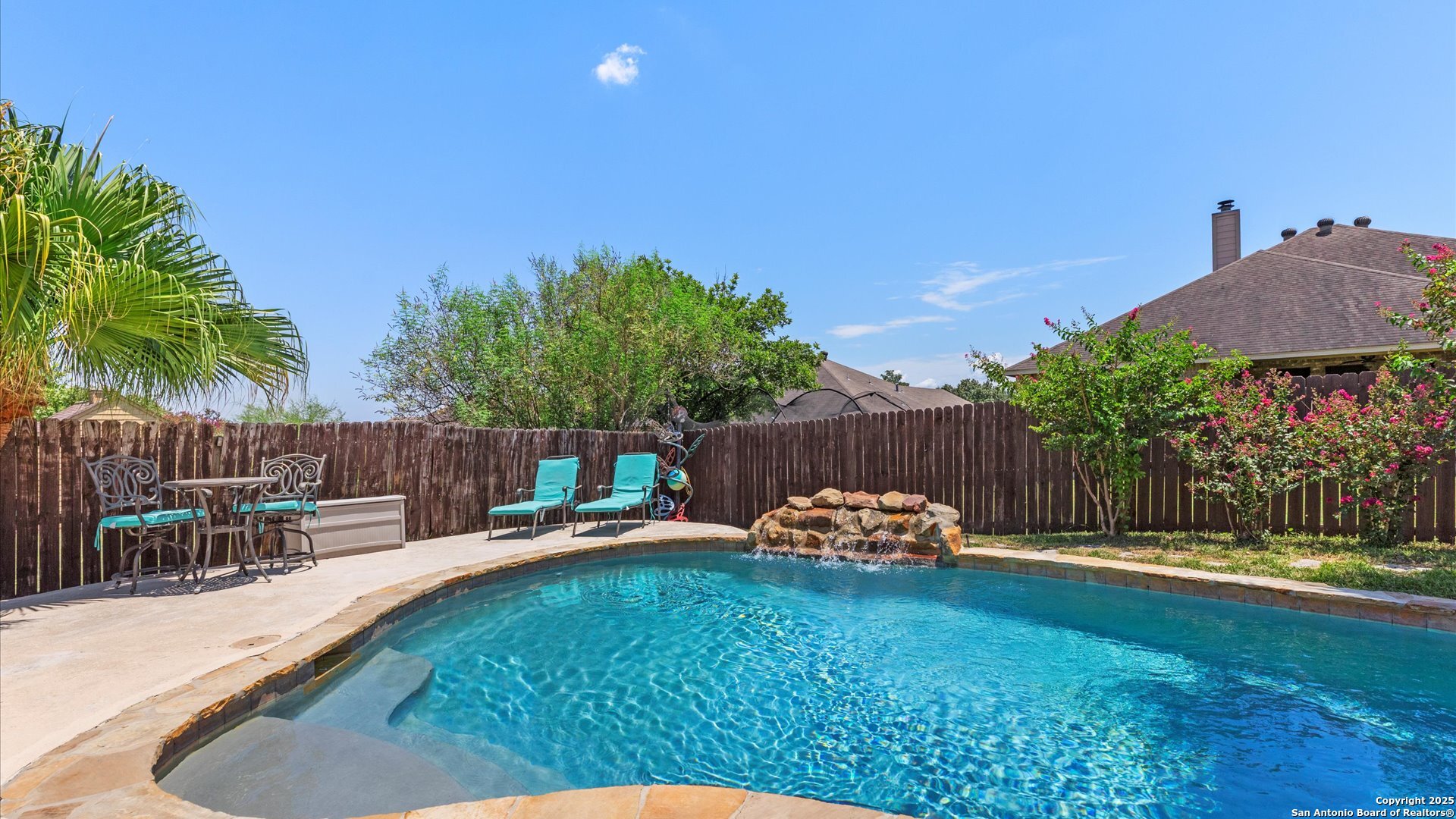 Welcome to this move-in ready gem featuring 3 bedrooms, 2 full baths, and a sparkling backyard pool complete with a rock waterfall! Tucked in a great location with no HOA, this cozy and well-maintained home offers a warm living room with a fireplace, a spacious kitchen that opens to the family room-perfect for entertaining-and a separate dining room for more formal gatherings. The primary suite features a walk-in shower, separate soaking tub, and double vanity, offering a relaxing retreat at the end of the day. Step outside to your own private oasis, with a beautifully landscaped backyard, refreshing pool, and a steel fence with gate enclosing the back porch-ideal for pool safety or keeping pets secure. This home checks all the boxes-location, comfort, and lifestyle. Don't miss it!