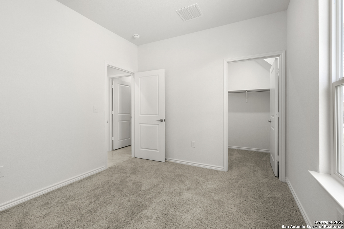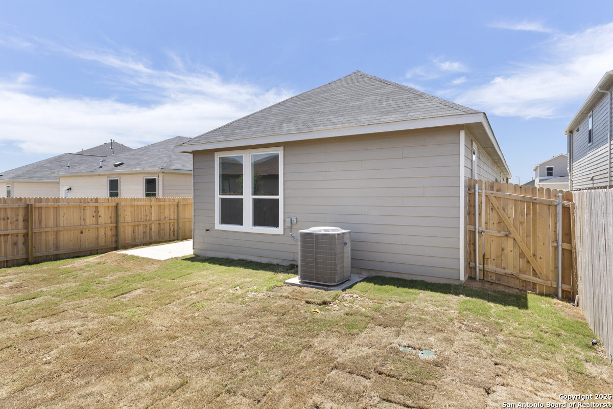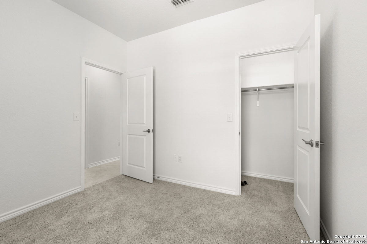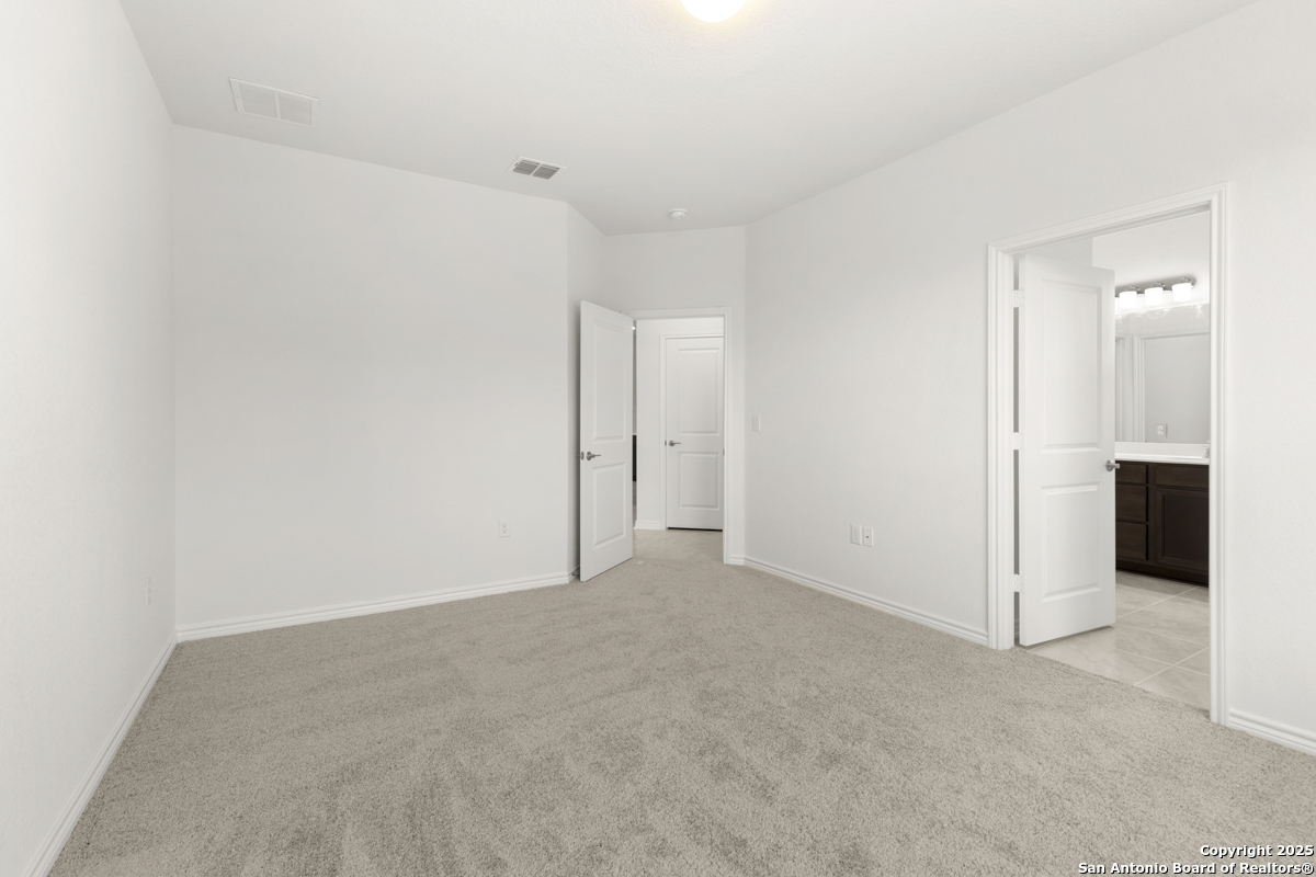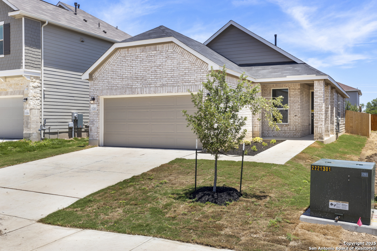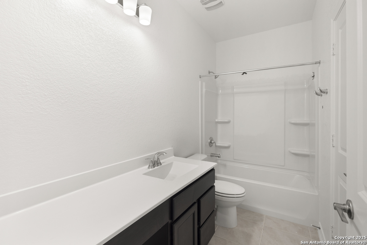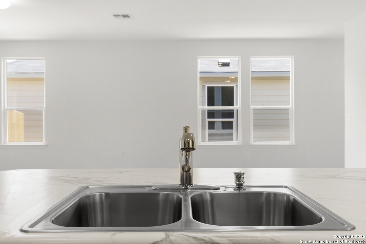 Welcome to this inviting home, where 9-ft. first-floor ceilings create an open and spacious feel throughout. The kitchen is a chef's delight, featuring Woodmont Belmont 42-in. upper cabinets, a stunning Daltile tile backsplash, and an extended breakfast bar-perfect for casual dining or entertaining. Relax in the primary bath, which boasts a luxurious 42-in. garden tub/shower combo. Decorative details such as the elegant Carrara-style entry door and Emser ceramic tile flooring add charm and durability. Additional features include a wireless security system and an exterior rear door with a convenient blind insert for privacy. Outside, the automatic sprinkler system keeps your lawn looking lush year-round.