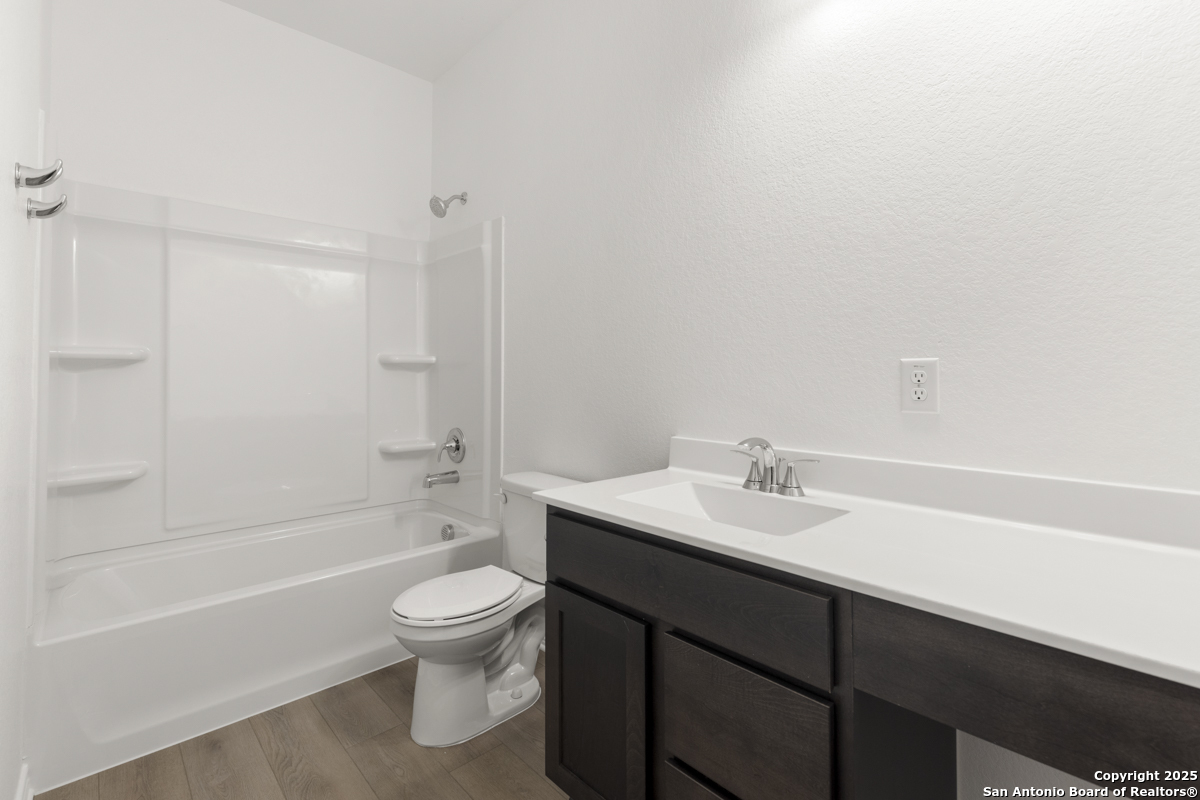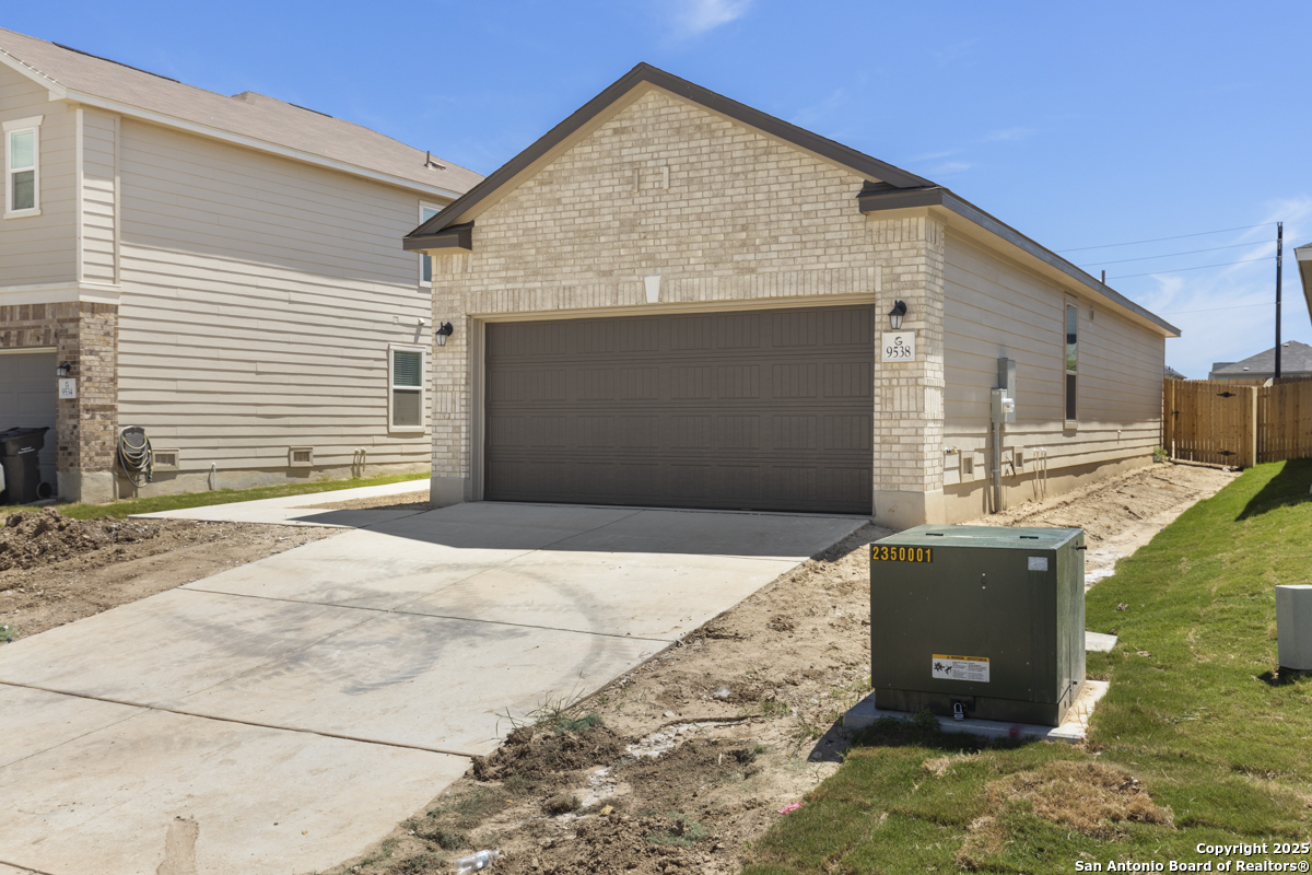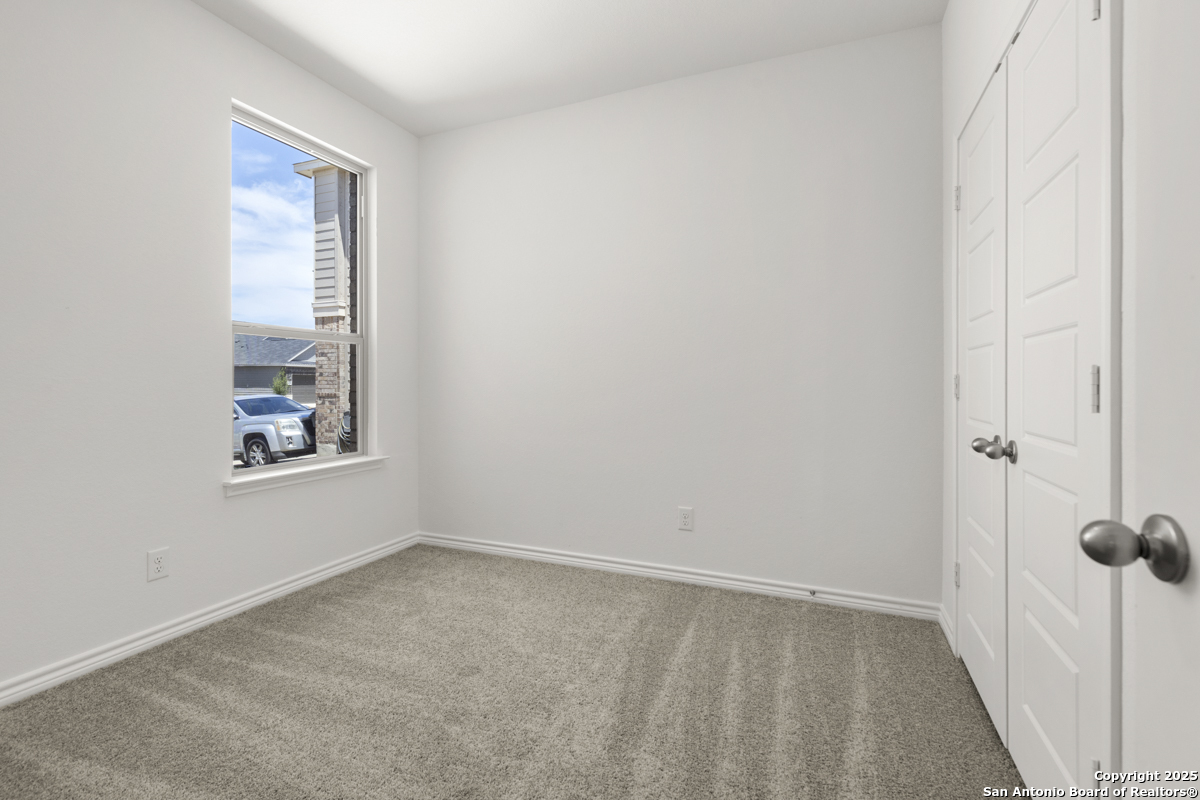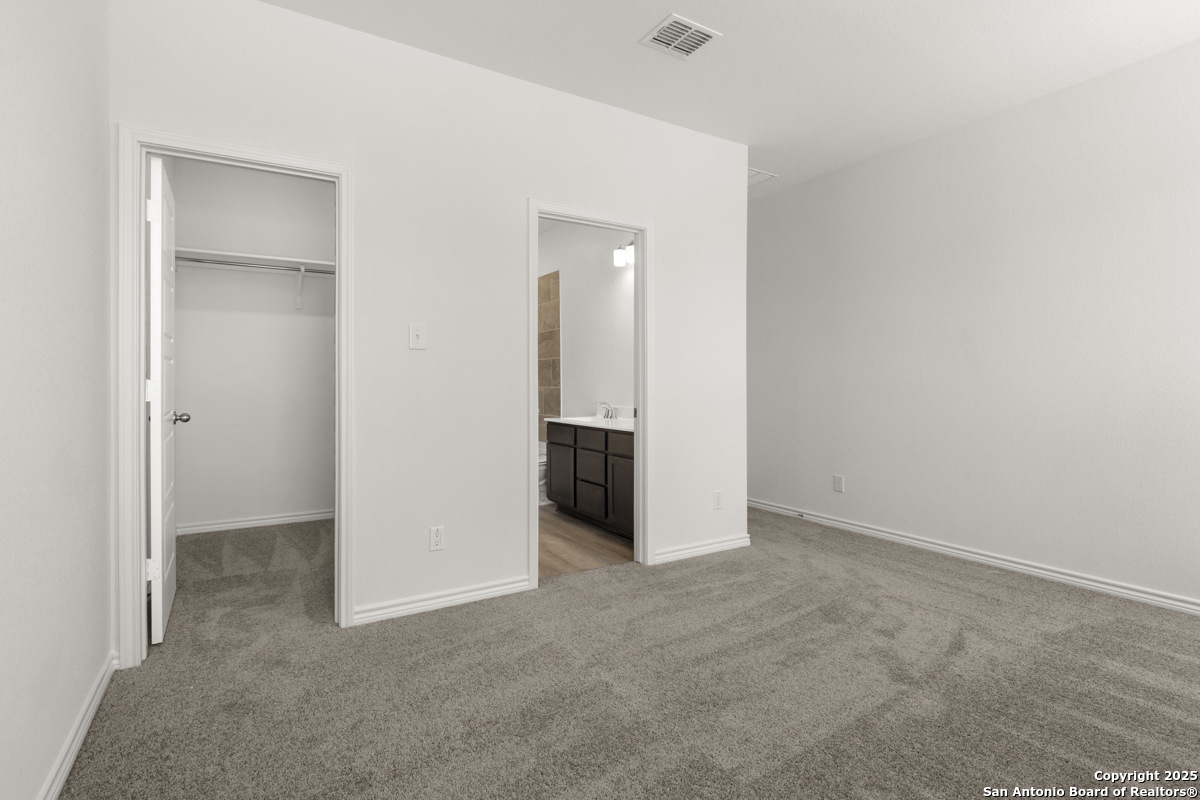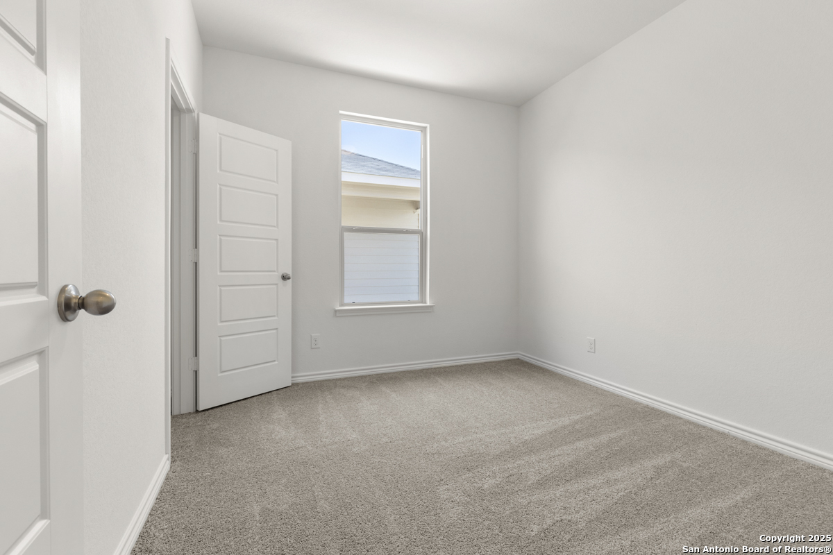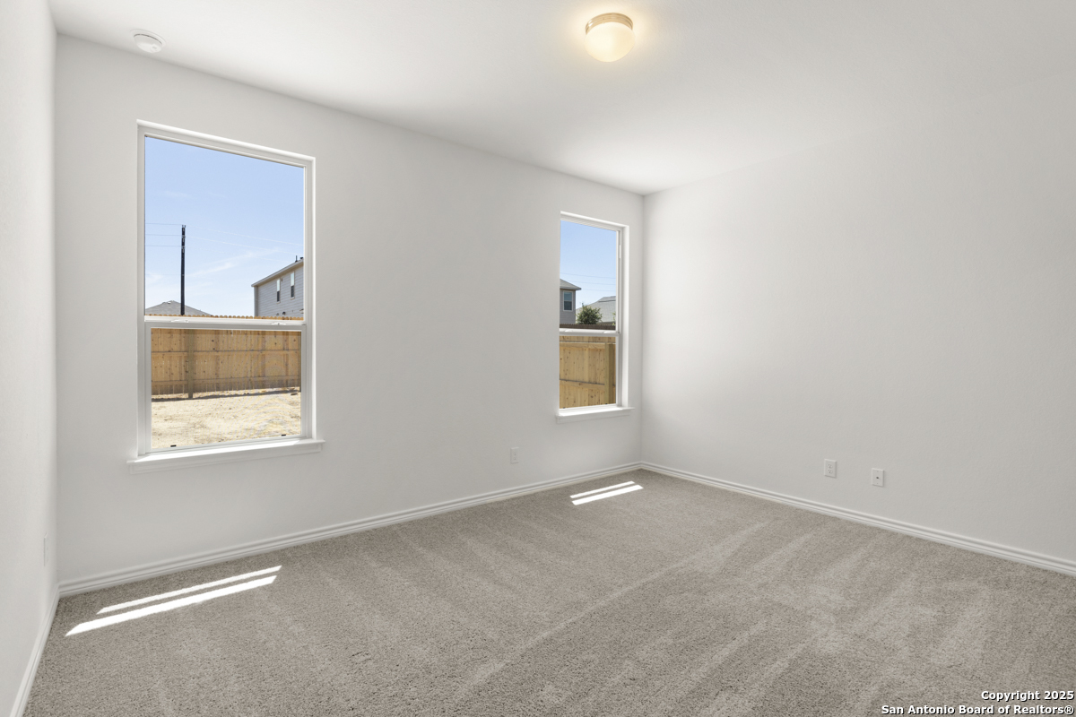 This inviting home boasts 9-ft. first-floor ceilings that enhance its spacious feel. The kitchen is a true centerpiece, featuring Woodmont Dakota Shaker-style 42-in. upper cabinets, stunning Arctic Pearl granite countertops, and an extended breakfast bar perfect for casual dining. The primary bath offers a relaxing 42-in. garden tub/shower combo, ideal for unwinding after a long day. Stylish details like a Carrara-style entry door and elegant Emser ceramic tile flooring add charm throughout. Modern conveniences include a wireless security system for peace of mind. Outdoors, enjoy the ease of an automatic sprinkler system that keeps your yard lush and beautiful year-round.