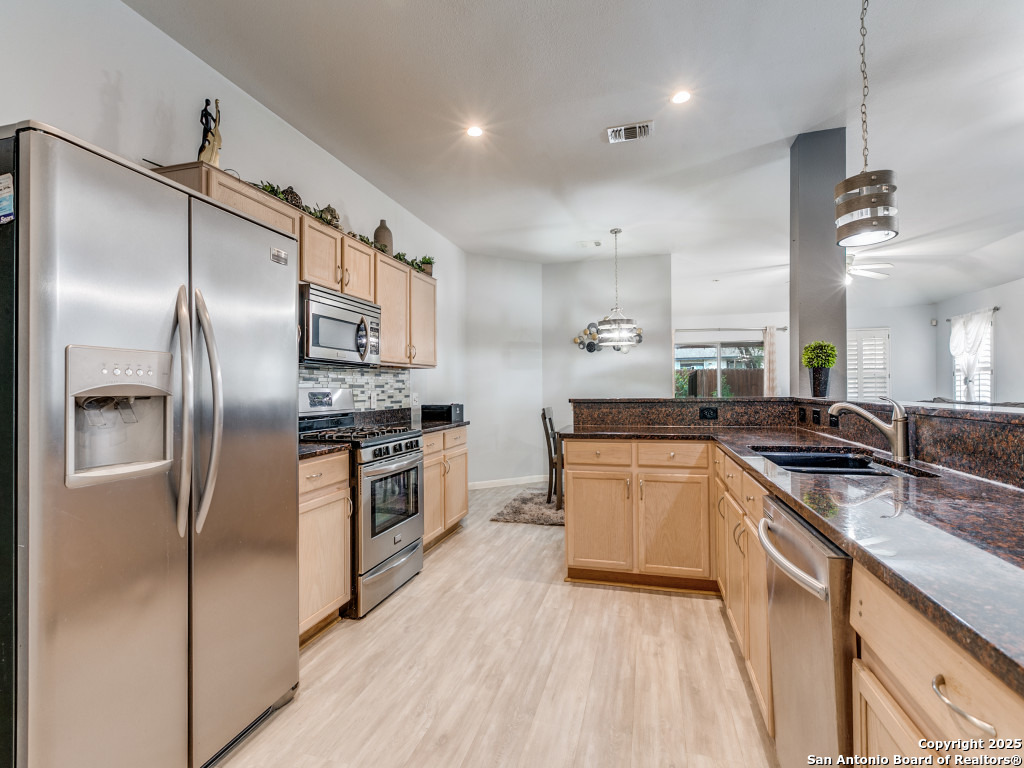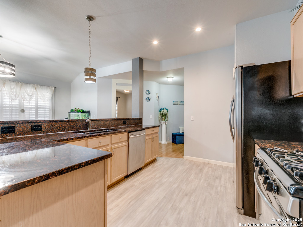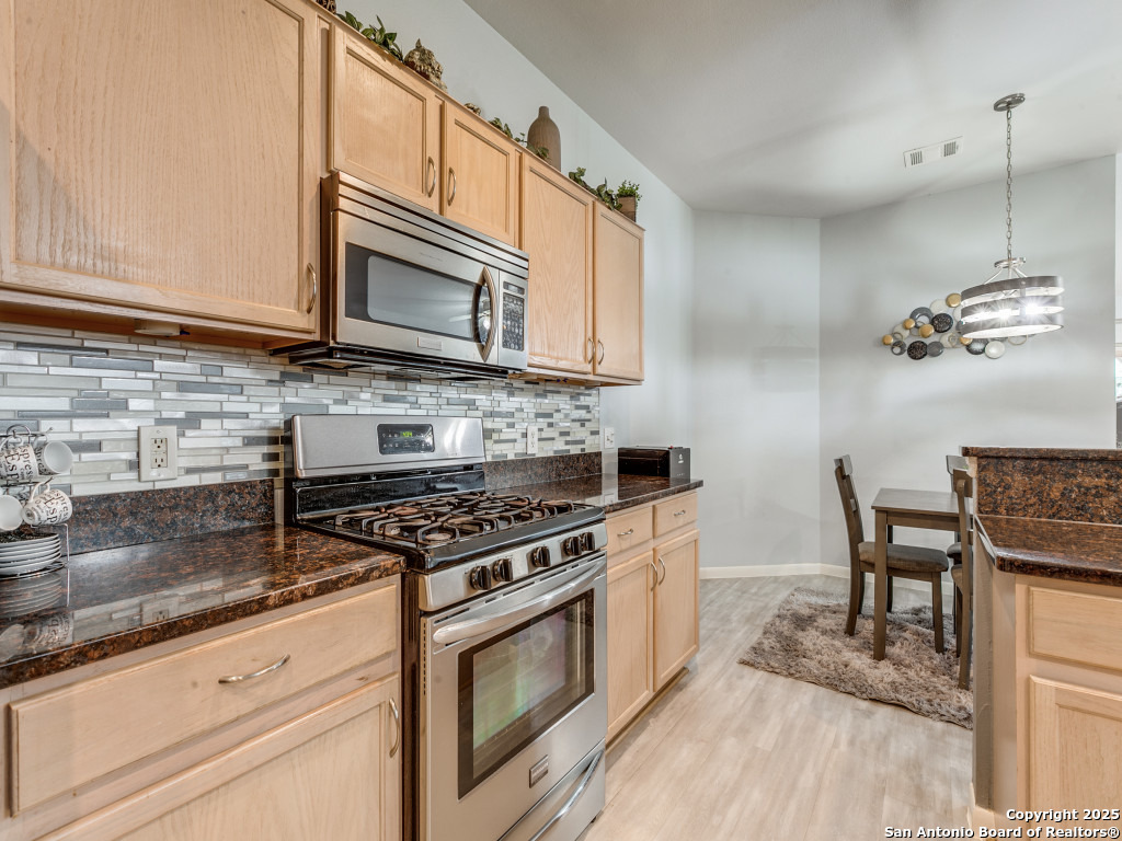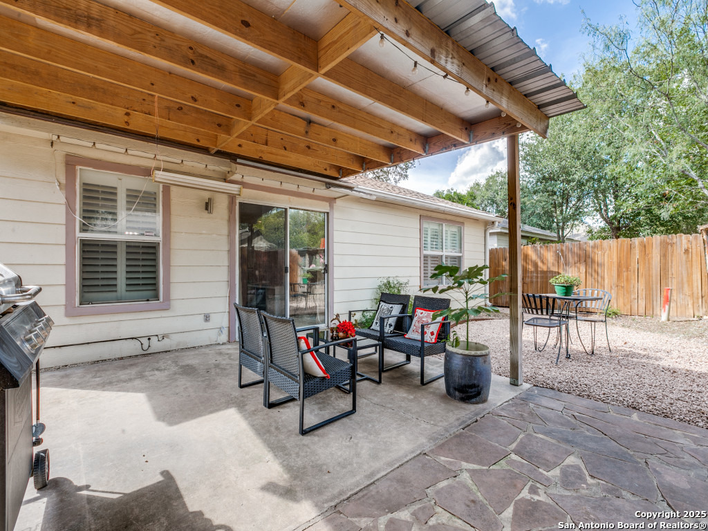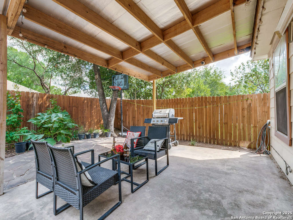 Beautifully Updated & Move-In Ready Home Near UTSA and the Medical Center! Ideally situated just minutes from UTSA, Loop 1604, I-10, and the Medical Center, this spacious 4-bedroom, 2-bath home offers a perfect blend of comfort, style, and convenience. Thoughtfully updated and meticulously maintained, it features an open and versatile floor plan with two dining areas, elegant granite countertops, and a GAS range-ideal for cooking enthusiasts. Enjoy the upgraded bathrooms with modern finishes, and relax outdoors under the covered patio-perfect for morning coffee or evening gatherings. This home is carpet-free throughout, adding both beauty and ease of maintenance. Recent upgrades include a new water heater, gutters, and window blinds for added value and peace of mind. The 2-car garage offers plenty of storage, and best of all, the refrigerator, washer, and dryer convey with the sale. Furniture is negotiable, making your move even easier! Located close to top-rated schools, premier shopping, dining, and entertainment, this home combines a prime location with exceptional value. Don't miss this opportunity-schedule your showing today before it's gone!