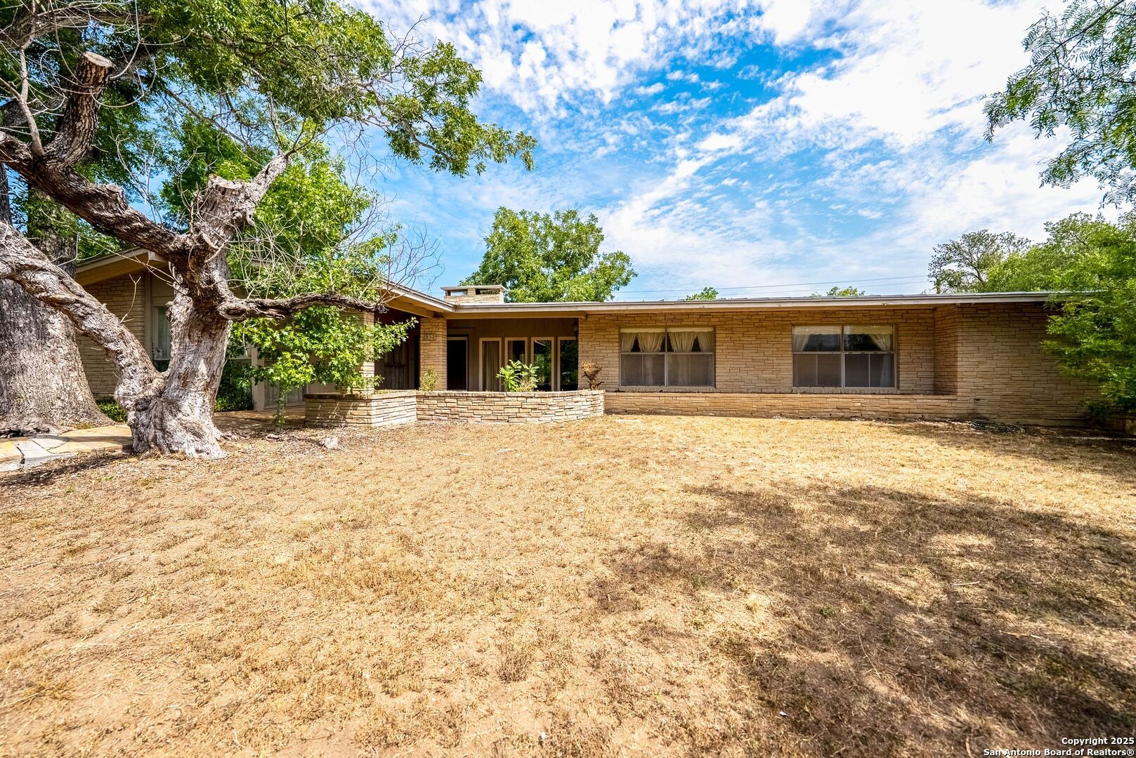 Beautiful mid-century home ready for someone's vision of a remodel. This house is located in Terrell Hills and sits on .89 of an acres, on the top of a hill. Even in the heat of the summer there is a nice breeze while sitting on the front porch. This single story home, roughly 3500 sq. ft. offers very large 4 bedrooms and 2.5 baths, as well as an oversized family room, living room and garage with 2 storage areas attached. The backyard has been crying for a pool for years and there is plenty of space for almost any size pool or just a simple lap pool for exercise. Your imagination will be the driving force when seeing the potential this unique home has to offer.