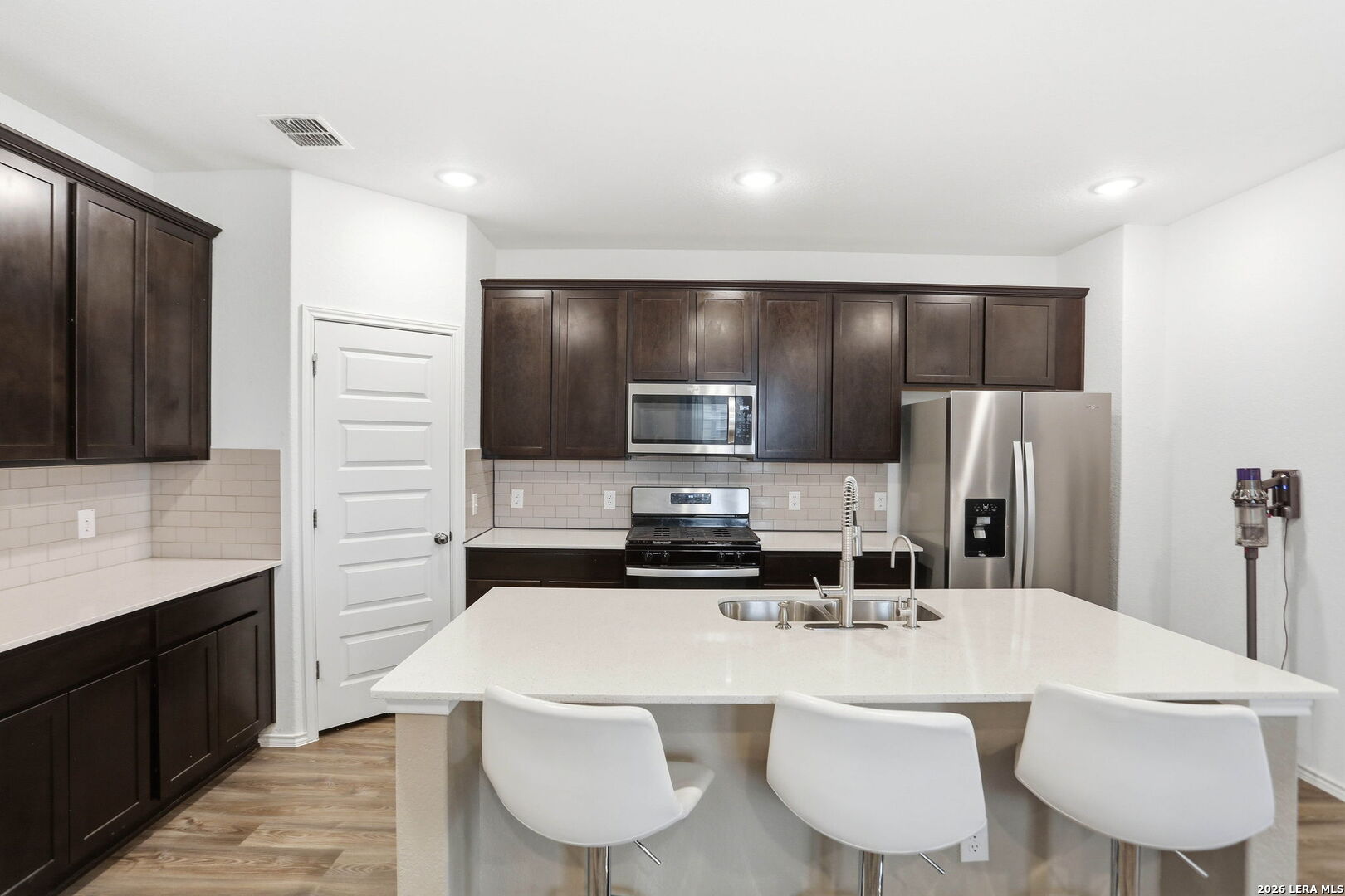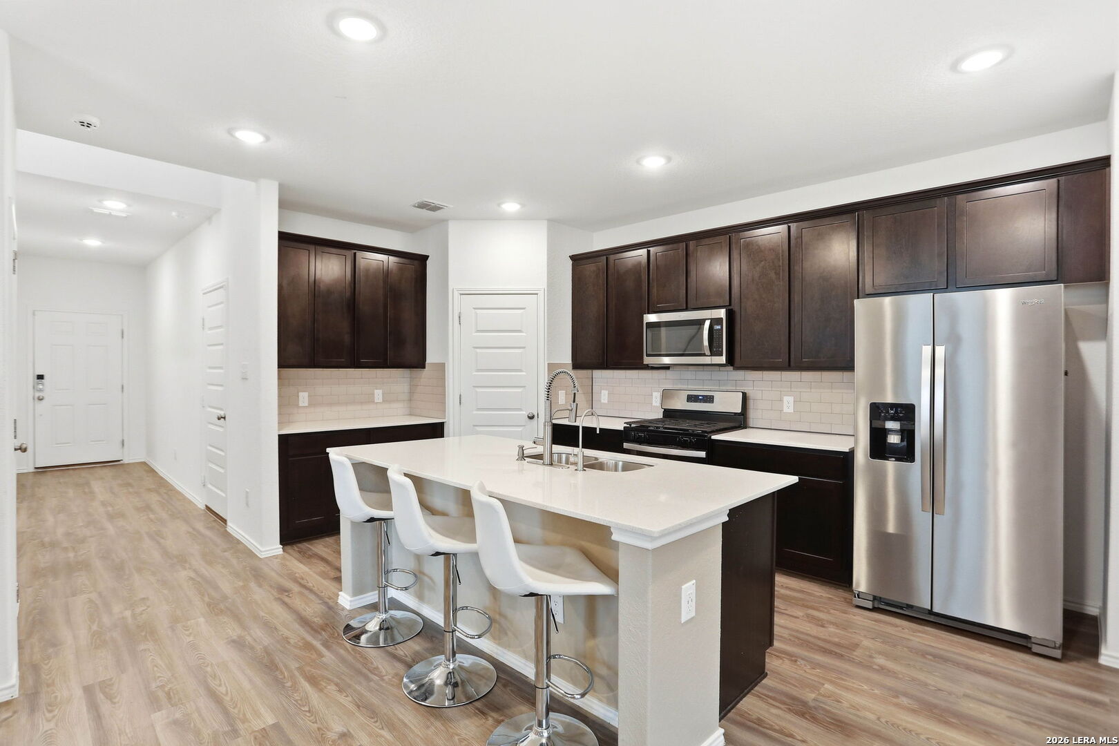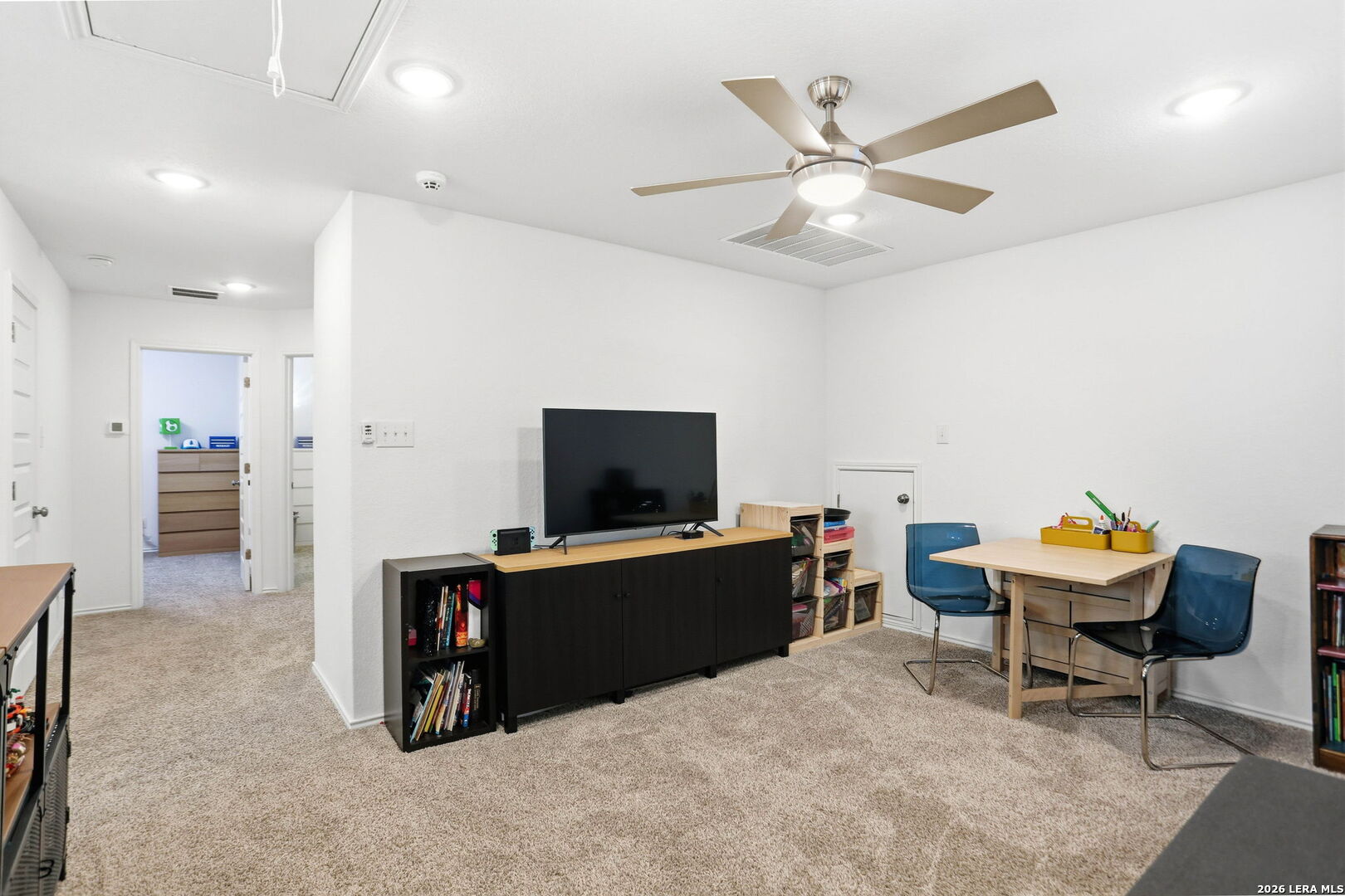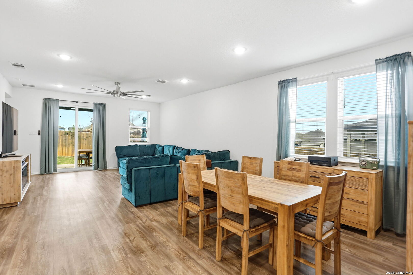 Discover this beautiful 3-bedroom, 2.5-bath home in a convenient location near Randolph AFB, offering the perfect blend of comfort, space, and functionality. Designed with both everyday living and entertaining in mind, this home features a spacious kitchen with a huge island, walk-in pantry, and plenty of room to gather with family and friends. The open layout flows seamlessly into the main living area, making it ideal for hosting. The primary bedroom is conveniently located downstairs, providing privacy and easy access, while upstairs you will find a large loft area that can be used as a second living space, game room, office, or media area. An added feature is the large armoire in the primary bedroom that conveys with the home. Step outside to enjoy the covered patio with extended patio areas, perfect for BBQs, outdoor dining, and relaxing evenings at home. With its versatile floor plan, great entertaining spaces, and close proximity to Randolph AFB, shopping, dining, and major highways, this home is one you will not want to miss.