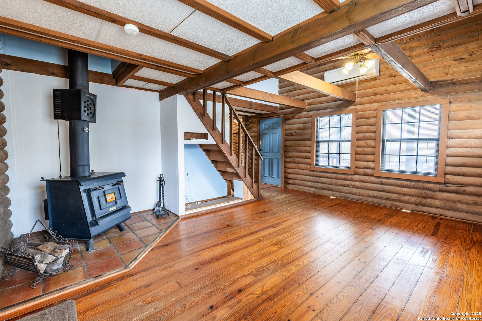 Escape to the peace and charm of country living with this adorable 2-bedroom, 1-bath log home situated on 5.43 beautiful acres in the highly sought-after La Vernia area. This property has seen extensive improvements, including brand-new fencing surrounding the entire property, thoughtful updates throughout the home, and new electrical work, offering both comfort and peace of mind. The cozy log home blends rustic character with modern updates, creating a welcoming space that feels like home the moment you arrive. With plenty of room to roam, garden, or enjoy your favorite outdoor activities, this property is perfect for anyone wanting to embrace a quieter lifestyle without sacrificing convenience. Enjoy the best of both worlds-country living with easy access to town amenities. Whether you're searching for a weekend retreat, a starter homestead, or a serene full-time residence, this La Vernia gem offers endless possibilities.