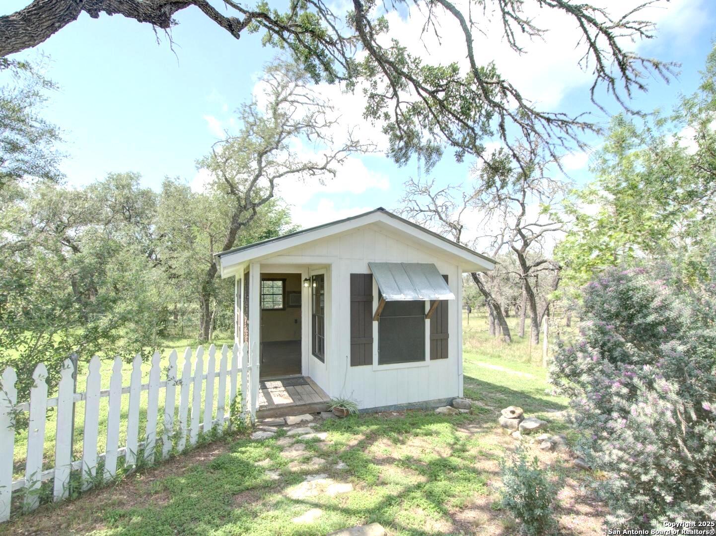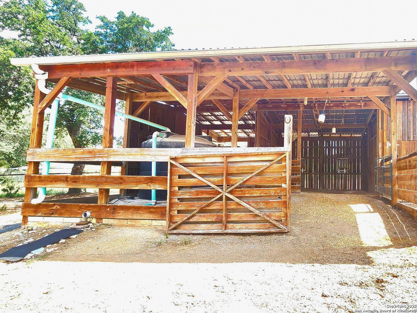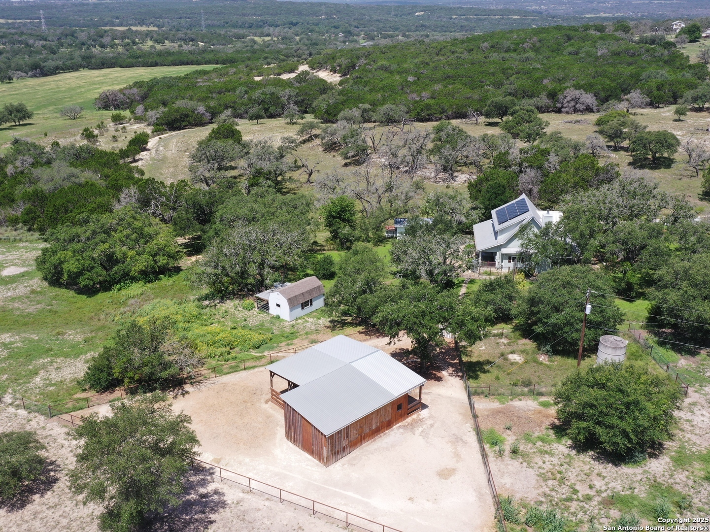 Traditional Hill Country Home on 5.011 Acres with Horse Facilities Charming 3-bedroom, 2-bath home with loft, situated on 5.011 peaceful acres surrounded by beautiful century oaks. Open Floor plan with high ceilings. A brand new kitchen features quartz countertops, new appliances and high ceilings. New paint and wood plank flooring in all rooms. spacious loft overlooking Livingroom offers additional living space or bedroom. Detached office/workroom offers flexible use. Exterior features include front and back covered porches, a 12x20 storage/garden room, and a horse barn with two large stables, tack room, paddock and multiple fenced pastures. Gated entrance provides privacy. Energy-efficient upgrades include thermal pane windows and solar panels. Durable standing seam metal roof and Hardie Plank siding. Great mix of comfort, functionality, and space-ideal for country living just minutes from IH-!0. Located in Welfare, Comfort ISD