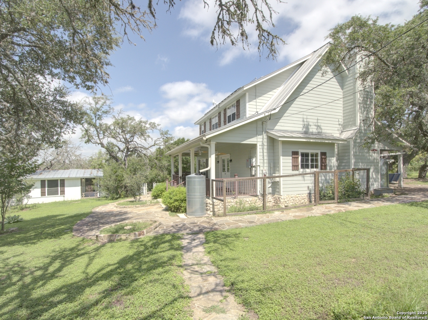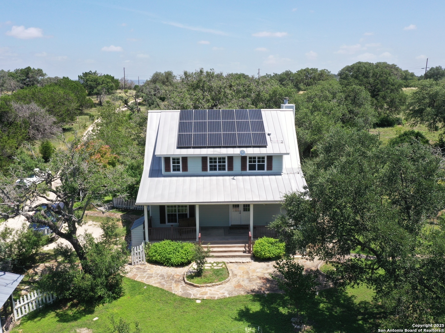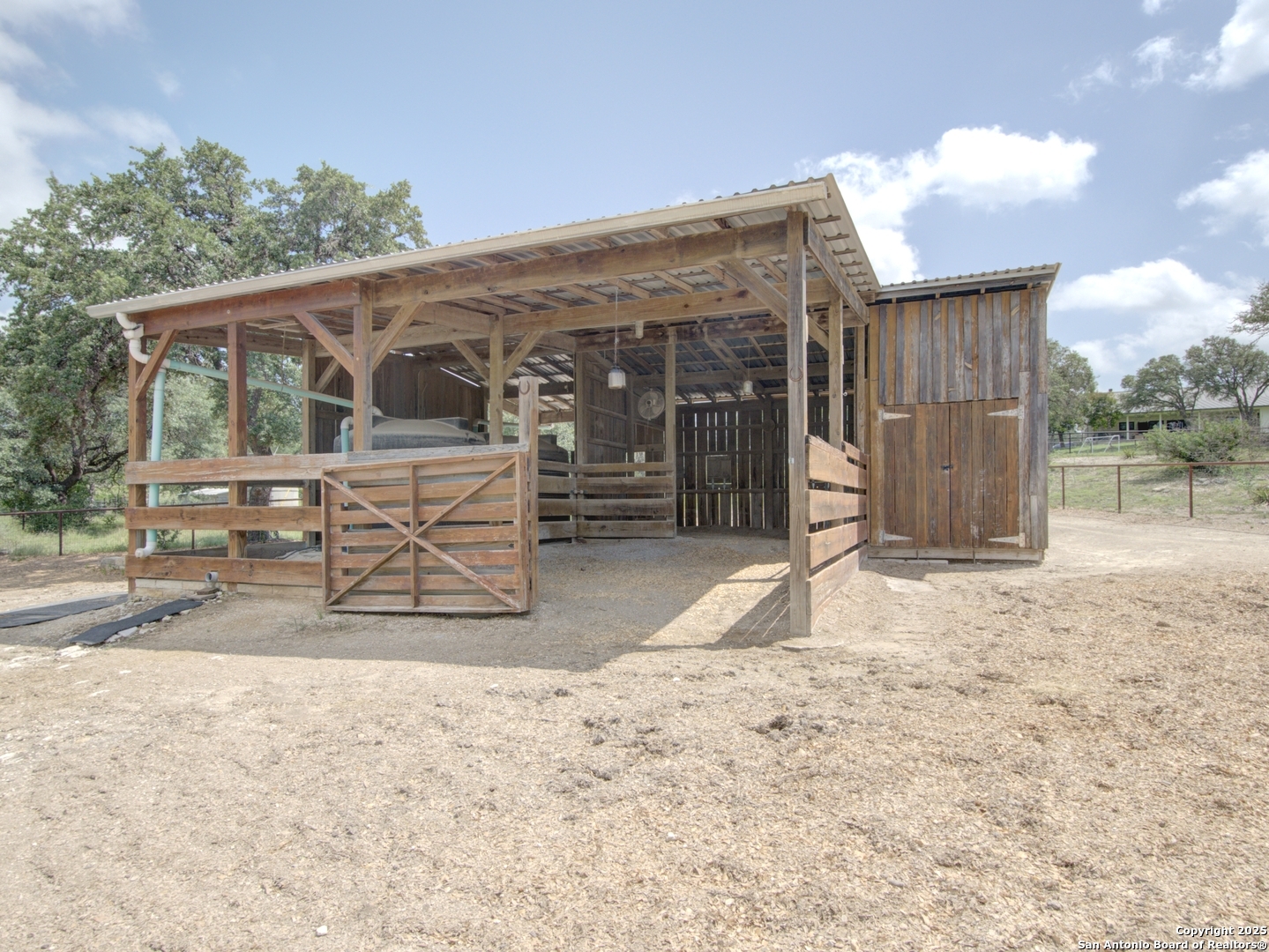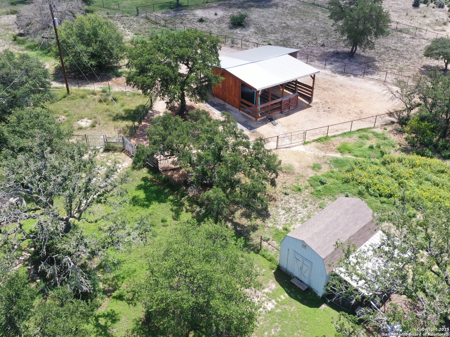 Traditional Hill Country Home on 5.011 Acres with Horse Facilities Charming 3-bedroom, 2-bath home with loft, situated on 5.011 peaceful acres surrounded by beautiful century oaks. Open Floor plan with high ceilings. A brand new kitchen features quartz countertops, new appliances and high ceilings. New paint and wood plank flooring in all rooms. spacious loft overlooking Livingroom offers additional living space or bedroom. Detached office/workroom offers flexible use. Exterior features include front and back covered porches, a 12x20 storage/garden room, and a horse barn with two large stables, tack room, paddock and multiple fenced pastures. Gated entrance provides privacy. Energy-efficient upgrades include thermal pane windows and solar panels. Durable standing seam metal roof and Hardie Plank siding. Great mix of comfort, functionality, and space-ideal for country living just minutes from IH-!0. Located in Welfare, Comfort ISD
