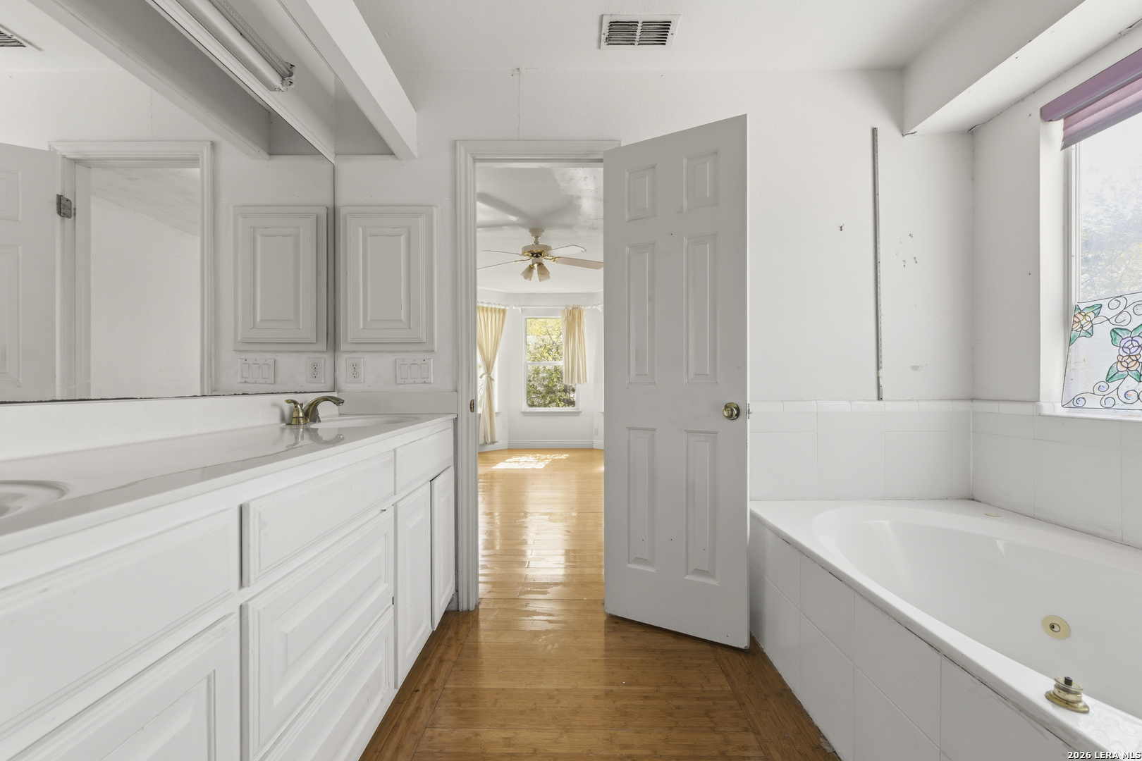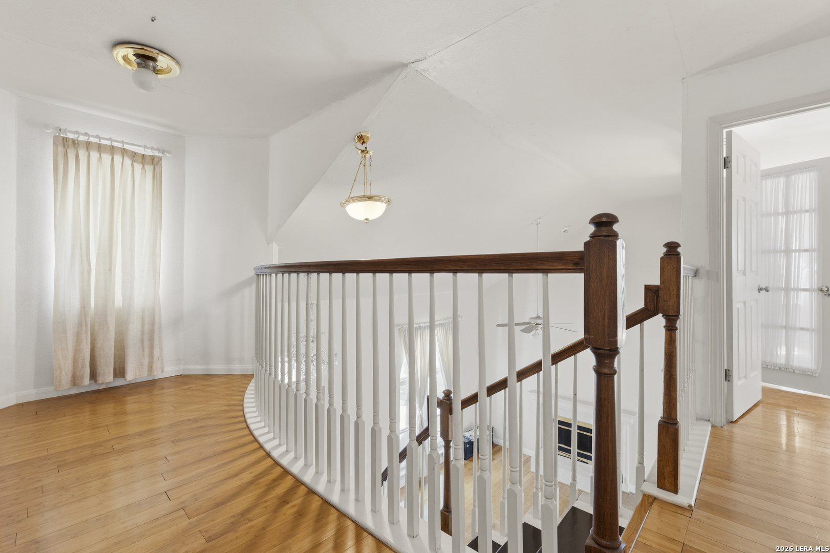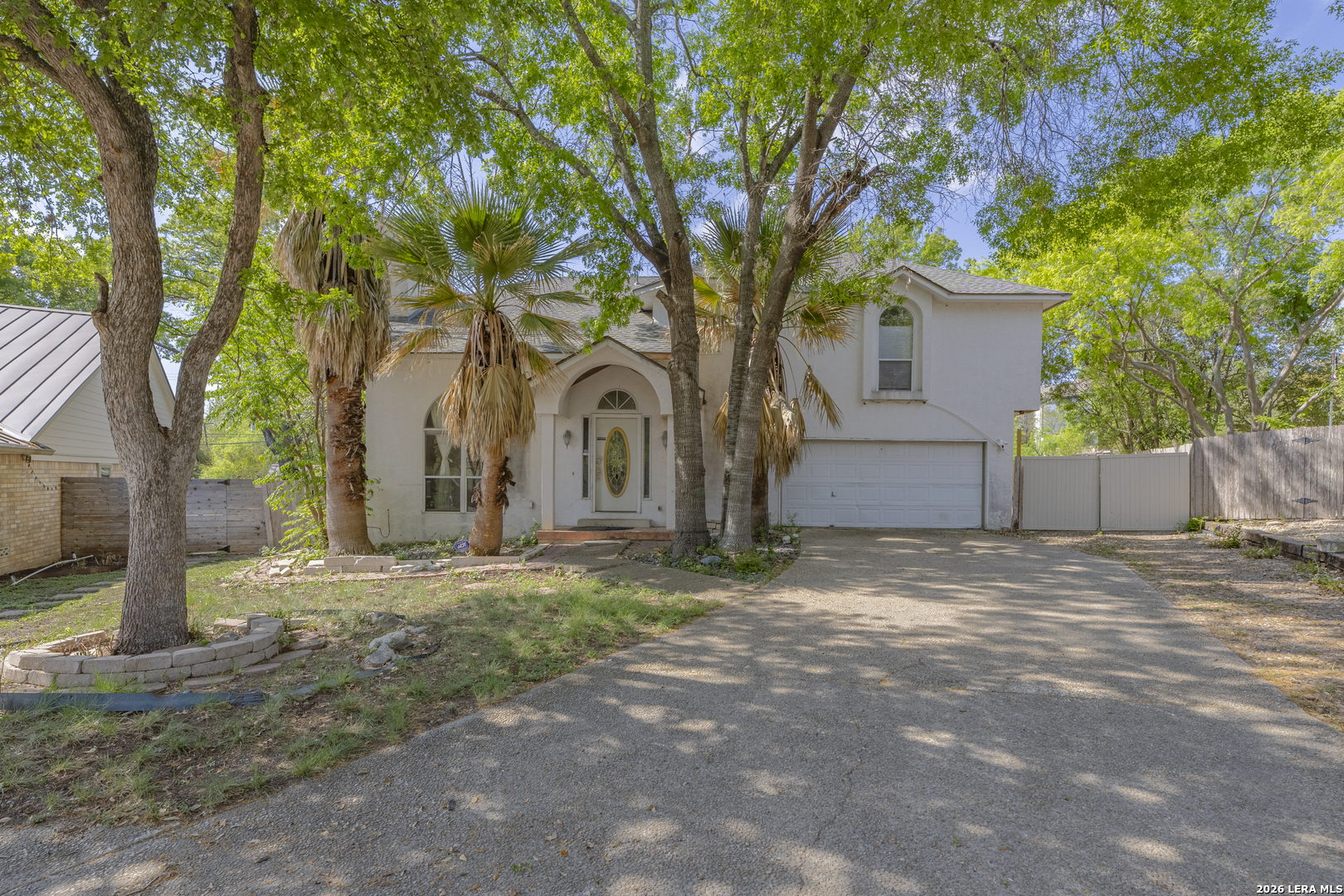 Tucked at the end of a quiet cul-de-sac in the sought-after 78232 area, this two-story home welcomes you in with a sense of warmth the moment you arrive. With its ideal location near McAllister Park and just minutes from Highway 281, you get the perfect blend of peaceful living and everyday convenience. Step inside and you're greeted by natural light pouring into an open, airy living space, where wood-style flooring flows through the main areas, creating a comfortable and connected feel. Your eyes are immediately drawn to the sweeping curved staircase, a true statement piece, that leads to a light-filled loft overlooking the living area and adds character you do not come across every day. The living room feels like the heart of the home, ideal for gathering, relaxing, or hosting friends. Just beyond, the kitchen offers generous cabinet and counter space, giving you a solid foundation to make it your own over time. Upstairs, the primary suite features a unique overlook to the living area below, bringing in additional light and creating an open, elevated feel. Out back, mature trees provide a shaded setting where you can unwind at the end of the day, host a barbecue, or simply enjoy a quiet morning outside. The cul-de-sac location adds an extra sense of privacy while still keeping you close to shopping, dining, and daily essentials. With its inviting layout, distinctive features, and a location that is hard to beat, this home offers a great opportunity to settle into an established neighborhood and truly make the space your own. Schedule your showing and come see the potential for yourself!