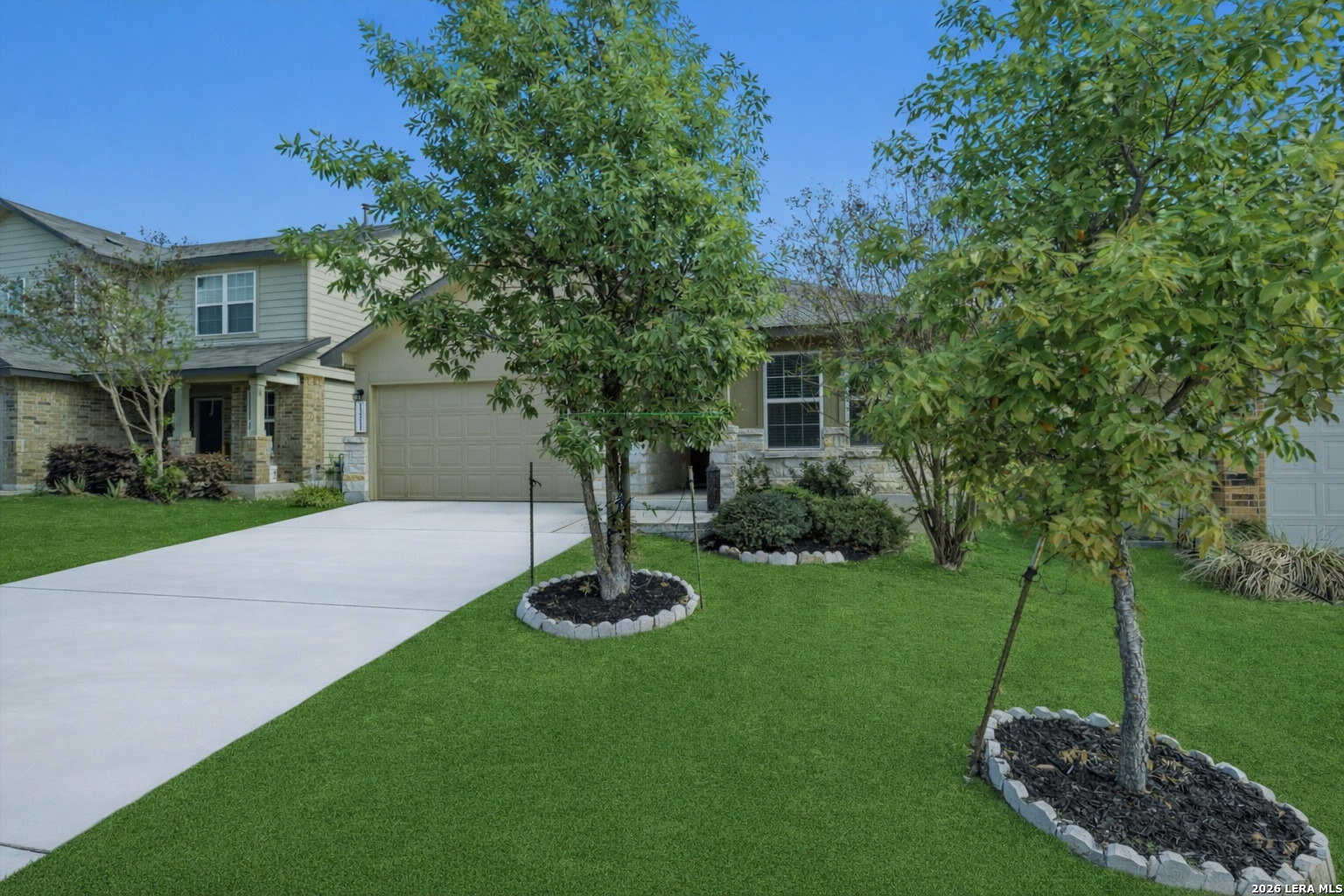 Welcome home! This charming one-story home in Valley Ranch features 4 bedrooms, 2 baths, and an open layout with 9-ft ceilings. The kitchen offers granite countertops, espresso cabinets, stainless steel appliances, a gas range, and a large island. The primary suite includes a garden tub, separate shower, and a spacious walk-in closet, while secondary bedrooms are located near the entry. A water softener is also included. Conveniently located near Culebra & 1604 on San Antonio's West side, with easy access to shopping and dining. Enjoy great community amenities including pools, a splash pad, fitness center, and sports courts. Don't miss this one!
