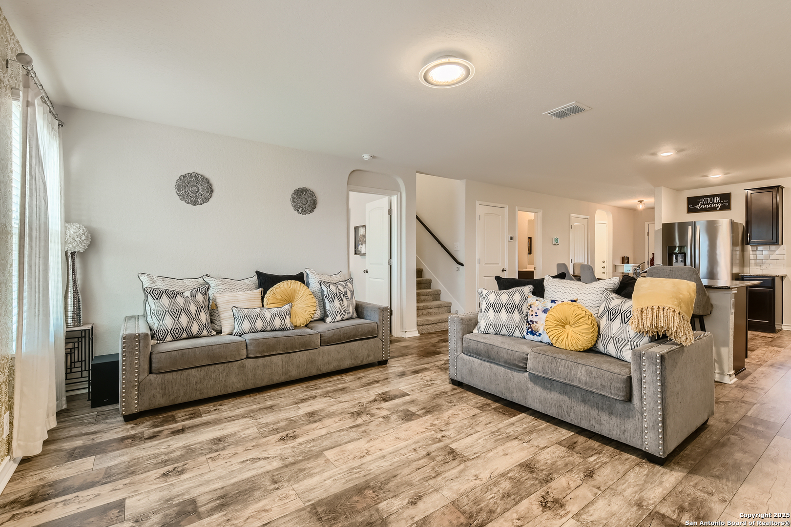 VA assumable loan at 2.75%!! Upgrade your lifestyle in Valley Ranch - recognized as the 2025 Community of the Year by the Community Associations Institute San Antonio. Welcome to 13322 Silky Rye, a 5-bedroom, 3.5-bath home offering nearly 2,700 square feet of well-designed living space. Built in 2020, this home features thoughtful upgrades beyond builder grade, including a water softener, cabinet hardware, updated lighting & fixtures, fresh interior paint, and enhanced landscaping with new mulch. The first floor showcases a modern open-concept kitchen and living area with a large island, half bath, and a spacious primary suite. Upstairs, you'll find a generous second living or flex space, three additional bedrooms, and a full bathroom. Exterior features include a covered back patio and a spacious backyard, perfect for relaxing or entertaining. The painted 2-car garage includes multiple bike racks for added functionality. Enjoy access to award-winning community amenities, including an Olympic lap pool, resort-style pool with play area and water slides, clubhouse, veranda, park/playground with splash pad, basketball and tennis courts, fishing pier, volleyball and soccer areas, and miles of walking and running trails. Don't miss your opportunity to experience both the home and the lifestyle-schedule your showing today.