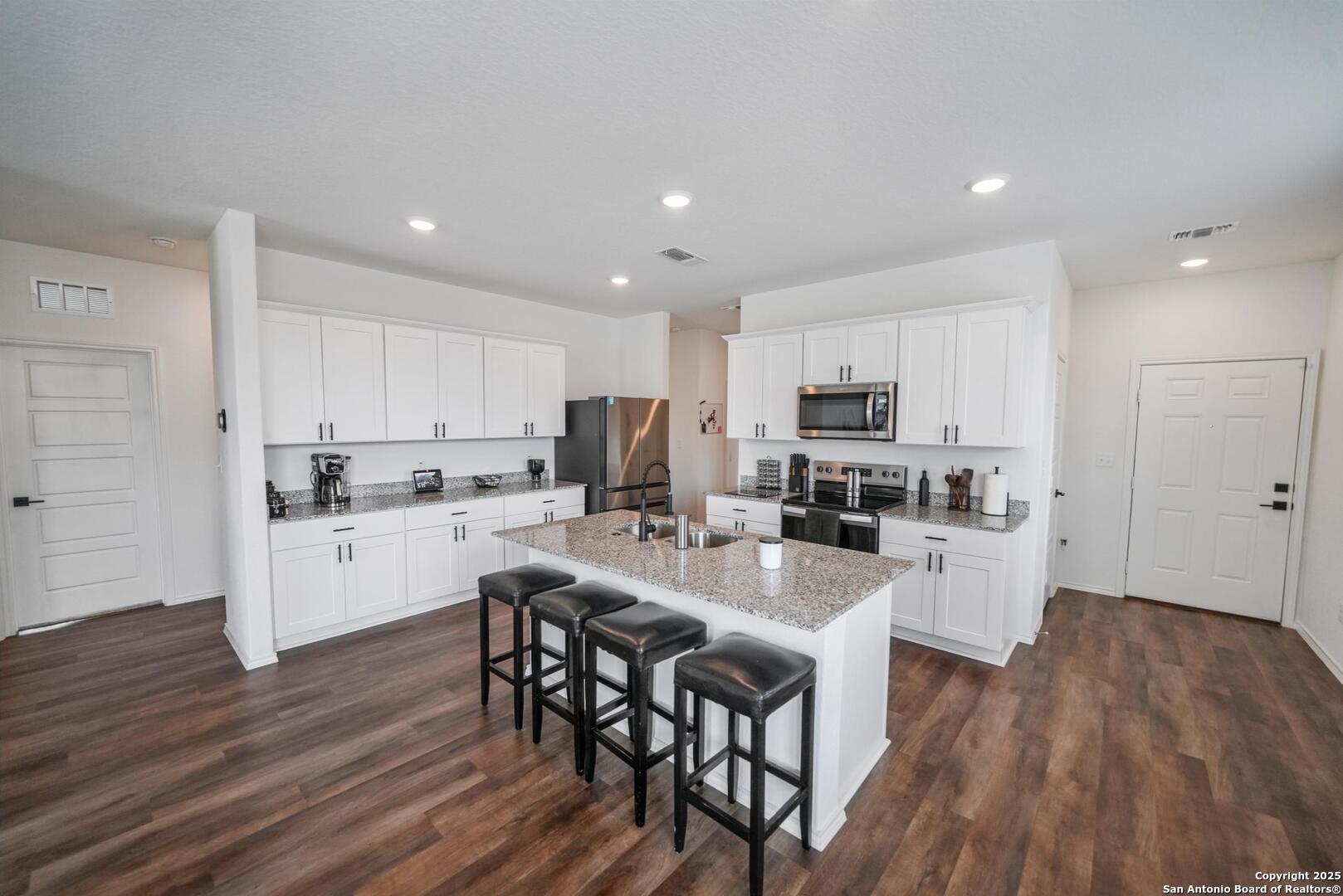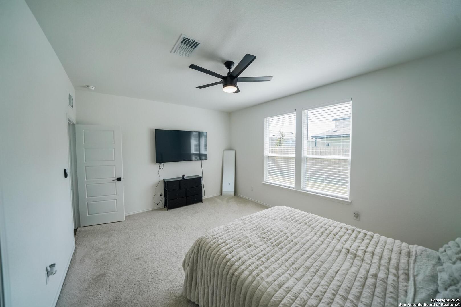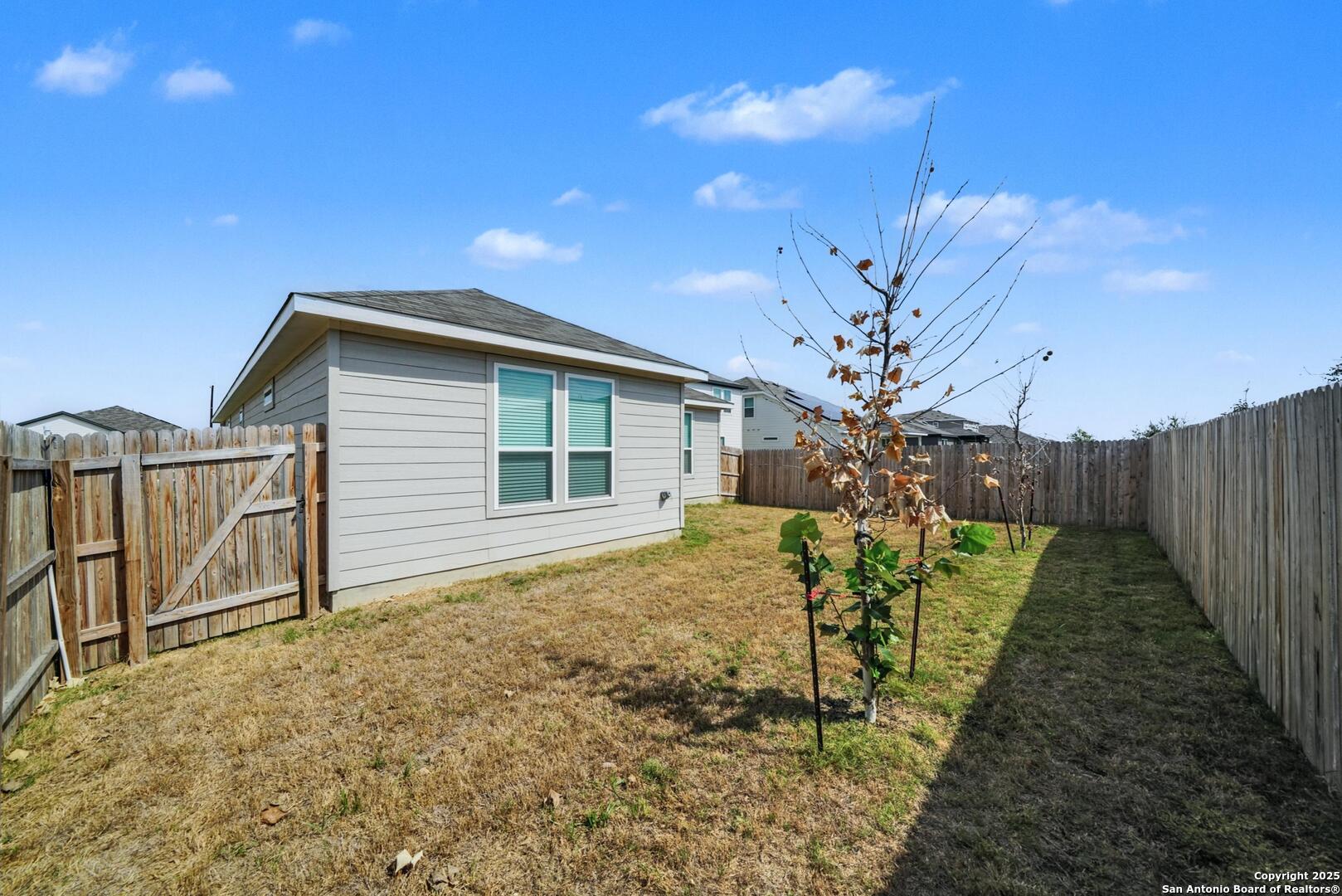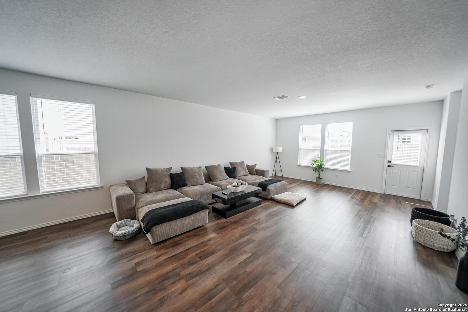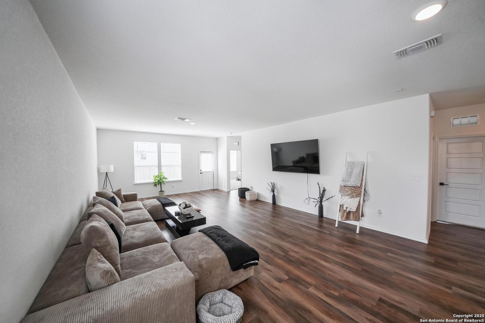 This nearly new single-story home offers 4 bedrooms and 2 bathrooms in the highly sought-after Vista Real subdivision. Step inside through the oversized entryway and into the open-concept living, dining, and kitchen areas, where stunning vinyl plank flooring and abundant natural light create a warm, inviting atmosphere. The spacious kitchen is designed with both style and functionality in mind, featuring granite countertops, upgraded shaker-style cabinets with custom pulls, a large island with an undermount sink, and matching stainless steel appliances. For added convenience, a refrigerator, washer, and dryer are included. The private master suite is thoughtfully separated from the secondary bedrooms and boasts a luxurious en-suite bathroom complete with dual vanities, a large walk-in shower, and a spacious walk-in closet. The three additional bedrooms are generously sized, providing plenty of space for family, guests, or a home office. With quick access to Loop 1604, Interstate 10, and just a short drive to Randolph AFB, this home offers both comfort and convenience. A true pleasure to show!