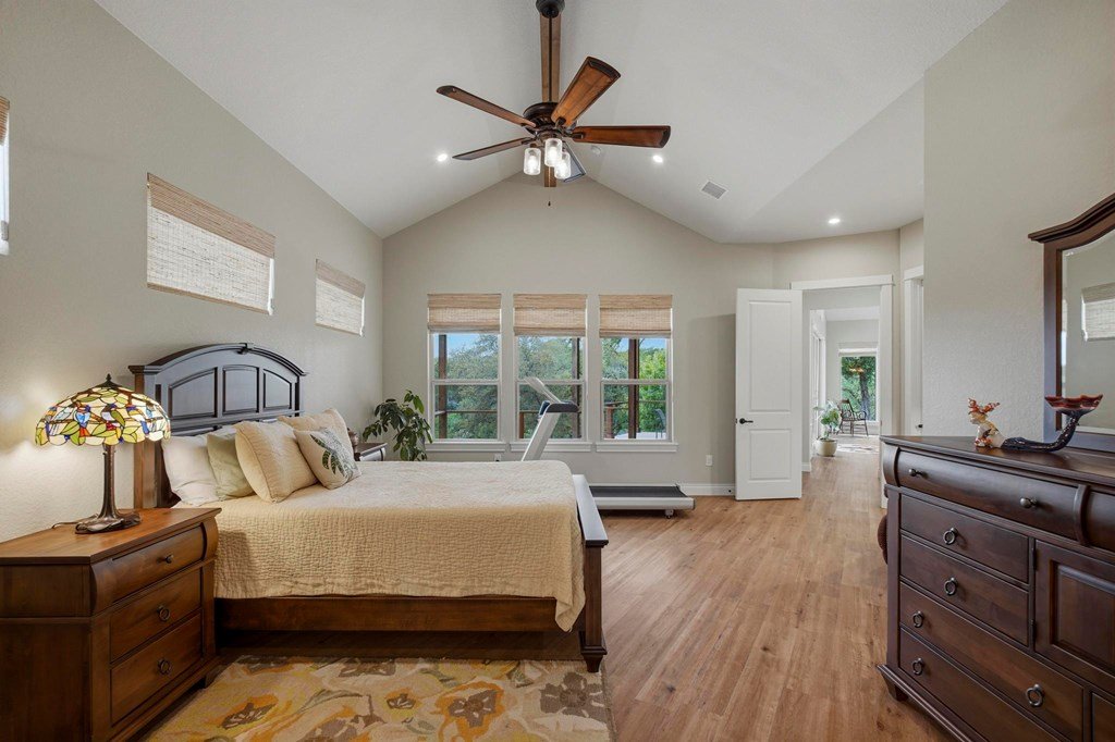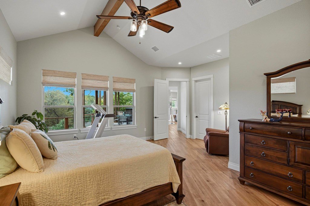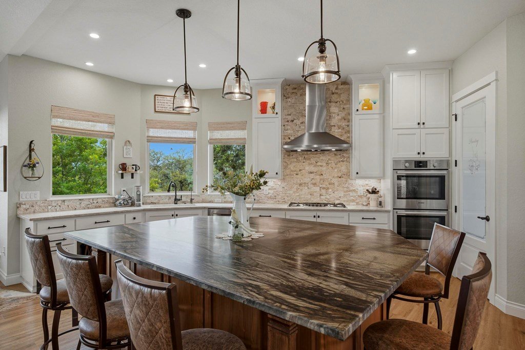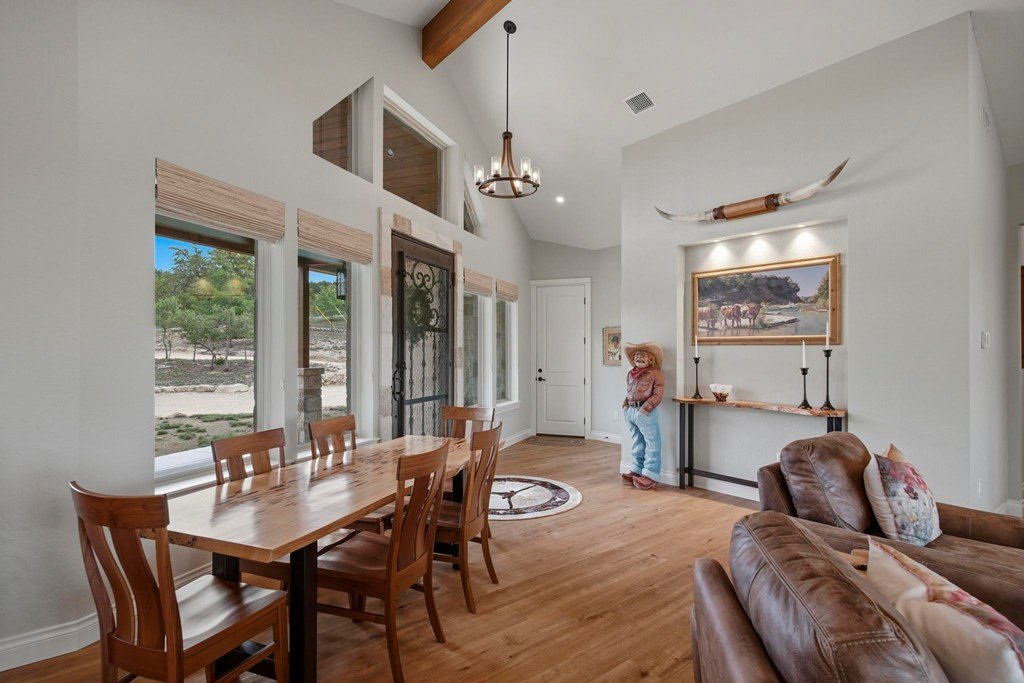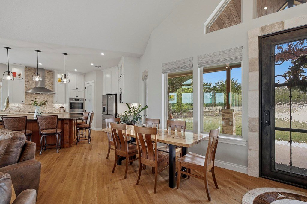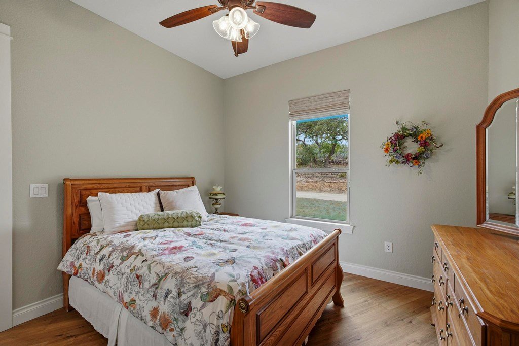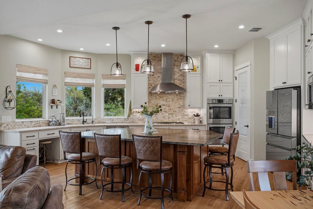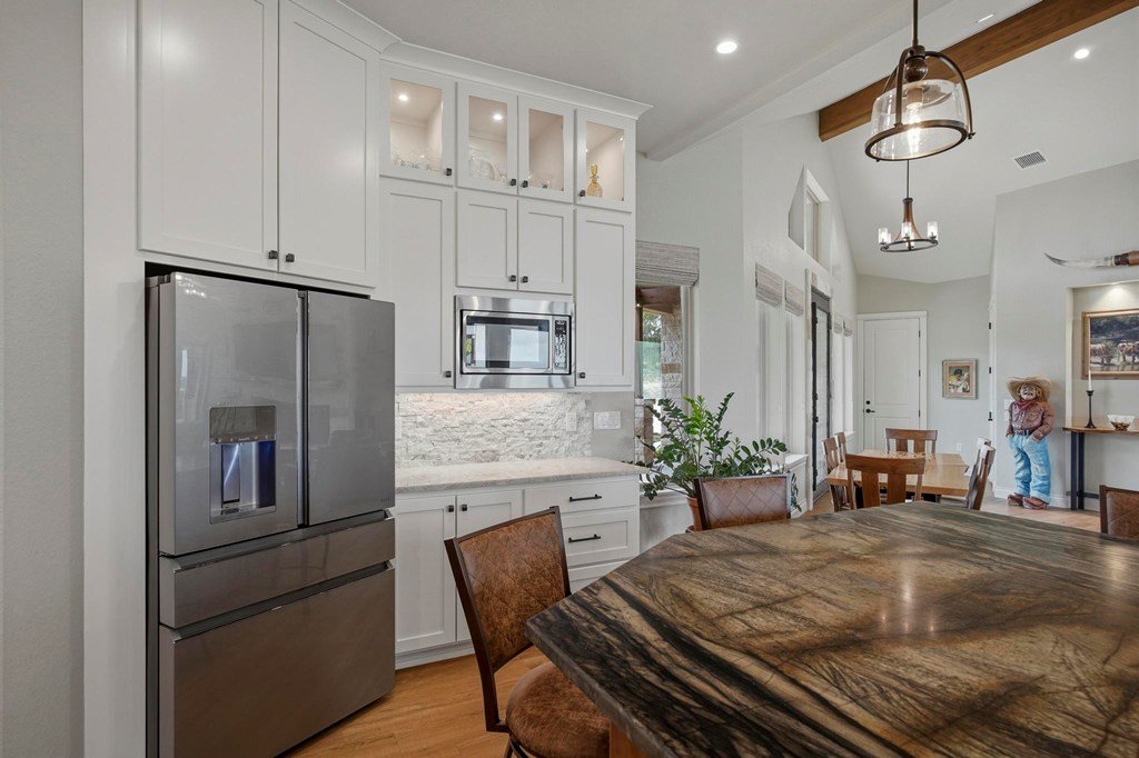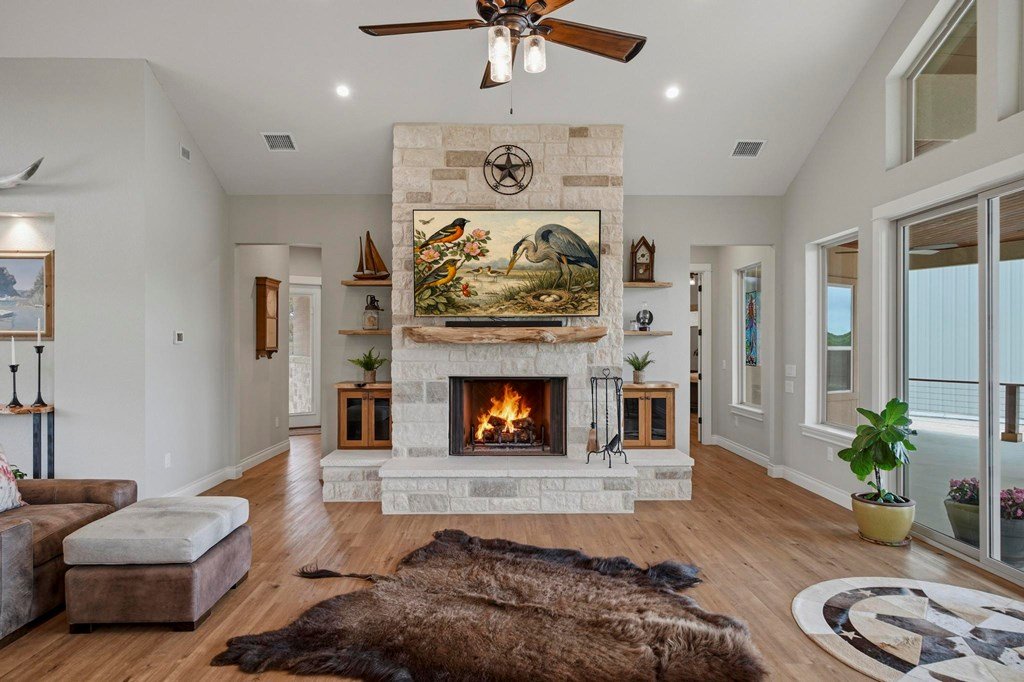peaceful 1). free from disturbance; tranquil 2). 134 Stallion Estates Drive. 134 Stallion Estates Drive most definitely defines peaceful. Relaxation sets in as you enter into the beautiful neighborhood of Stallion Estates. Security, serenity and seclusion best describe this community. Stallion Estates residents also enjoy the benefit of no city property taxes. -- Built by NS Custom Homes this 3 bedrooms and 2 full bath home was constructed with the highest quality materials, masterful engineering, highest efficiencies and beautiful appointments throughout. See attached sheet for additional upgrades & features. Plenty of natural light, large picture windows and views of the Texas Hill Country greet you upon entry. The open floor plan boasts a 17' vaulted beamed ceiling in the great room, a limestone rocked fireplace adorned with walnut cabinets and floating shelves, a walnut live-edge mantel, eating areas and spacious kitchen. Wide doorways and hallways, solid doors and timeless luxury vinyl flooring (zero transitions strips) are carried throughout the house. The spacious master bedroom is enhanced by a vaulted ceiling. The master bath offers a large walk-in shower with dual heads, granite counter tops and custom cabinets. The kitchen includes an oversized quartzite island, quartzite countertops, custom floor to ceiling cabinets, under cab lighting, walnut drawers, high end stainless steel appliances including double ovens and a walk-in pantry. Definitely a chef's delight. Step out onto the double covered patio where grilling and chilling is a must. Here you will enjoy the Coyote grill system with granite countertops. -- As with the house the 2400' metal workshop sets on a post-tension slab. The workshop offers an epoxy floor, 10,000 lb. Challenger vehicle lift, 4 overhead doors, 1/2 bath, shop sink, 200 amp service with 20, 30, 50 amp plugs, LED 21,000 lumen shop lights, work benches and Cat6 wiring throughout. The 2500 gallon rainwater catchment tank with pump allows for plenty of water to irrigate. May be the cleanest workshop in The Hill Country. -- The house is situated on a bluff allowing one to enjoy glorious sunsets and miles of Hill Country views. The fire pit seating area adds a special touch to this amazing property. From here natural rock steps lead you down to a park-like setting. The entire 6 acres have been meticulously cleared. Drought resistant native Blue Grama grass has been planted throughout. Here you will discover a variety of manicured trimmed trees such as the Texas oak, live oak, red oak, Texas juniper and Texas mountain laurels. A ranch road meanders through the property. -- Only a short drive to plenty of shopping, restaurants, hospitals, entertainment, The Whitewater Amphitheater, The Guadalupe River and Canyon Lake. Jump on HWY 281 to Austin, San Antonio and The Highland Lakes. Close proximity are the quaint towns of New Braunfels, Gruene, Spring Branch and Bulverde. Seclusion, security, privacy and just plain better living await you at 134 Stallion Estates Drive.