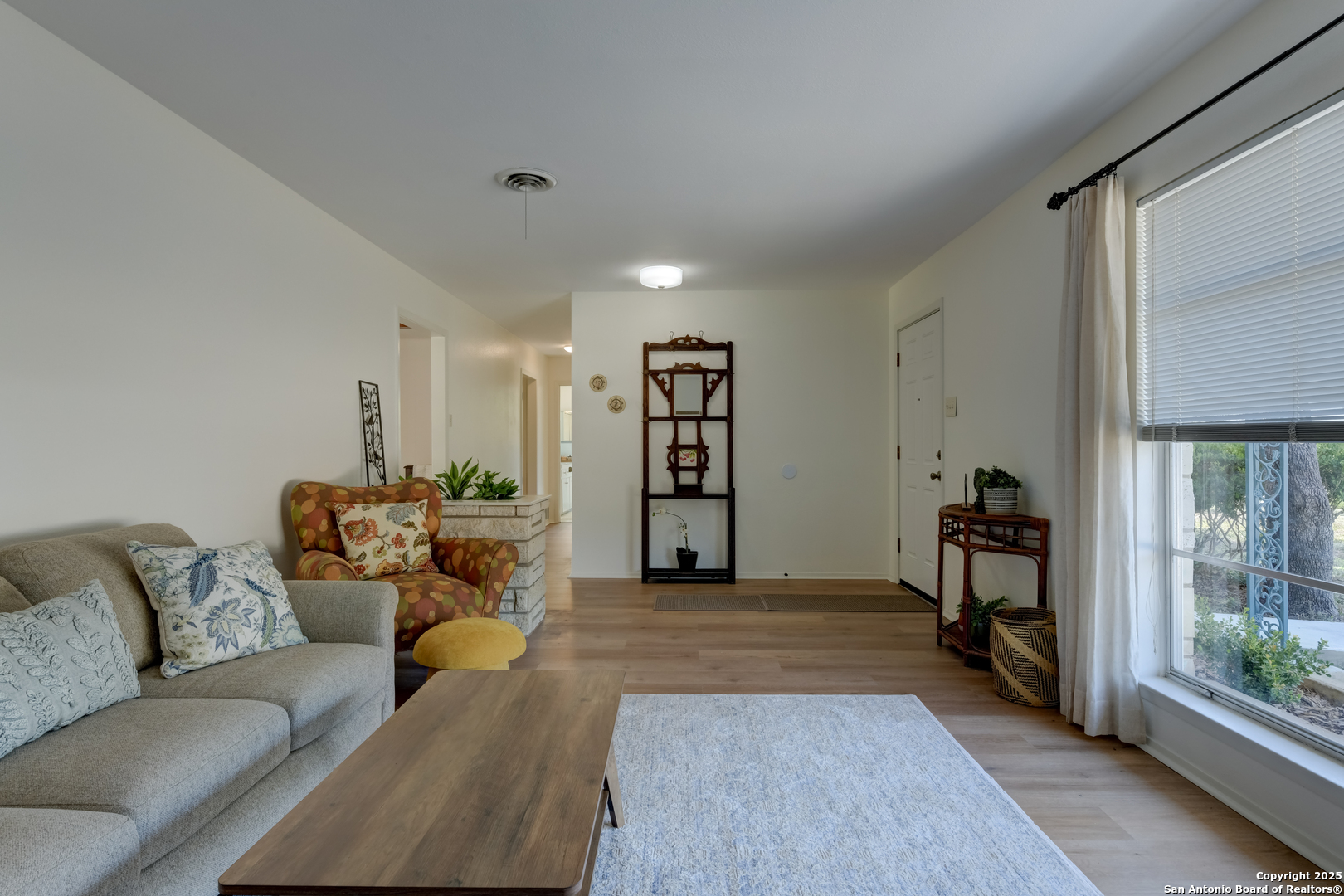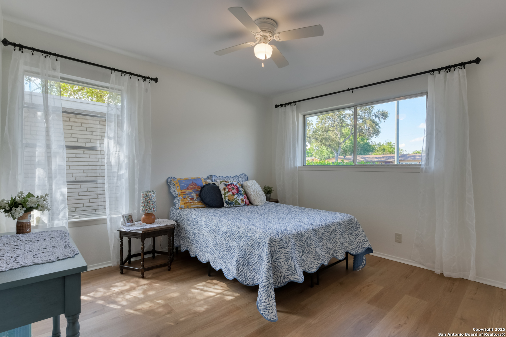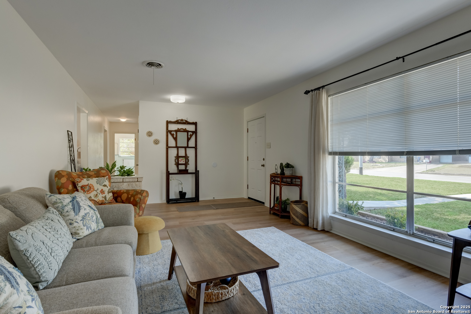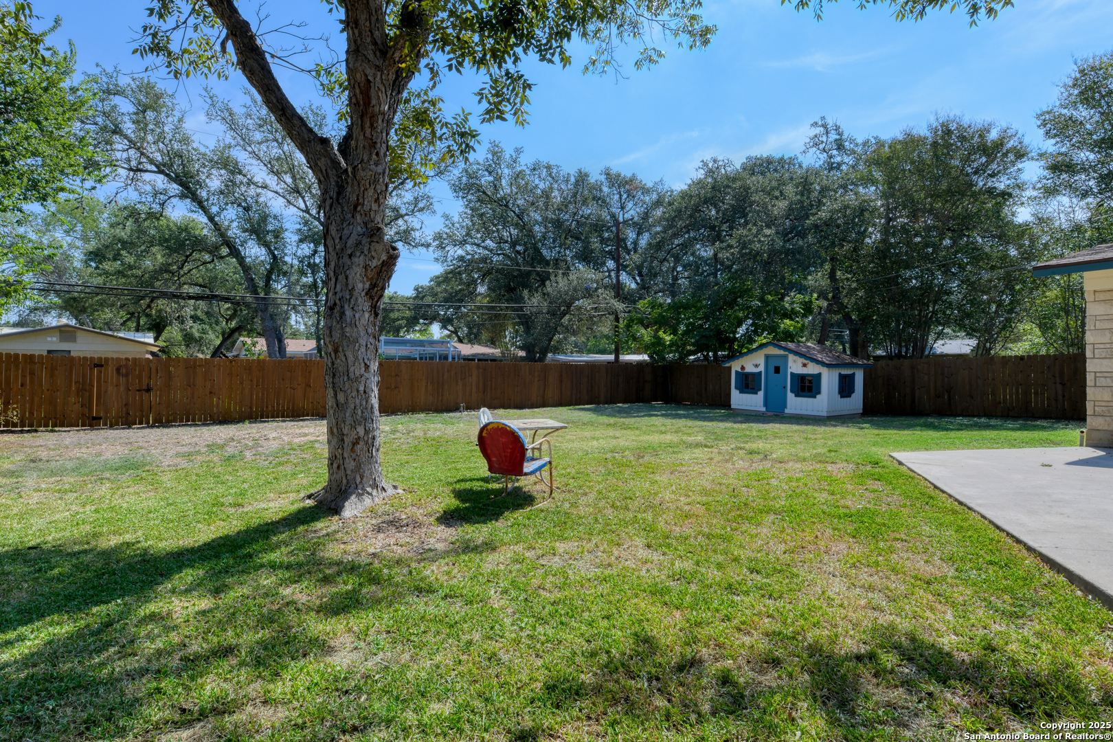 Lovely 4 bedroom/ 2 bath 60's ranch home retaining charming original features. Numerous upgrades include new 3D roof w/transferrable warranty, fence and staining, exterior/interior paint, cork backed LVP throughout, water heater. Large garage w/workshop area, playhouse in spacious back yard. Home is on a lovely, quiet street near Randolph, splash pad, library, parks, shopping at the Forum, HEB, Walmart. HVAC and pest control maintained quarterly and no HOA!