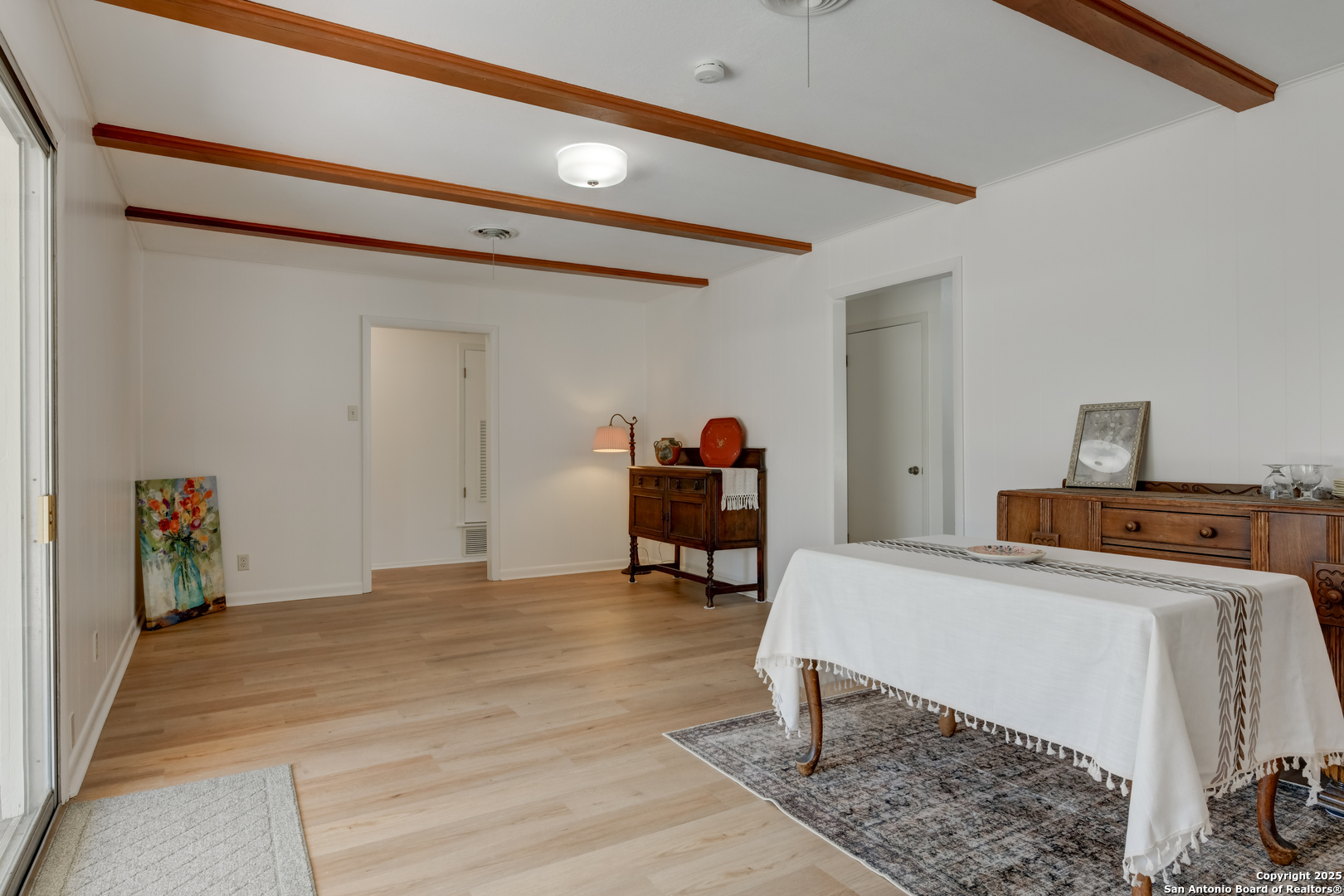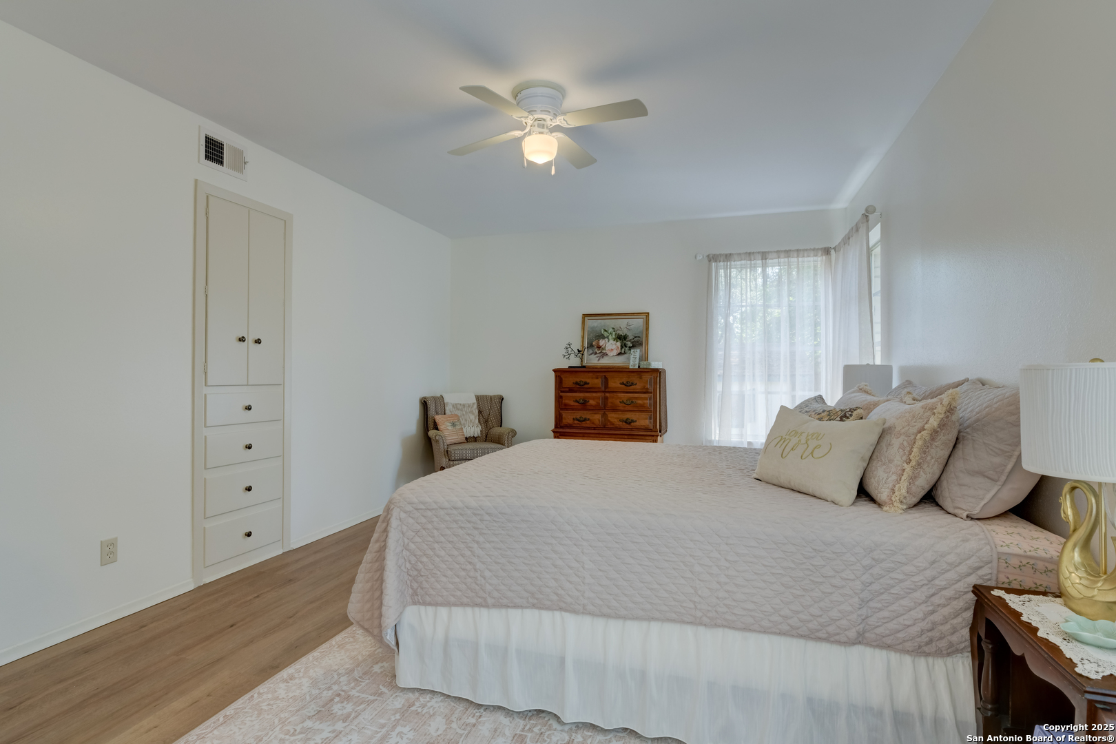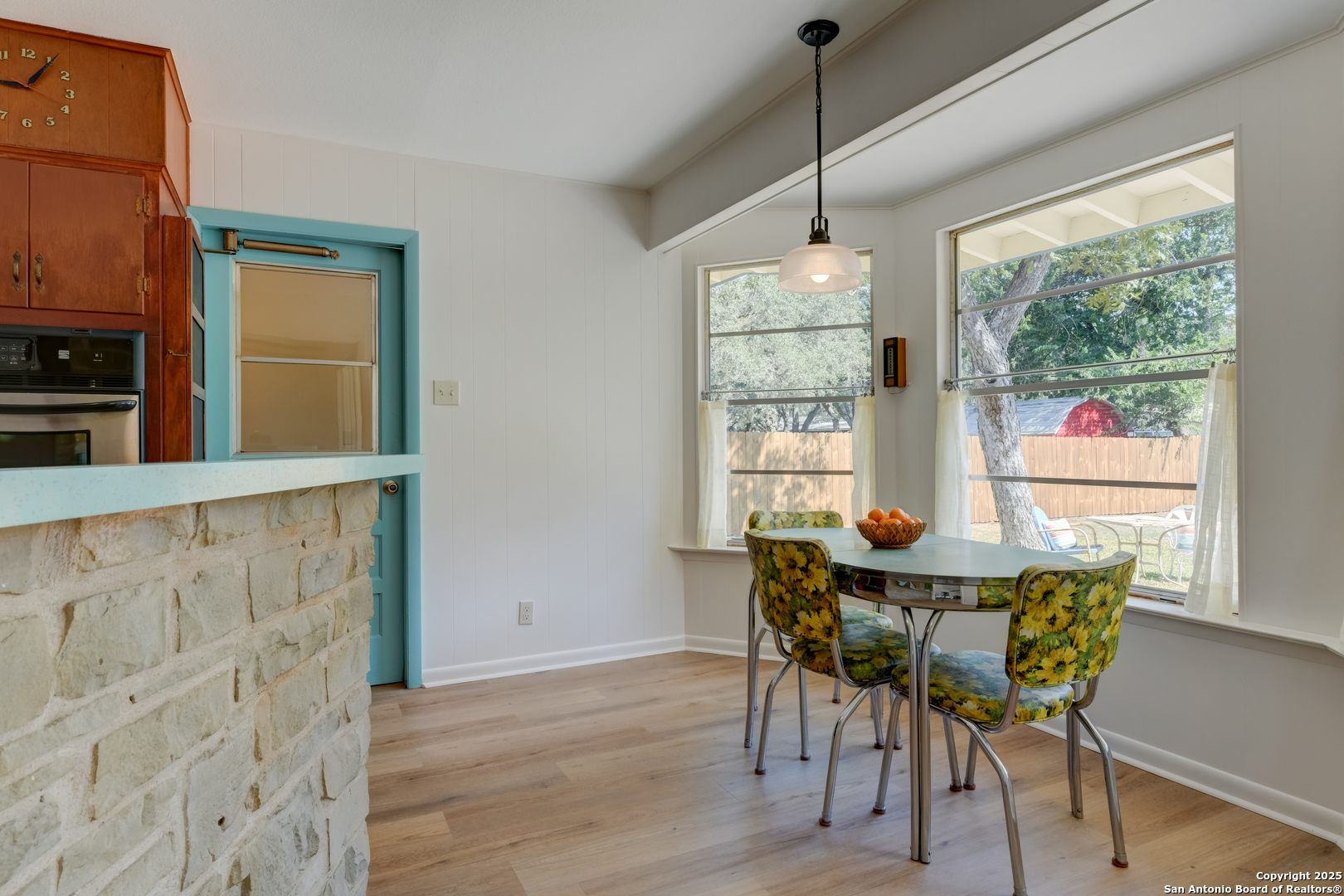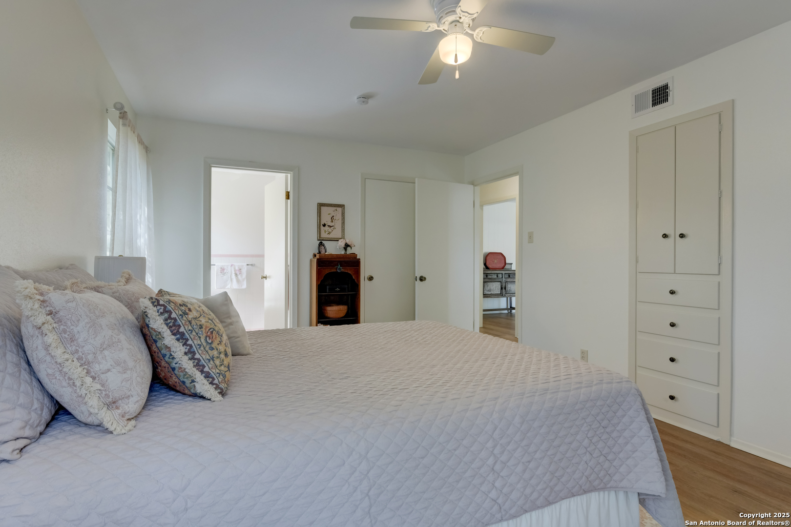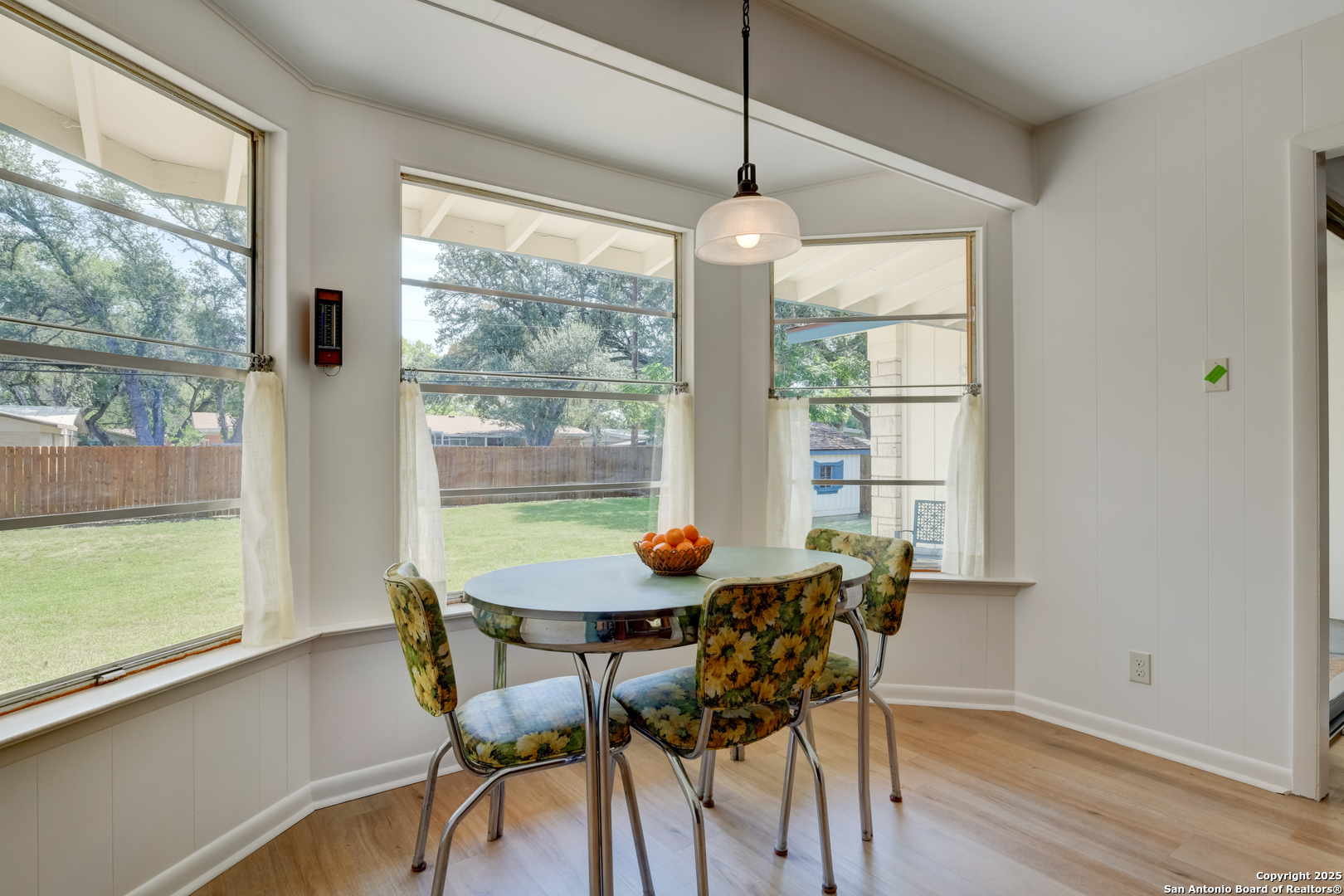 Lovely 4 bedroom/ 2 bath 60's ranch home retaining charming original features. Numerous upgrades include new 3D roof w/transferrable warranty, fence and staining, exterior/interior paint, cork backed LVP throughout, water heater. Large garage w/workshop area, playhouse in spacious back yard. Home is on a lovely, quiet street near Randolph, splash pad, library, parks, shopping at the Forum, HEB, Walmart. HVAC and pest control maintained quarterly and no HOA!