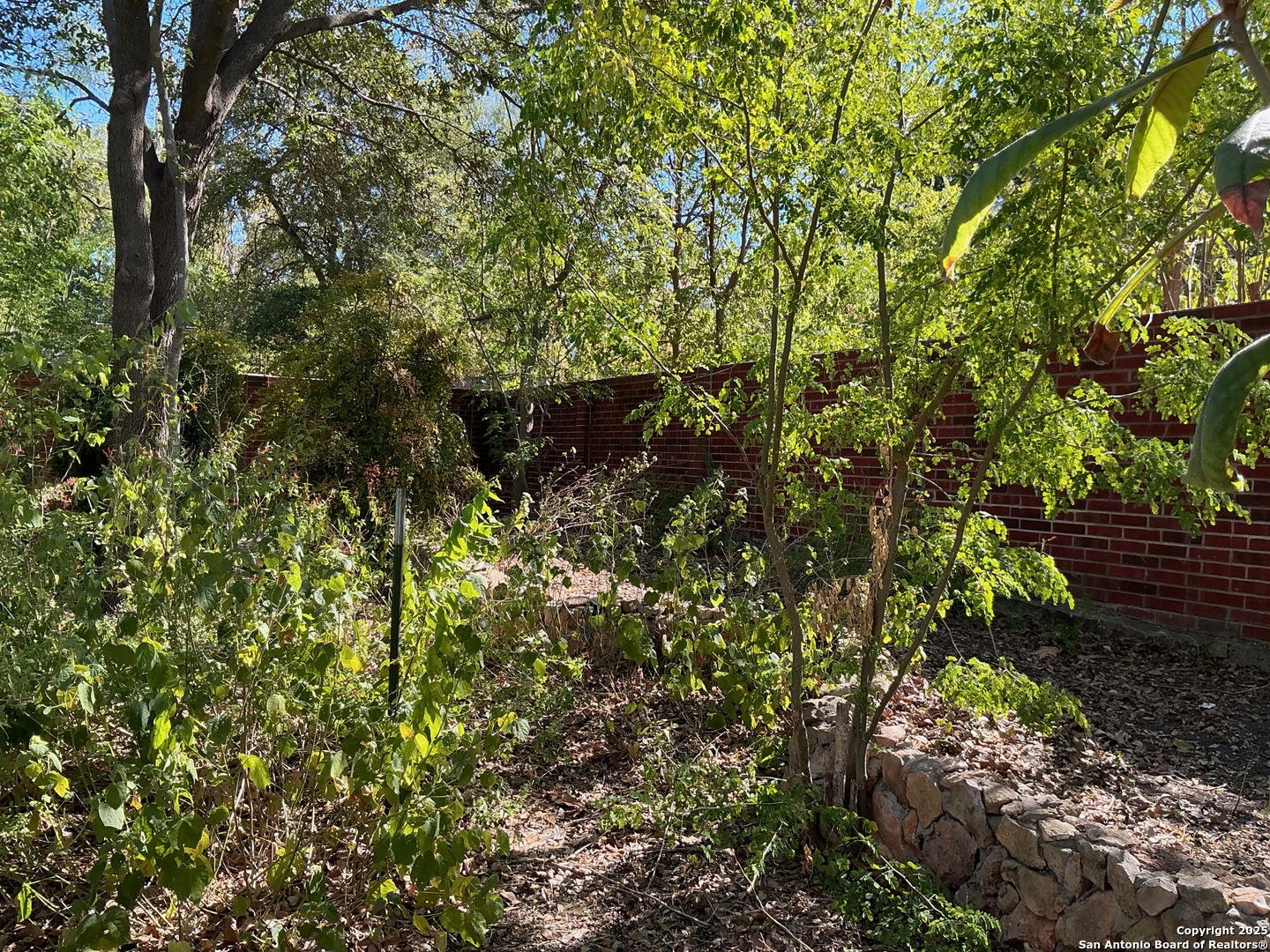Gorgeous Luscious Lot in Midtown San Antonio ** Foliage across the front for Privacy...or clear to your taste ** Variety of Mature trees... peach, pecans, plum, apple and Greenery Galore ** Tall Red Brick Wall on Two Sides .. Extra Red Bricks On Site for Buyer ** Driveway Already Established ** Utilities Available - Not on Site ** So close to Shopping and Local Unique Neighborhood Venues ** Drive-by...Walk around the Lot...Visualize your Home & Garden ** Come See for Yourself!!