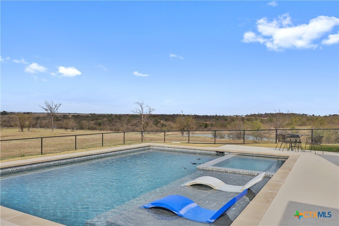 Stunning 2023 custom home on 30.03 acres featuring 4 beds, 3 baths, extra-large bedrooms, tile and carpet flooring, and abundant storage. Gourmet kitchen offers double award-winning islands, gas cooktop, two sinks, extra butler’s pantry, large pantry w/ built-ins, swinging access door, and built-in ice maker. Living room includes wood-burning fireplace, built-ins, and large sliding glass doors. Home includes office w/ built-ins & closet, a media room w/ bath & wet bar, mud room, large laundry room (sink + closet), built-in gun safe, soft water system, 3 AC units, and 2 tankless water heaters. Primary suite features his & her walk-in closets w/ built-ins & laundry access, double vanity, walk-in shower, and tub. Secondary bath includes a soaking tub. Exterior features include pool & spa combo, 60x40 shop, and oversized 2-car garage designed for long-bed trucks/duallys with full staircase access (no pull-downs). A rare mix of luxury, space, and functionality—move-in ready!