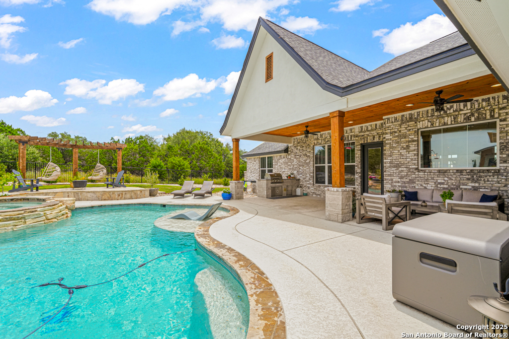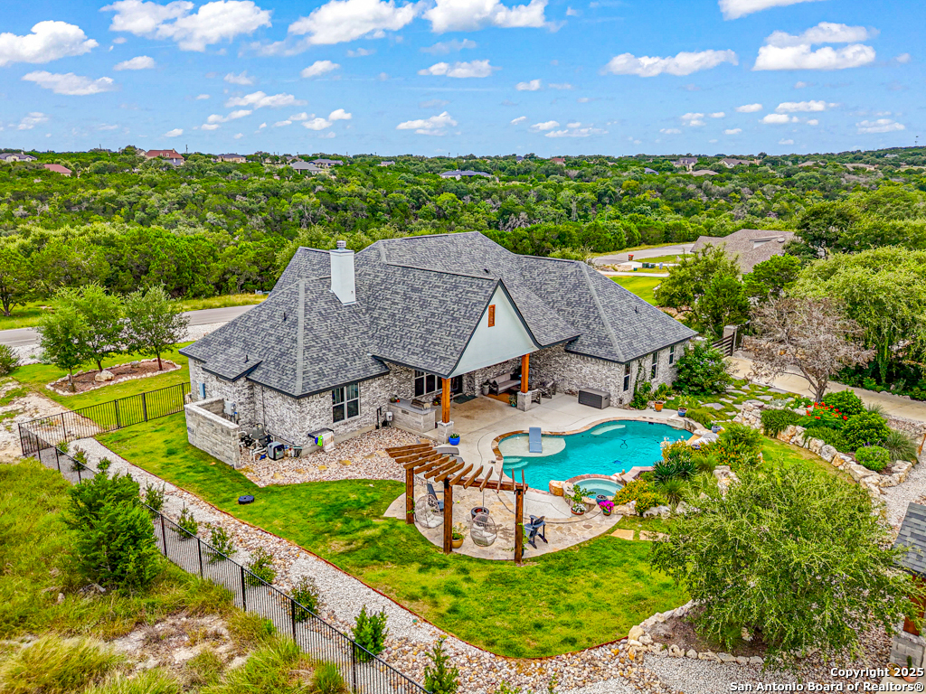 Welcome to 1348 Mystic Shores, an exceptional Hill Country retreat tucked into the peaceful north side of Canyon Lake. Set on a beautifully maintained lot in the highly sought-after Mystic Shores community, this property combines timeless design, modern updates, and versatile space to accommodate nearly every lifestyle. The main residence features 4 generously sized bedrooms, 3.5 baths, and an open, flowing layout that exudes warmth and quality. The living room is anchored by a stately fireplace and newly added wainscoting that elevates the space with texture and charm. A fully remodeled primary bathroom offers a spa-like experience with a luxurious garden tub, split vanities, and elegant tilework. The kitchen is a chef's delight, featuring gas cooking, ample cabinetry, and thoughtful details that make it both functional and stylish. Upstairs is a flexible space currently used as a bedroom, though it could easily serve as a media room, home office, or guest suite. Beyond the main house, an impressive detached structure offers additional square footage not included in the official listing. With an approximate 30x50 footprint, this space is built for both productivity and possibility. The lower level includes a workshop, a two-car garage (one bay oversized for RV or boat storage), and a flexible fitness area. A commercial-grade 3-car lift is currently installed and is negotiable with the sale. Upstairs, a fully outfitted studio apartment includes a kitchen, full bathroom, and private entrance-ideal for guests, extended family, or potential rental income. Whether you're entertaining, housing visitors, or carving out space for creative pursuits, this detached building opens the door to endless opportunities. Step outside and experience true Hill Country living. The backyard is designed for leisure and hospitality, complete with a custom pergola with swings, an outdoor gas grill setup, and a resort-style pool featuring a waterfall and built-in lounge area. The back portion of the property is fenced for privacy and security, and an electric gate at the entrance enhances both convenience and curb appeal. Located within Mystic Shores, you'll enjoy access to a suite of community amenities including lakefront parks, a neighborhood pool, walking trails, and more-all while being just a short drive to Spring Branch, New Braunfels, and the greater San Antonio area. Highlights Include: 4 Bed / 3.5 Bath Main House Upstairs Flex Room (Bedroom/Media/Office) Remodeled Primary Bath with Garden Tub Gas Cooking in the Kitchen Detached Structure (approx. 30x50 footprint, not included in MLS square footage) Workshop, Oversized Garage with 3-Car Lift (negotiable), Fitness Area Upstairs Studio Apartment with Full Kitchen & Bath Resort-Style Pool with Waterfall and Lounge Space Outdoor Kitchen and Pergola with Swings Electric Gated Entry Fenced Backyard Mystic Shores Amenities and Canyon Lake Proximity This is more than a home-it's an estate with heart, purpose, and unmatched flexibility. Whether you're seeking a primary residence, a multi-generational compound, or the ultimate weekend escape, 1348 Mystic Shores delivers. Schedule your private tour today.