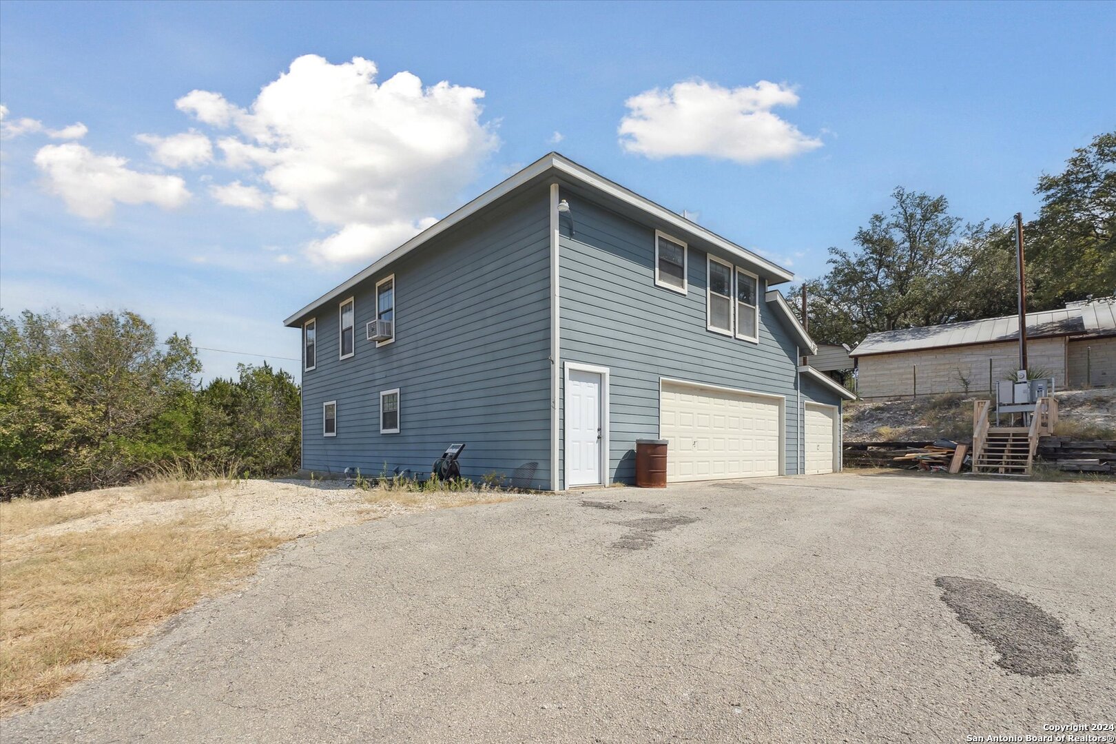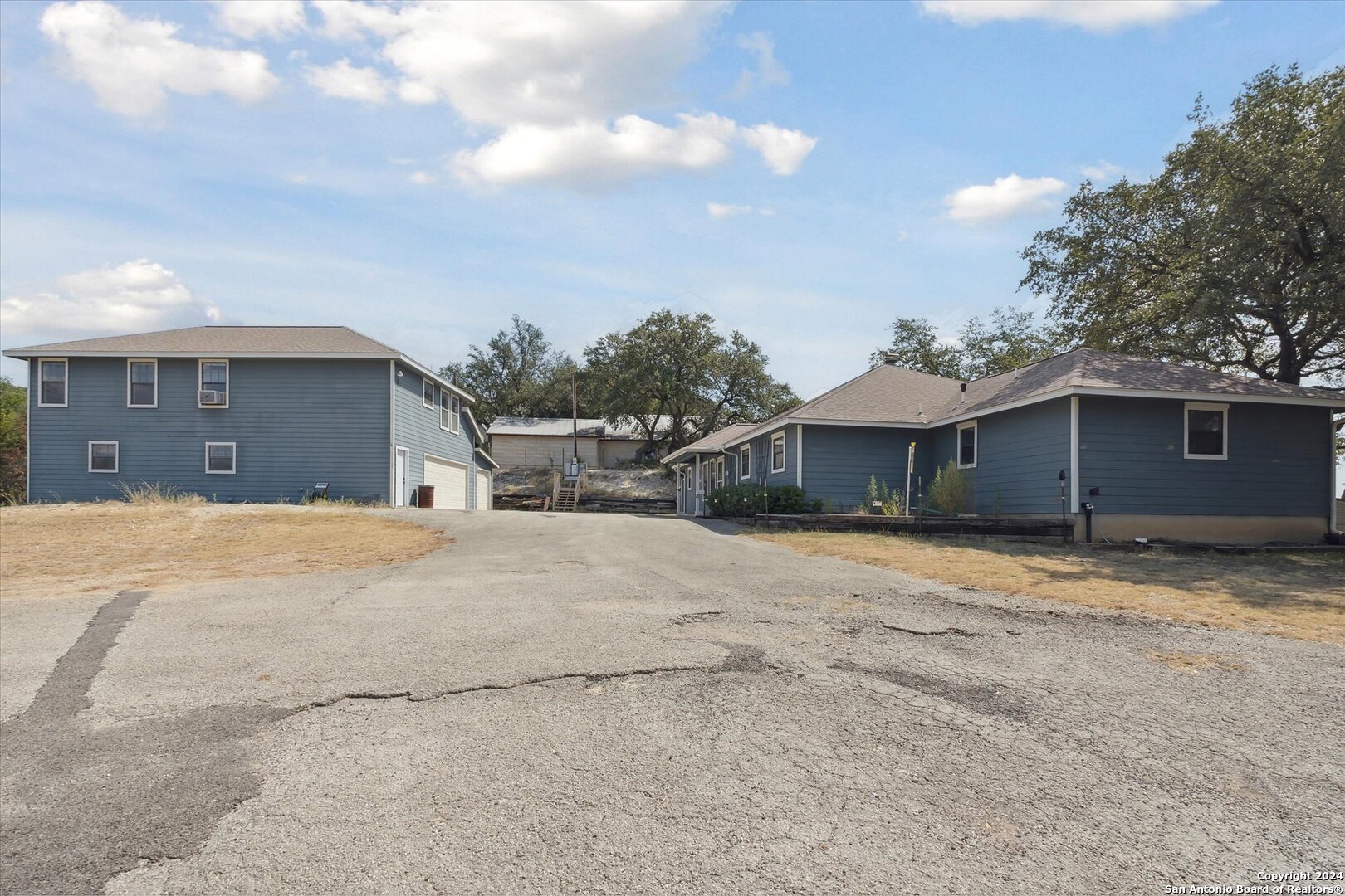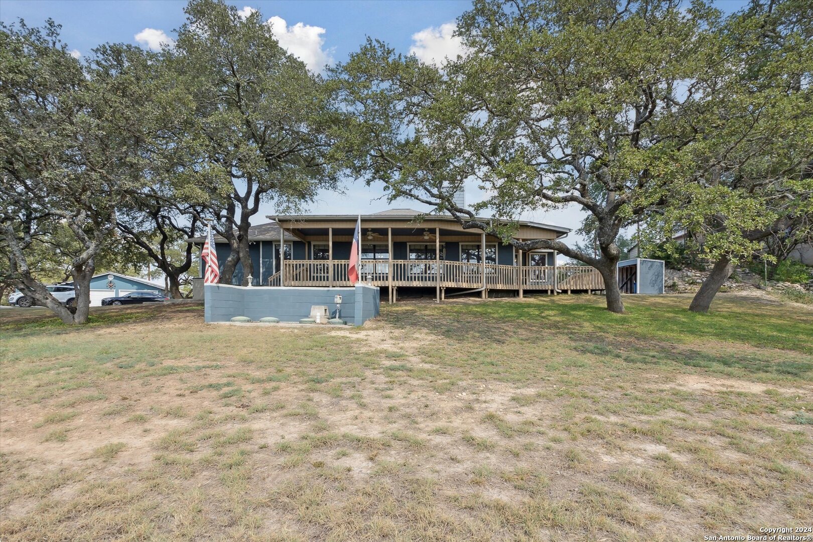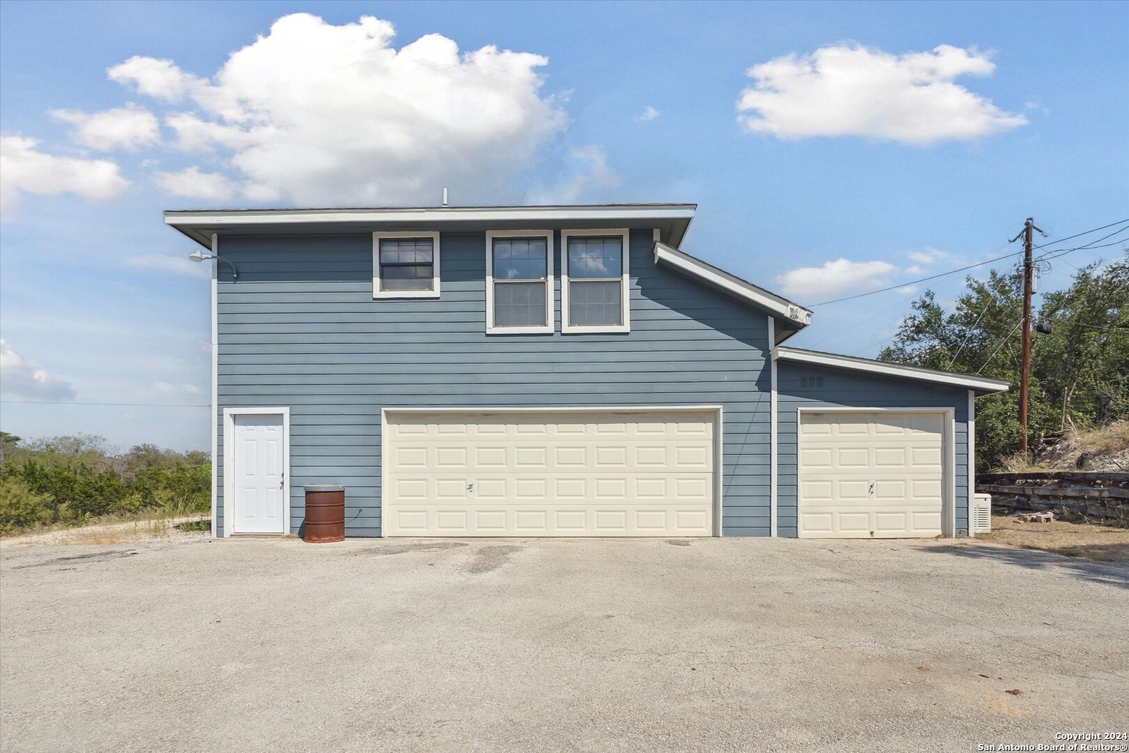 Beautiful lakefront property with amazing Texas Hill Country views. 4-car tandem detached garage with a small attached storage garage. 1 bedroom, 1 bath garage apartment with an elevator and a newly renovated shower (2023).Dual/split A/C and heating units in the apartment (new in 2022). Generac full-house generator (new in 2021 or 2022), powered by propane. Main house: 2 bedrooms, 2 bathrooms. Newly renovated guest bathroom shower (2023). Main house features electric central heating and A/C unit 06/2022 Water softener and water purification system installed in the home. Separate washer and dryer units, along with a private toilet closet, located in the garage. Deep freezer and extra refrigerator located in the laundry room. Ductwork in the attic replaced a few years ago. New vinyl plank flooring installed in the lanai porch (2023). New carpet installed in the master bedroom (2024). Septic system with an anaerobic system. Water supplied by a well. Foundation repaired 5-7 years ago with a transferable lifetime warranty for the new owner. Stainless steel Samsung appliances in the kitchen. Square footage of the main house: 2,059 sq. ft. Garage: 1,800 sq. ft. total (1,000 sq. ft. apartment and 800 sq. ft. garage). Property appraisal as of January 1, 2024: $482,000.00. Large covered, attached outdoor deck.