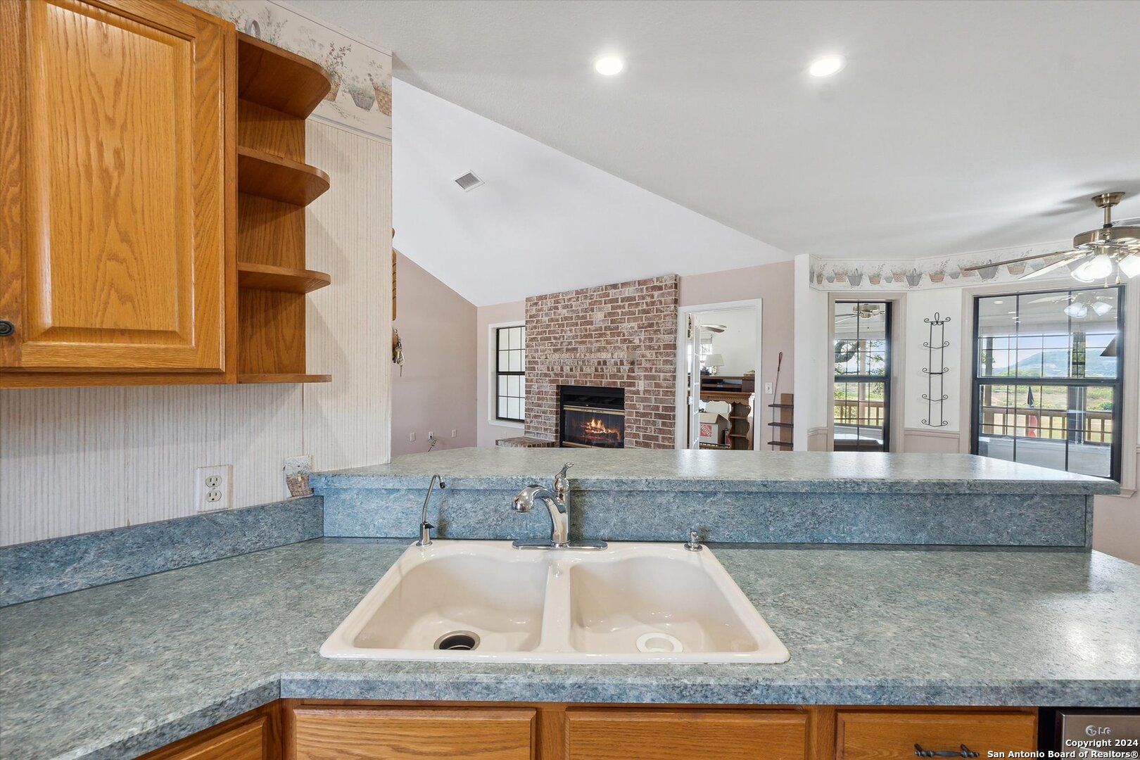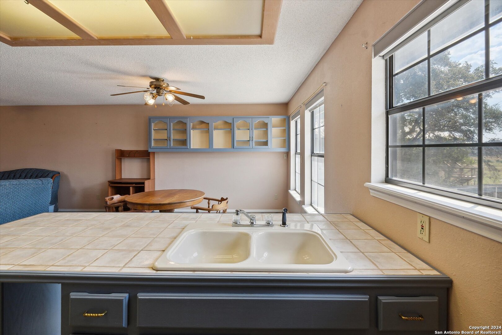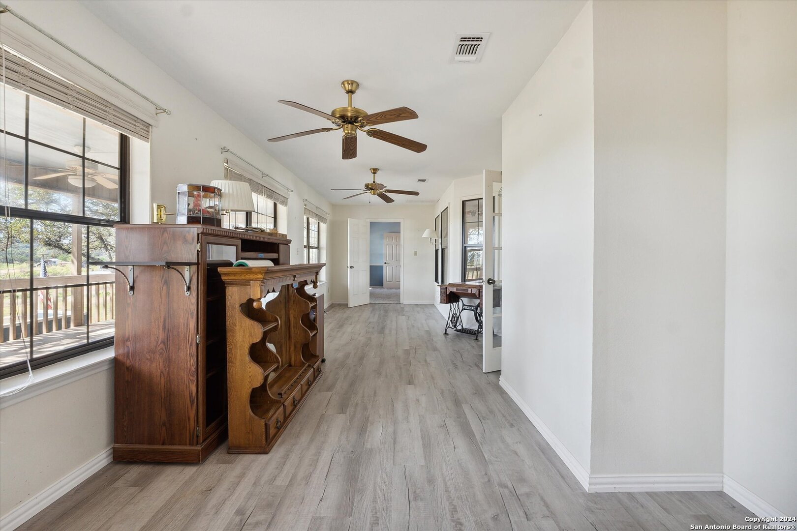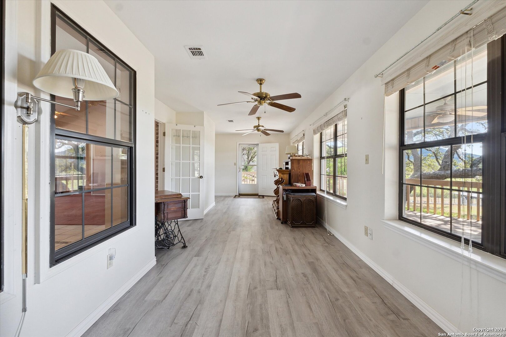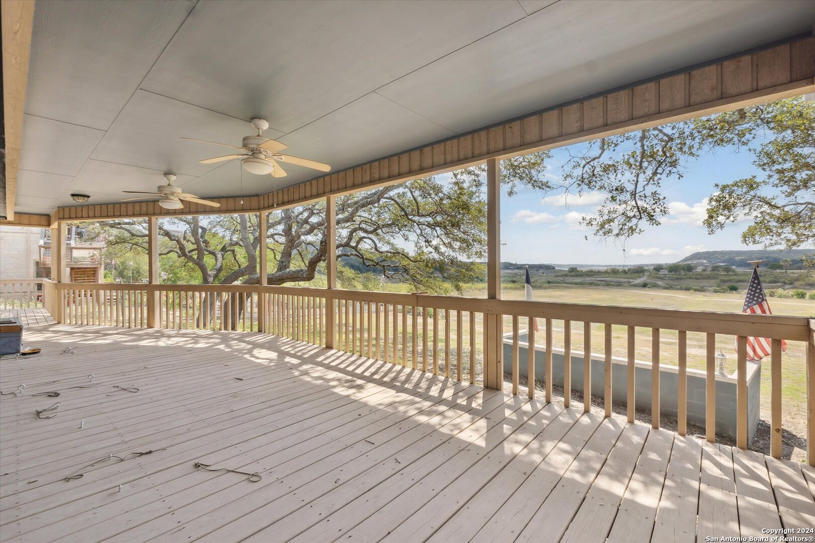Beautiful lakefront property with amazing Texas Hill Country views. 4-car tandem detached garage with a small attached storage garage. 1 bedroom, 1 bath garage apartment with an elevator and a newly renovated shower (2023).Dual/split A/C and heating units in the apartment (new in 2022). Generac full-house generator (new in 2021 or 2022), powered by propane. Main house: 2 bedrooms, 2 bathrooms. Newly renovated guest bathroom shower (2023). Main house features electric central heating and A/C unit 06/2022 Water softener and water purification system installed in the home. Separate washer and dryer units, along with a private toilet closet, located in the garage. Deep freezer and extra refrigerator located in the laundry room. Ductwork in the attic replaced a few years ago. New vinyl plank flooring installed in the lanai porch (2023). New carpet installed in the master bedroom (2024). Septic system with an anaerobic system. Water supplied by a well. Foundation repaired 5-7 years ago with a transferable lifetime warranty for the new owner. Stainless steel Samsung appliances in the kitchen. Square footage of the main house: 2,059 sq. ft. Garage: 1,800 sq. ft. total (1,000 sq. ft. apartment and 800 sq. ft. garage). Property appraisal as of January 1, 2024: $482,000.00. Large covered, attached outdoor deck.