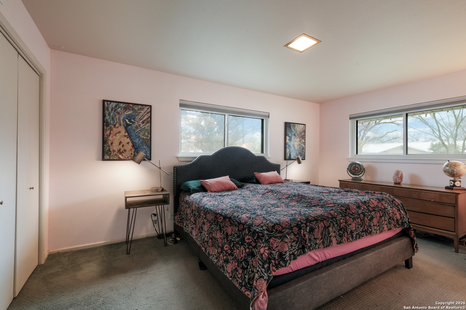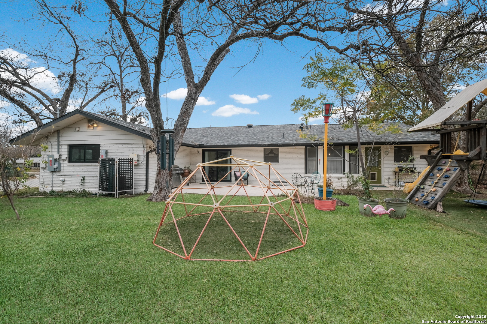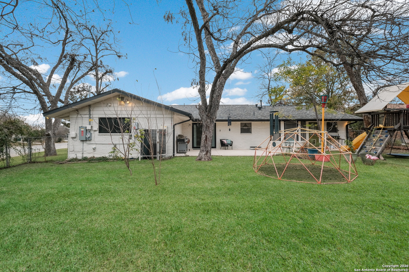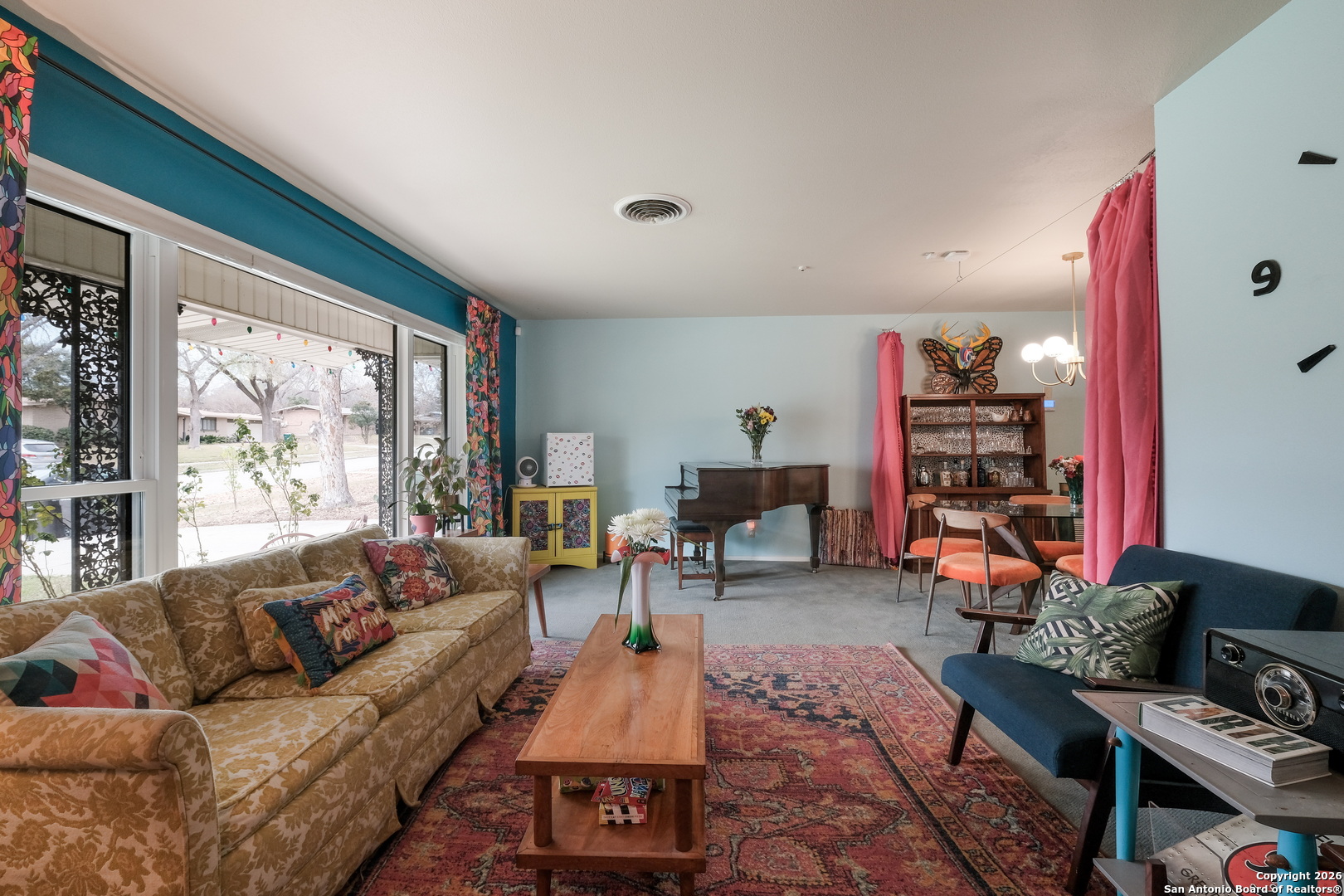 Welcome to this well-maintained 1960s home located in a highly desirable neighborhood. Picture-frame windows provide charming curb appeal, while the interior offers two separate living areas ideal for everyday living, working from home, or entertaining. Original cabinetry and select original flooring reflect the character of the era and offer a great opportunity for buyers who appreciate vintage style or wish to personalize over time. Bedrooms are spacious and inviting, and the backyard is perfect for gatherings or relaxing outdoors. Recent updates include front and bedroom windows and a sliding glass door installed by Window World with a lifetime warranty, along with a newer HVAC system and water heater. The long-term energy saving solar panels will be paid off at closing. Convenient access to Loop 410, North Star Mall, and Alamo Quarry Market.