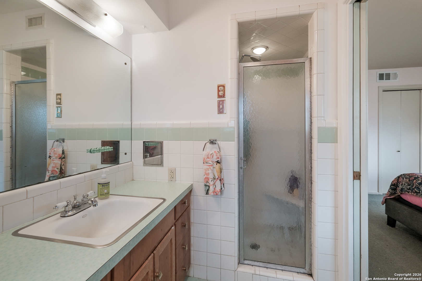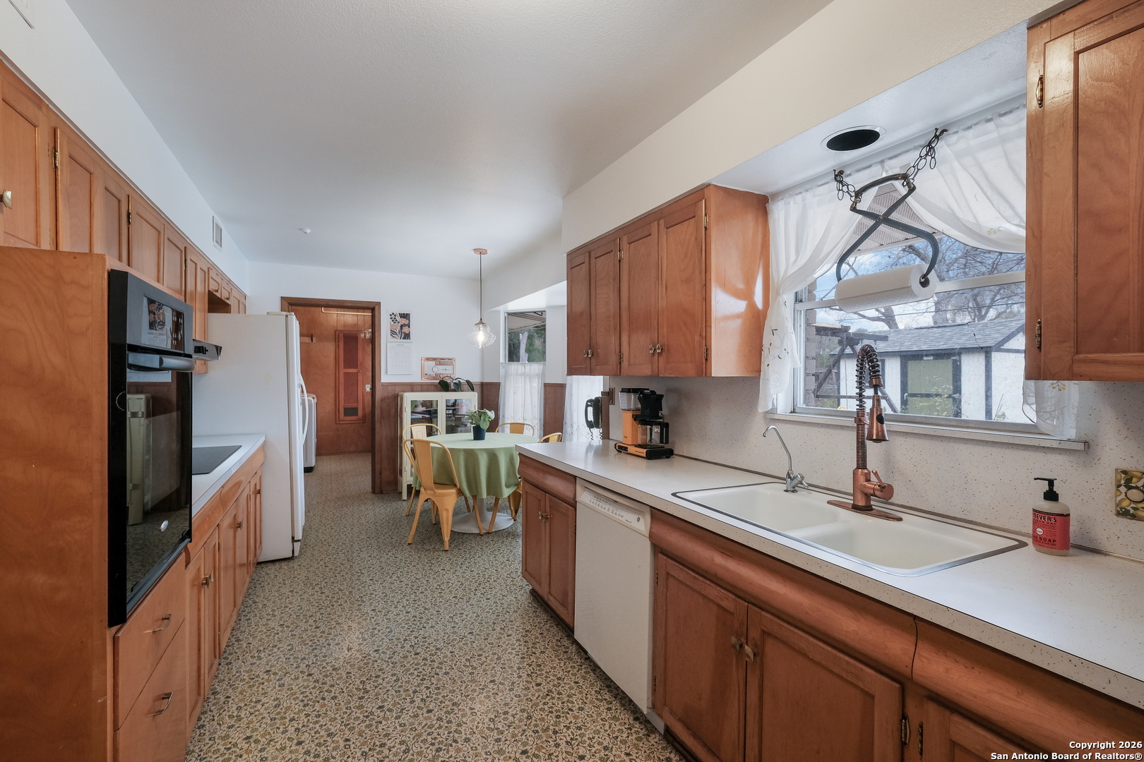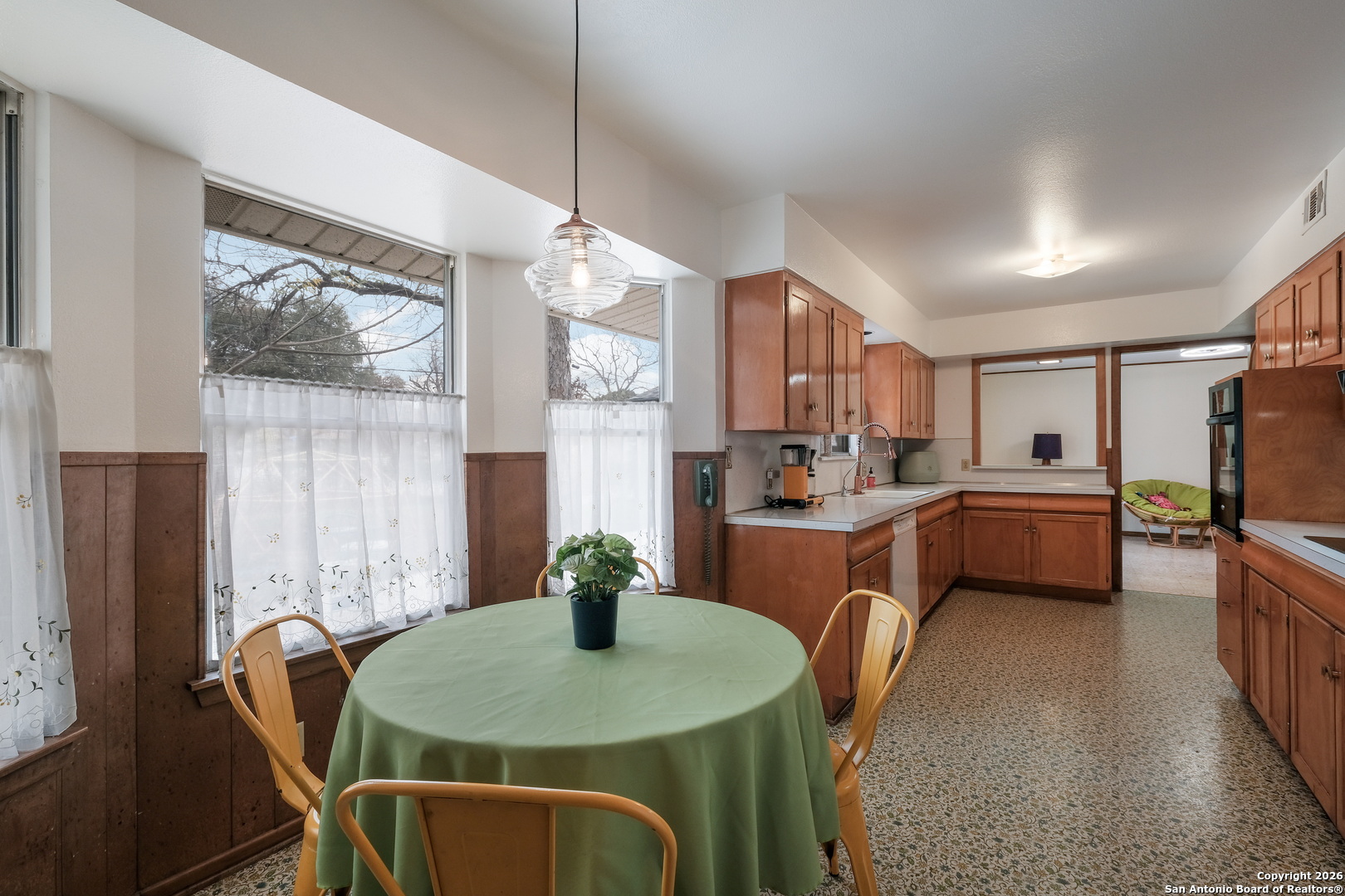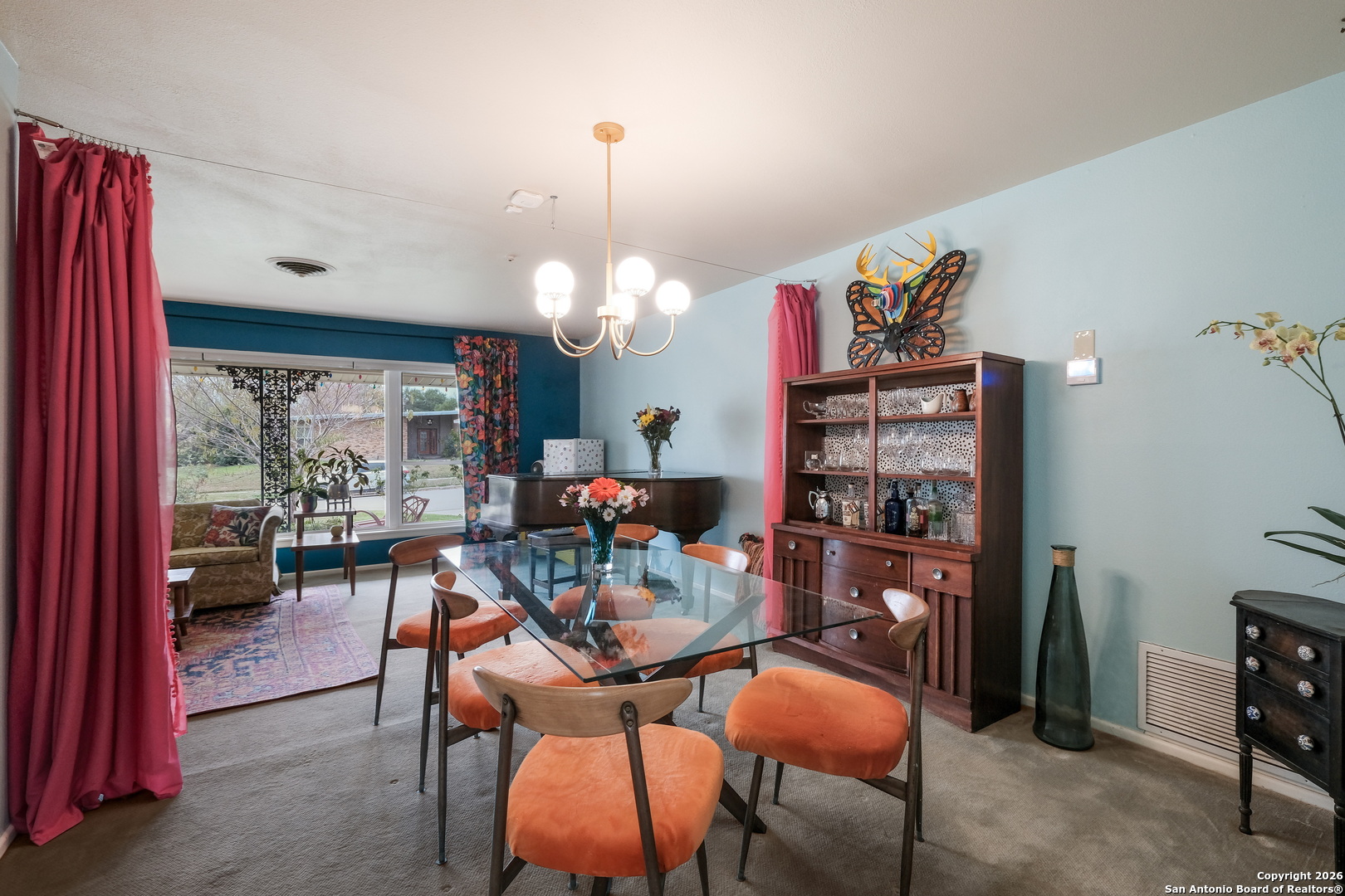 Welcome to this well-maintained 1960s home located in a highly desirable neighborhood. Picture-frame windows provide charming curb appeal, while the interior offers two separate living areas ideal for everyday living, working from home, or entertaining. Original cabinetry and select original flooring reflect the character of the era and offer a great opportunity for buyers who appreciate vintage style or wish to personalize over time. Bedrooms are spacious and inviting, and the backyard is perfect for gatherings or relaxing outdoors. Recent updates include front and bedroom windows and a sliding glass door installed by Window World with a lifetime warranty, along with a newer HVAC system and water heater. The long-term energy saving solar panels will be paid off at closing. Convenient access to Loop 410, North Star Mall, and Alamo Quarry Market.