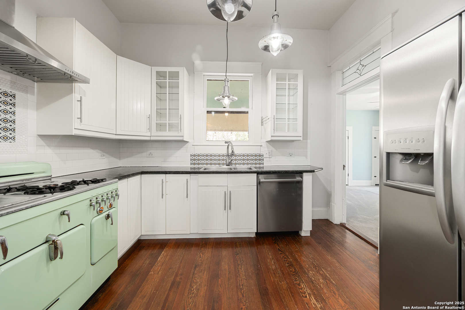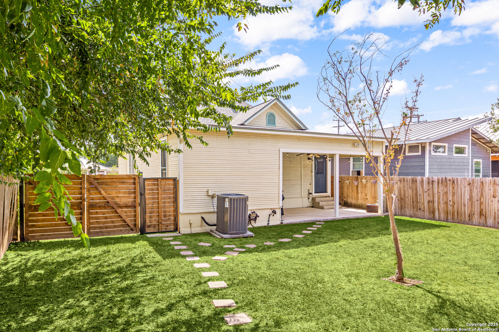Charming and full of character, this well-maintained 1930 home is located in the vibrant Southtown neighborhood-just minutes from Downtown, the Bluestar Arts Complex, and the San Antonio River Trail. Move-in ready and thoughtfully updated, this home blends vintage details with modern comfort. Inside, you'll find a warm and inviting layout featuring custom stained-glass accents, a 1950s vintage Chambers stove, and the original built-in dining cabinet that adds to the home's unique appeal. Prior renovations focused on functionality and efficiency, offering dual primary bedrooms, spacious bathrooms, and plenty of storage. The backyard provides a peaceful space to unwind with a covered patio, privacy fence, and a storage shed for added convenience. Recent updates include a new dishwasher and washer (2025), dryer (2024), Trane 16 SEER HVAC heat pump system (2021), three Renewal by Andersen double-pane windows, two ProVia steel insulated doors (2021), and a whole-house water softener (2021). Located near parks, schools, shopping, and major highways (I-10 and I-37), this home offers the best of comfort, charm, and convenience. Schedule your personal tour today!