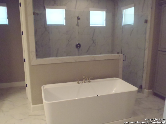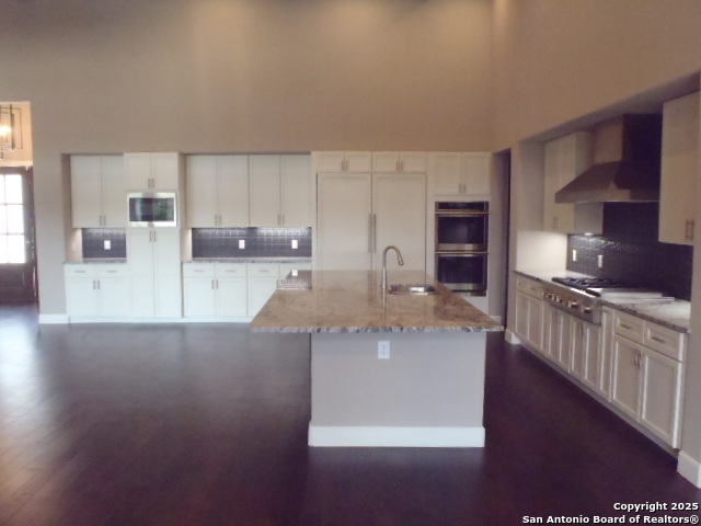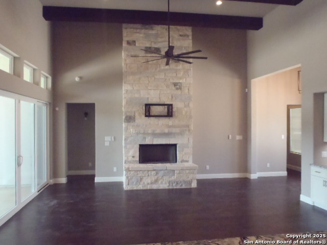 Step into timeless sophistication with this newly constructed estate by Weston Dean, nestled in the prestigious Vintage Oaks community. Spanning an impressive 4,098 square feet, this architectural masterpiece boasts five opulent bedrooms, five and a half spa-inspired bathrooms, dual executive home offices, and a grand game room complete with a bespoke wet bar-perfect for refined entertaining. From the moment you enter, you're greeted by soaring beamed ceilings and expansive sliding glass doors that unveil sweeping vistas of the Hill Country landscape. The open-concept living and dining spaces are anchored by a chef's dream kitchen, featuring top-tier appliances, a built-in refrigerator, and exquisite custom cabinetry that blends form and function with effortless grace. The primary suite is a sanctuary of indulgence, showcasing dual fireplaces-one in the bedroom and one in the adjacent lounge-vaulted beamed ceilings, and a lavish ensuite bath reminiscent of a five-star spa retreat. Each additional bedroom offers its own private ensuite, ensuring comfort and privacy for all. Designer finishes and architectural flourishes elevate every corner of this home, while the zeroscape landscaping offers beauty with minimal maintenance. Step outside to a serene backyard oasis, complete with a built-in BBQ and unobstructed views of a peaceful ranch-no rear neighbors, just tranquility. Residents enjoy exclusive access to resort-style features including shimmering pools, a meandering lazy river, sports courts, scenic walking trails, a grand clubhouse, and a state-of-the-art fitness center spanning over 6,000 square feet. This is more than a home-it's a lifestyle of luxury, privacy, and prestige. Your Hill Country haven awaits.
