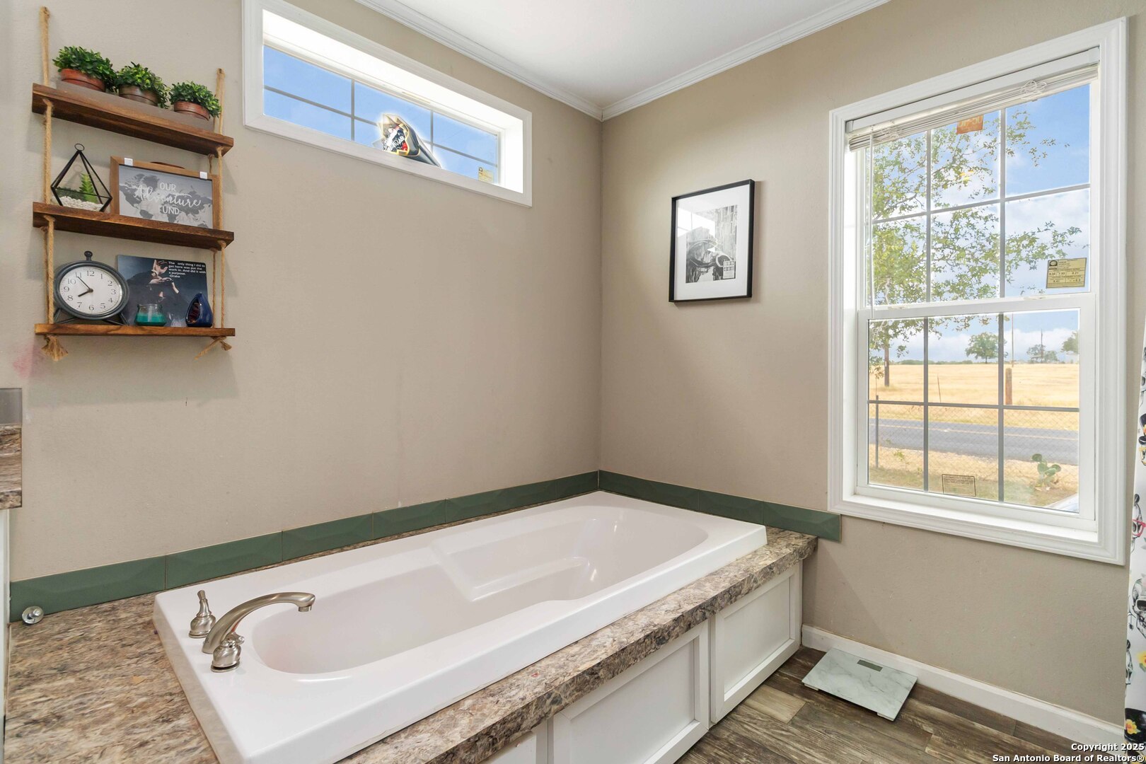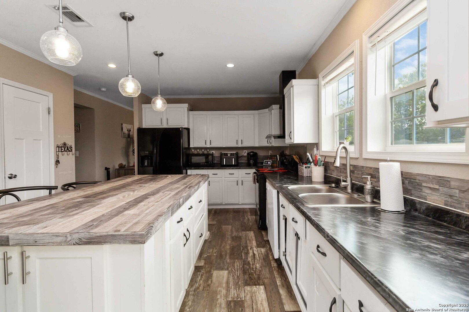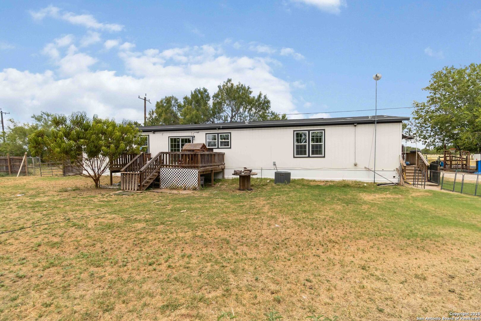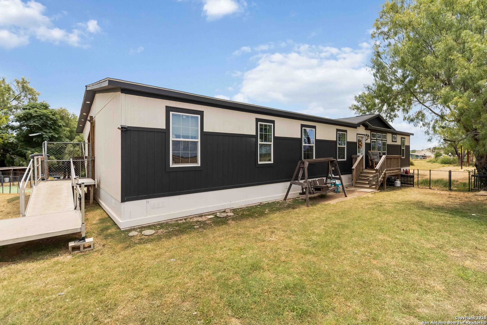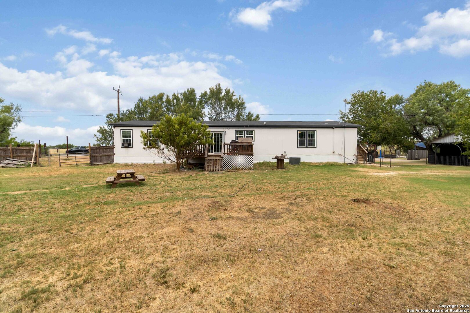 Country Charm Meets City Convenience in Lytle, TX. Experience the perfect balance of peaceful country living and easy city access in this beautifully maintained double-wide manufactured home, ideally situated in the charming Hill Country city of Lytle-just outside the city center and only 30 minutes from vibrant downtown San Antonio. With 2,128 square feet of thoughtfully designed space, this 4-bedroom, 2-bath residence offers comfort, style, and functionality. The open-concept layout is anchored by luxury laminate flooring throughout all living areas, creating a seamless flow between the two spacious living rooms, dining area, and a versatile study accented with charming barn doors. The heart of the home is the bright and welcoming kitchen, featuring a large center island for prep and casual dining, abundant crisp white cabinetry, and a complete black appliance package. The private primary retreat is a relaxing haven with a spa-like ensuite offering a soaking tub, separate shower, and dual vanities. Three additional bedrooms and a guest bath-designed for ADA compliance with a step-in tub-provide comfort and convenience for family and guests. Set on a generous half-acre lot, the fully fenced yard invites outdoor living with a storage shed, covered workshop, and plenty of space to spread out. Located in the desirable Southwest ISD area, this property offers the best of both worlds-tranquil country ambiance with quick access to shopping, dining, and commuter routes.