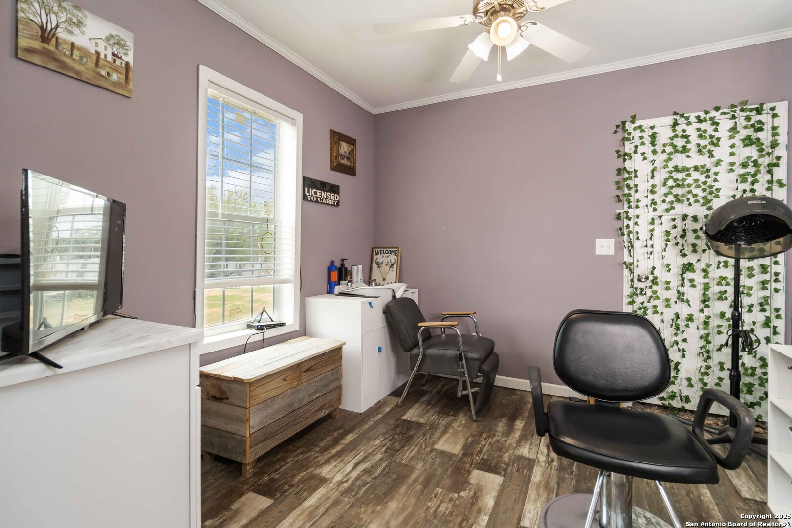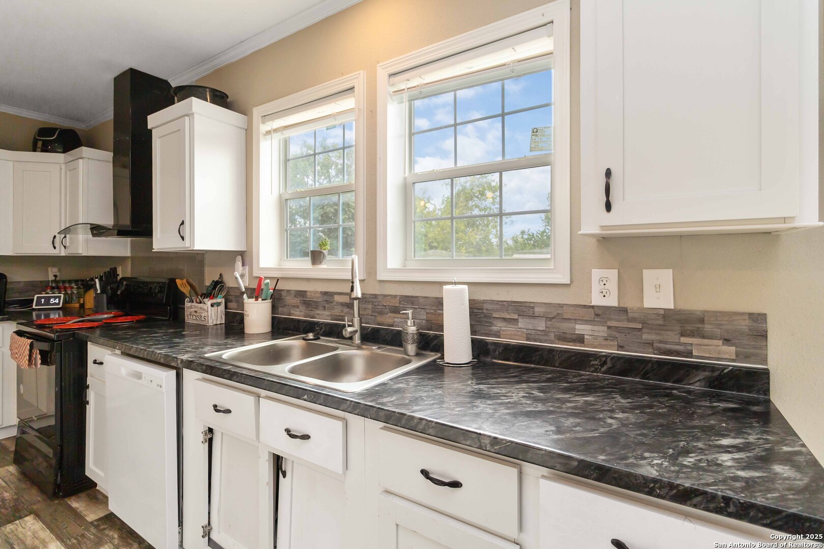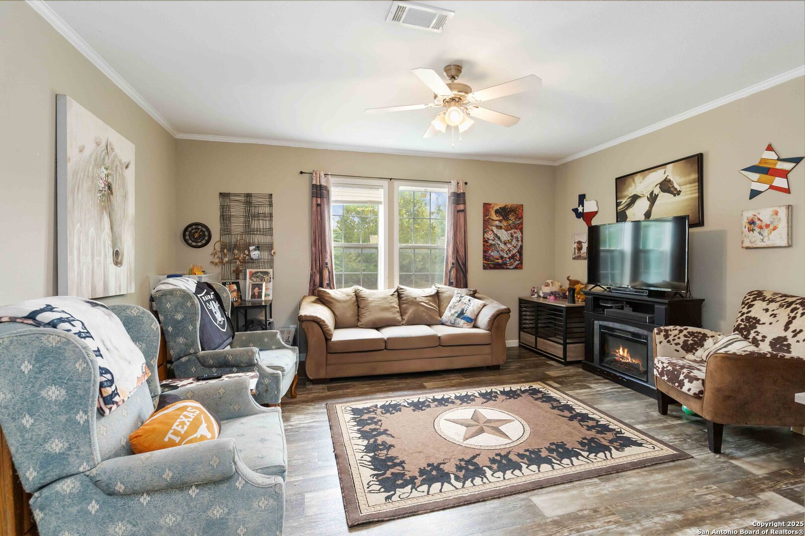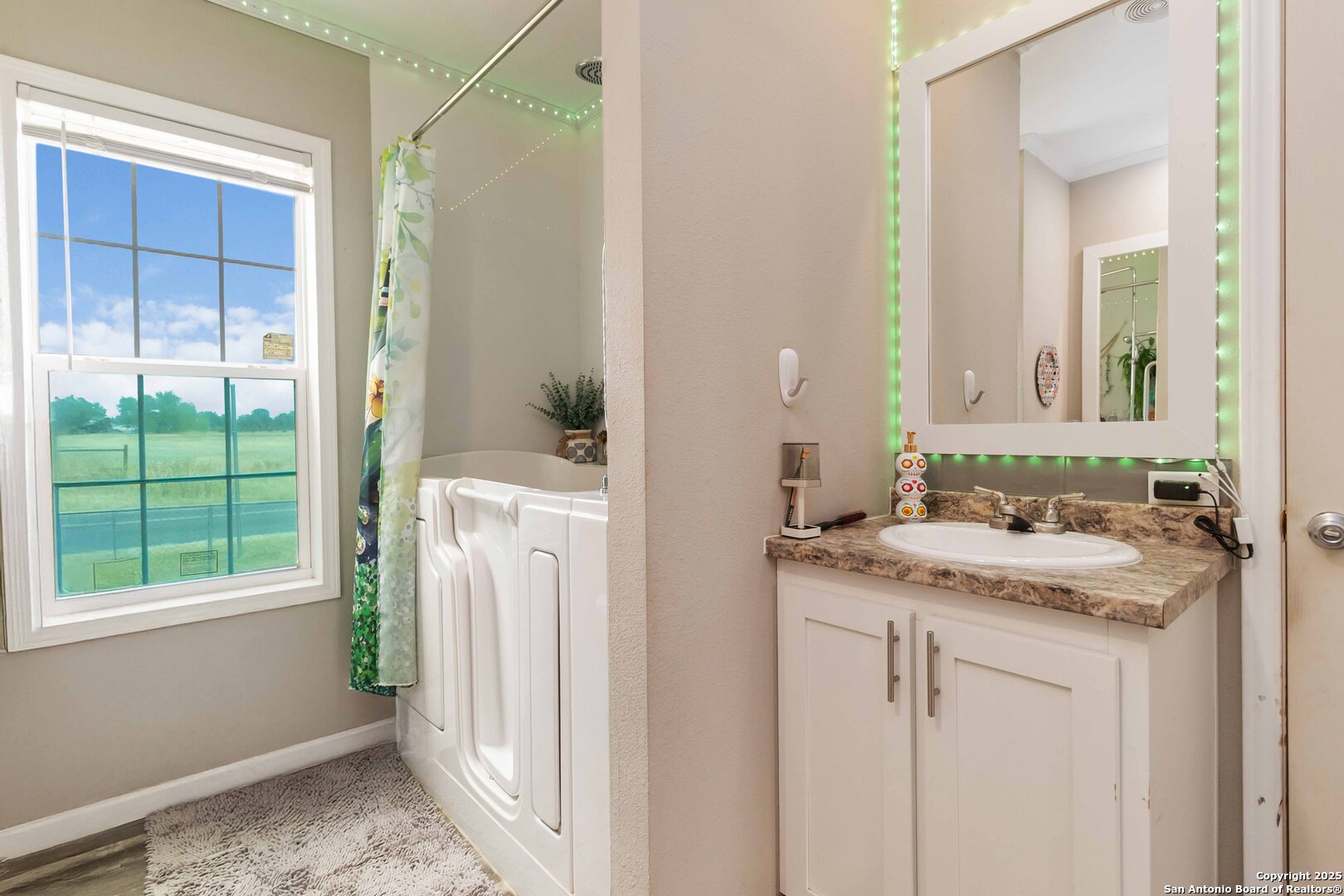 Country Charm Meets City Convenience in Lytle, TX. Experience the perfect balance of peaceful country living and easy city access in this beautifully maintained double-wide manufactured home, ideally situated in the charming Hill Country city of Lytle-just outside the city center and only 30 minutes from vibrant downtown San Antonio. With 2,128 square feet of thoughtfully designed space, this 4-bedroom, 2-bath residence offers comfort, style, and functionality. The open-concept layout is anchored by luxury laminate flooring throughout all living areas, creating a seamless flow between the two spacious living rooms, dining area, and a versatile study accented with charming barn doors. The heart of the home is the bright and welcoming kitchen, featuring a large center island for prep and casual dining, abundant crisp white cabinetry, and a complete black appliance package. The private primary retreat is a relaxing haven with a spa-like ensuite offering a soaking tub, separate shower, and dual vanities. Three additional bedrooms and a guest bath-designed for ADA compliance with a step-in tub-provide comfort and convenience for family and guests. Set on a generous half-acre lot, the fully fenced yard invites outdoor living with a storage shed, covered workshop, and plenty of space to spread out. Located in the desirable Southwest ISD area, this property offers the best of both worlds-tranquil country ambiance with quick access to shopping, dining, and commuter routes.