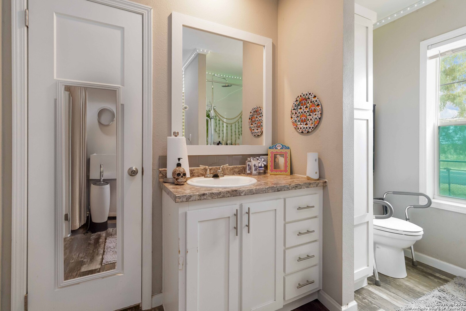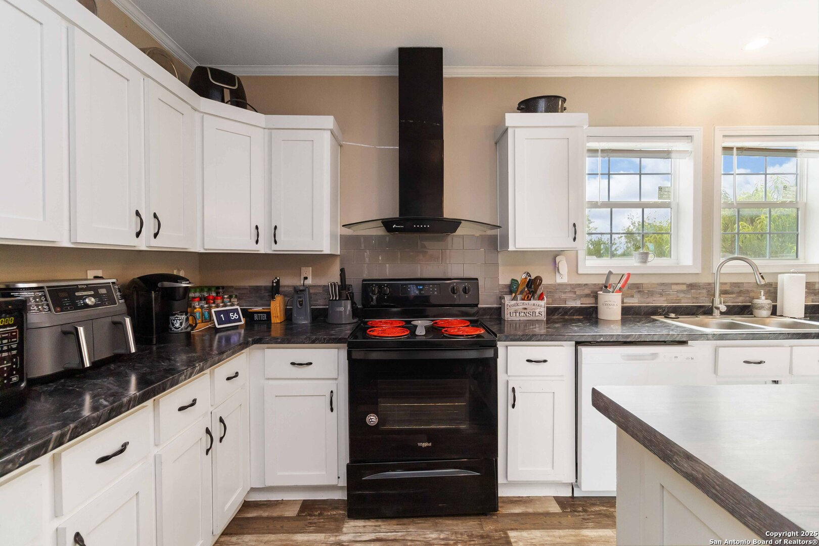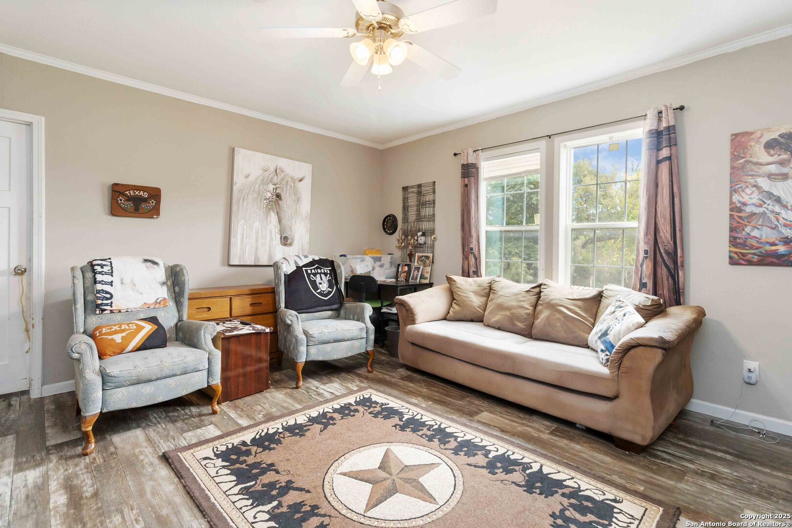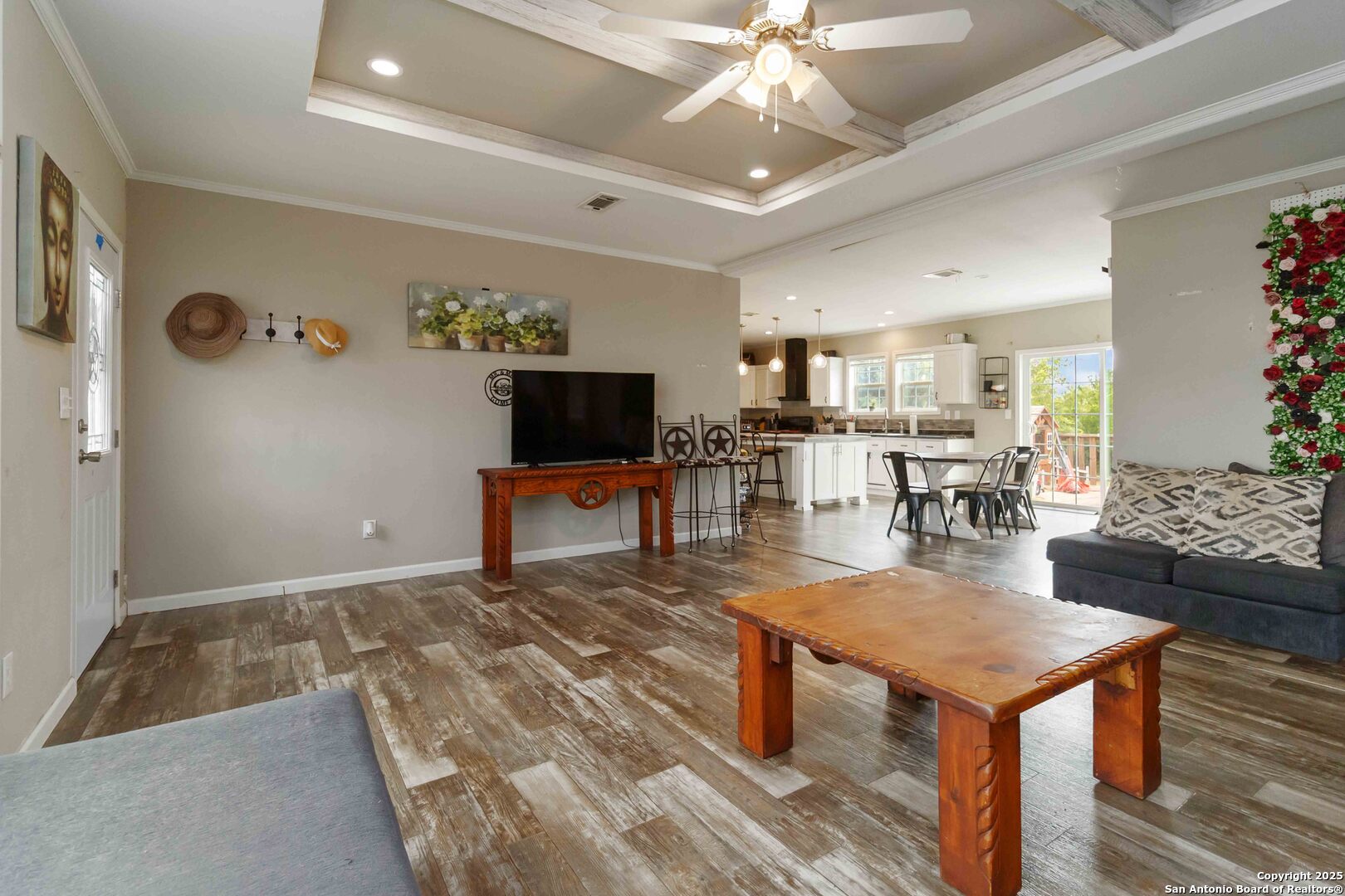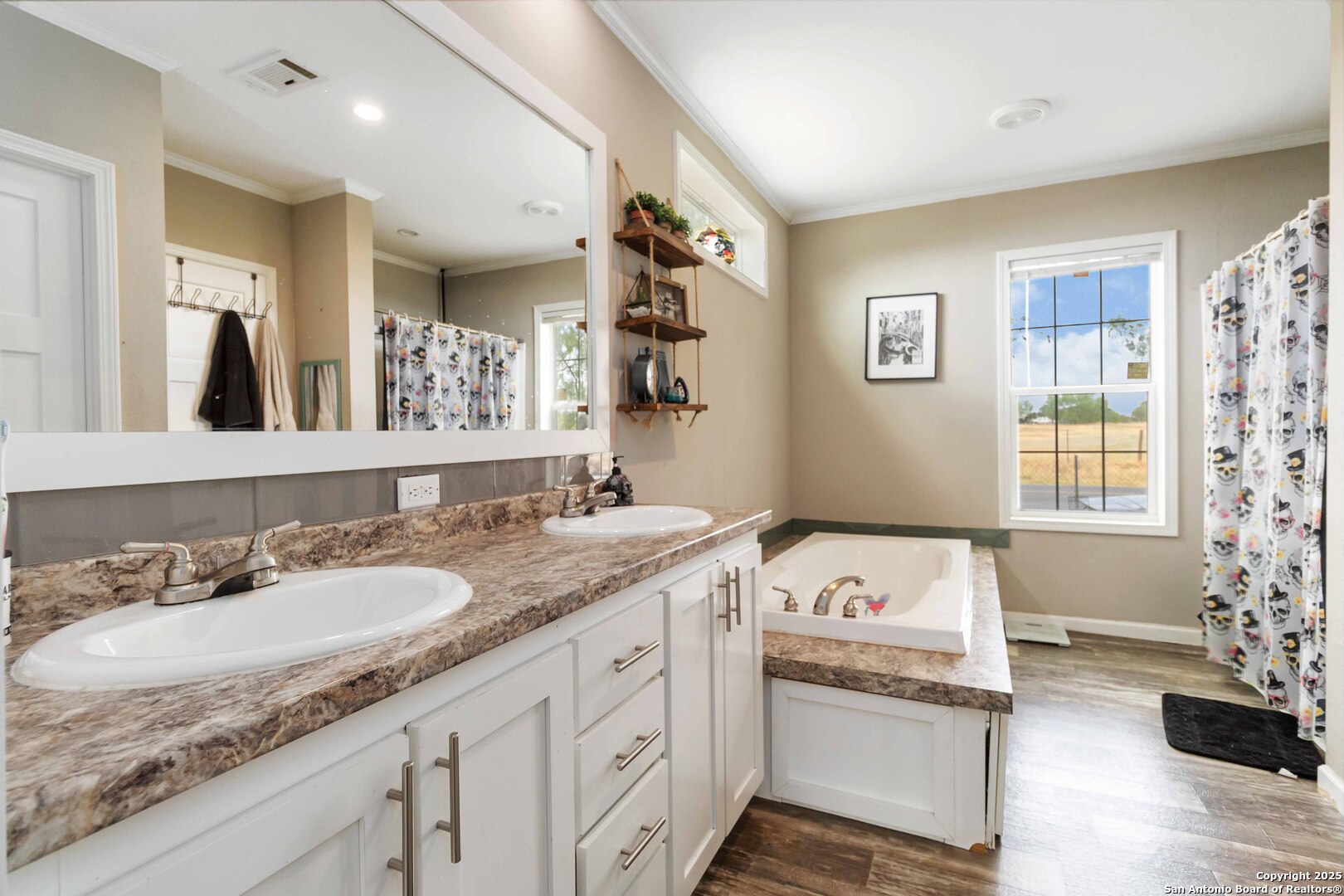 Country Charm Meets City Convenience in Lytle, TX. Experience the perfect balance of peaceful country living and easy city access in this beautifully maintained double-wide manufactured home, ideally situated in the charming Hill Country city of Lytle-just outside the city center and only 30 minutes from vibrant downtown San Antonio. With 2,128 square feet of thoughtfully designed space, this 4-bedroom, 2-bath residence offers comfort, style, and functionality. The open-concept layout is anchored by luxury laminate flooring throughout all living areas, creating a seamless flow between the two spacious living rooms, dining area, and a versatile study accented with charming barn doors. The heart of the home is the bright and welcoming kitchen, featuring a large center island for prep and casual dining, abundant crisp white cabinetry, and a complete black appliance package. The private primary retreat is a relaxing haven with a spa-like ensuite offering a soaking tub, separate shower, and dual vanities. Three additional bedrooms and a guest bath-designed for ADA compliance with a step-in tub-provide comfort and convenience for family and guests. Set on a generous half-acre lot, the fully fenced yard invites outdoor living with a storage shed, covered workshop, and plenty of space to spread out. Located in the desirable Southwest ISD area, this property offers the best of both worlds-tranquil country ambiance with quick access to shopping, dining, and commuter routes.
