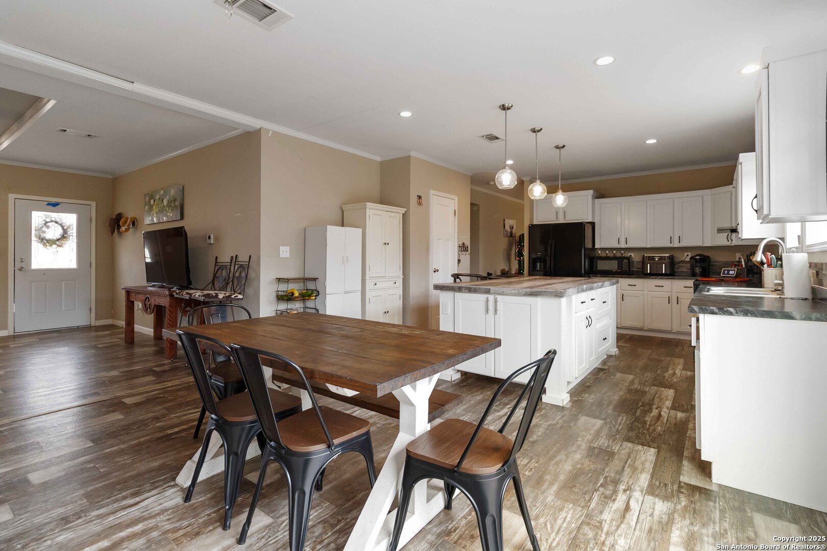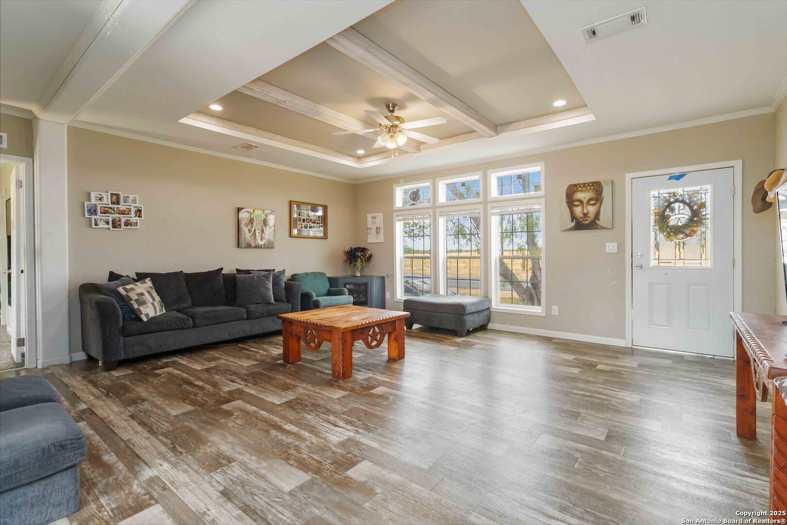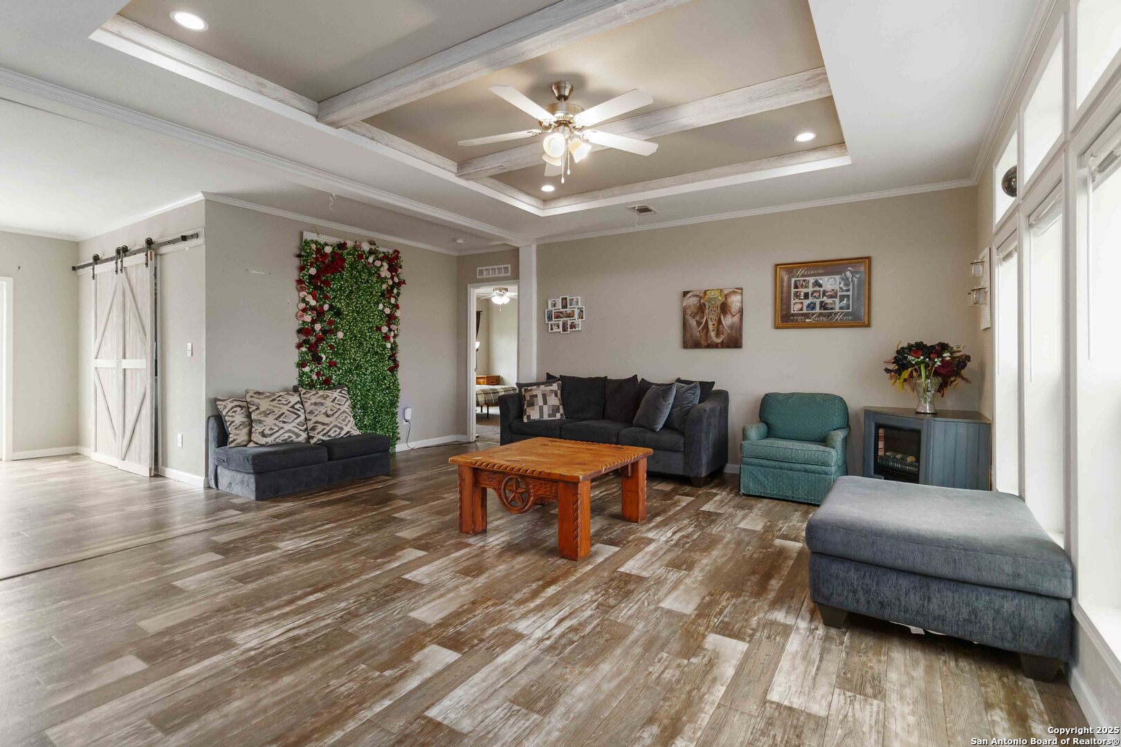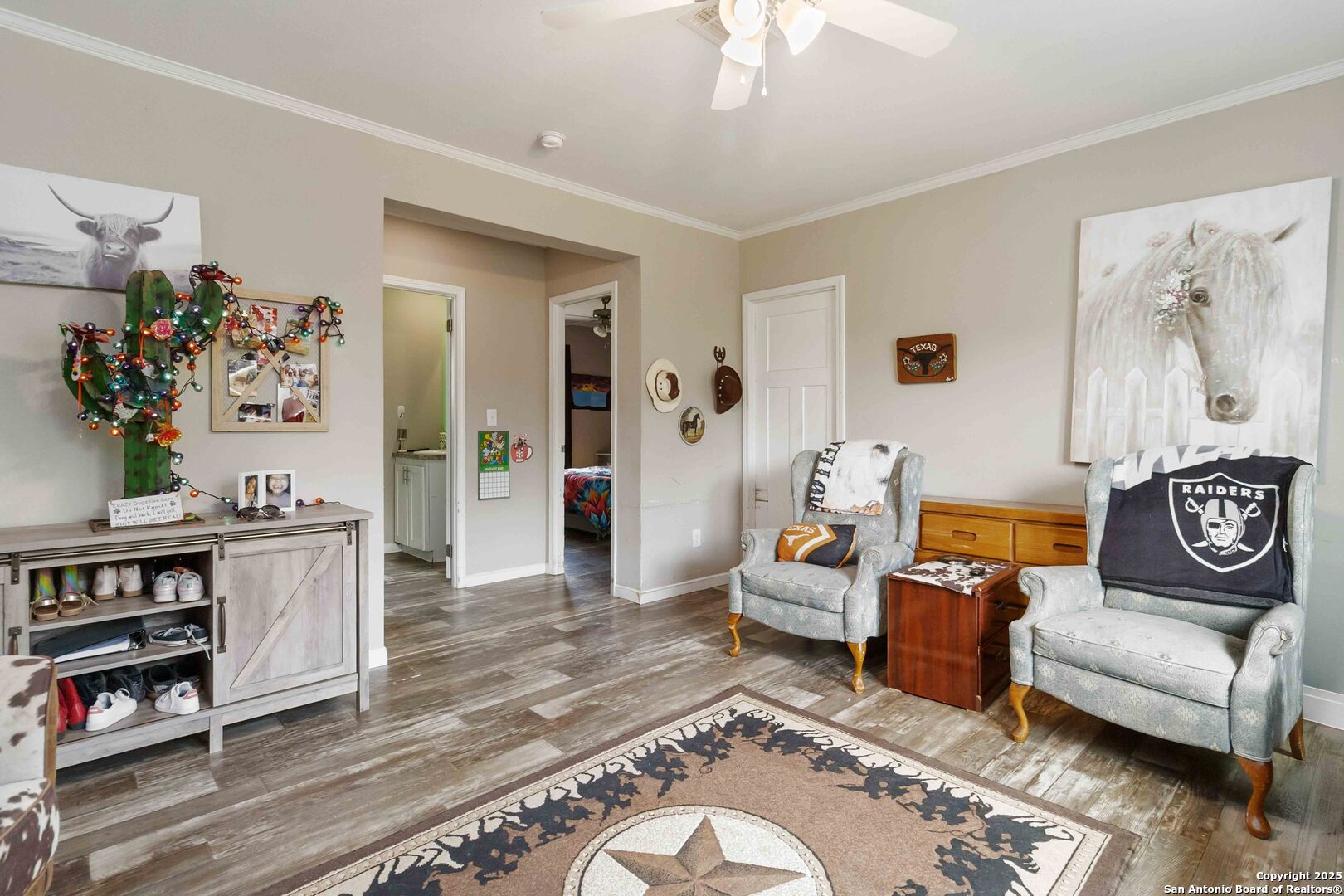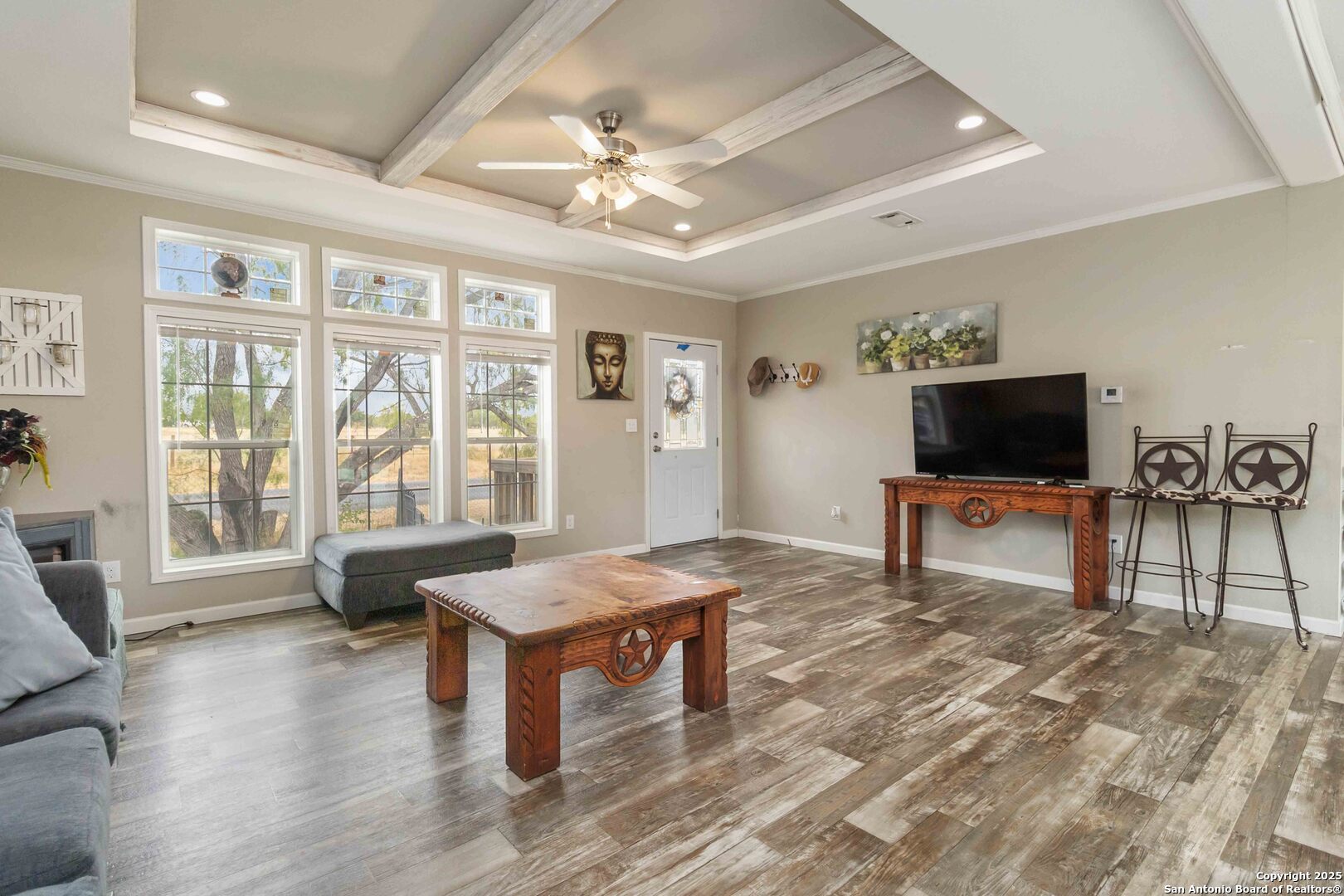 Country Charm Meets City Convenience in Lytle, TX. Experience the perfect balance of peaceful country living and easy city access in this beautifully maintained double-wide manufactured home, ideally situated in the charming Hill Country city of Lytle-just outside the city center and only 30 minutes from vibrant downtown San Antonio. With 2,128 square feet of thoughtfully designed space, this 4-bedroom, 2-bath residence offers comfort, style, and functionality. The open-concept layout is anchored by luxury laminate flooring throughout all living areas, creating a seamless flow between the two spacious living rooms, dining area, and a versatile study accented with charming barn doors. The heart of the home is the bright and welcoming kitchen, featuring a large center island for prep and casual dining, abundant crisp white cabinetry, and a complete black appliance package. The private primary retreat is a relaxing haven with a spa-like ensuite offering a soaking tub, separate shower, and dual vanities. Three additional bedrooms and a guest bath-designed for ADA compliance with a step-in tub-provide comfort and convenience for family and guests. Set on a generous half-acre lot, the fully fenced yard invites outdoor living with a storage shed, covered workshop, and plenty of space to spread out. Located in the desirable Southwest ISD area, this property offers the best of both worlds-tranquil country ambiance with quick access to shopping, dining, and commuter routes.