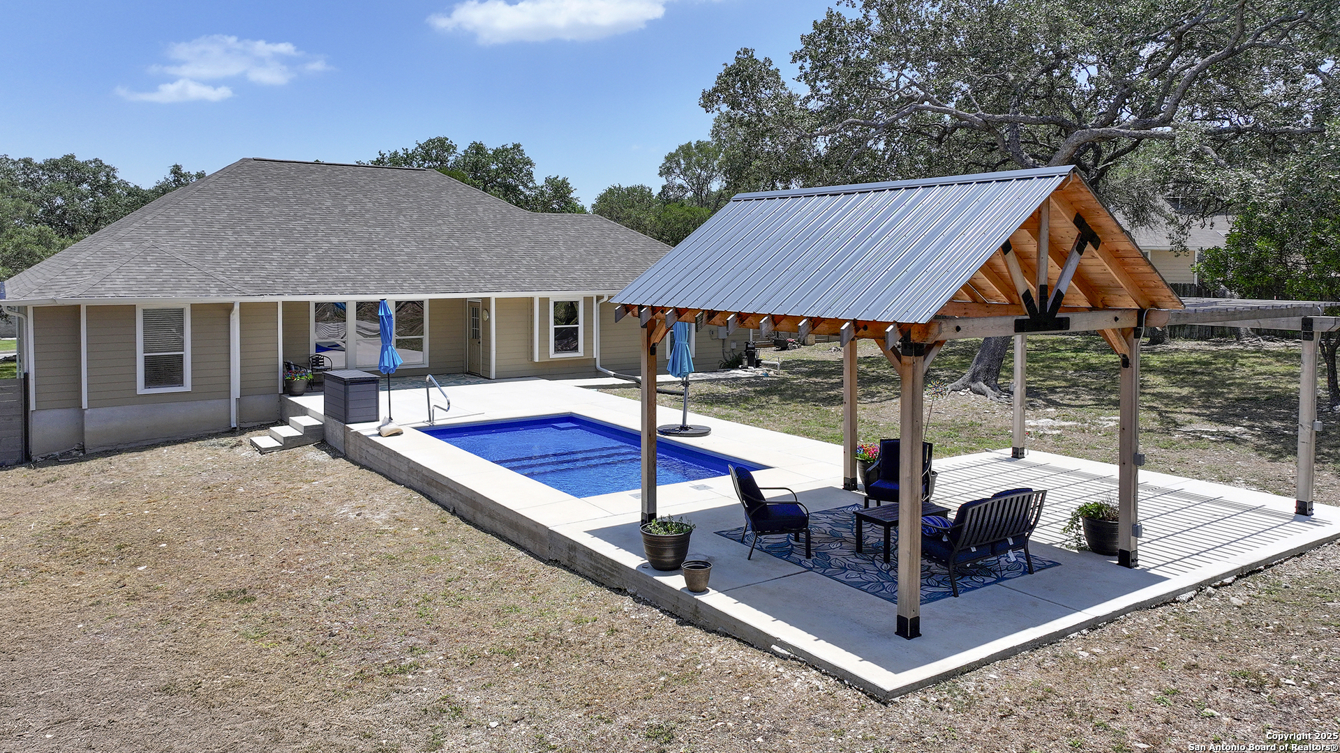 This beautiful property is a rare find! It is a large 1-story home (no interior steps) that features 3 bedrooms and 2 bathrooms, an office, formal dining area + eat-in kitchen, a large kitchen, a large back patio looking out onto a pool and cedar pergola, storage shed and RV parking on a .72 acre lot! All of this for under $500,000!! Roof replaced in 2024, Pool installed in 2023, and AC in 2020.