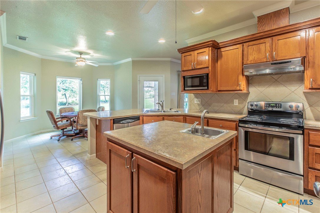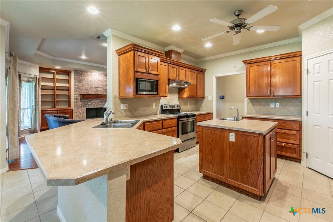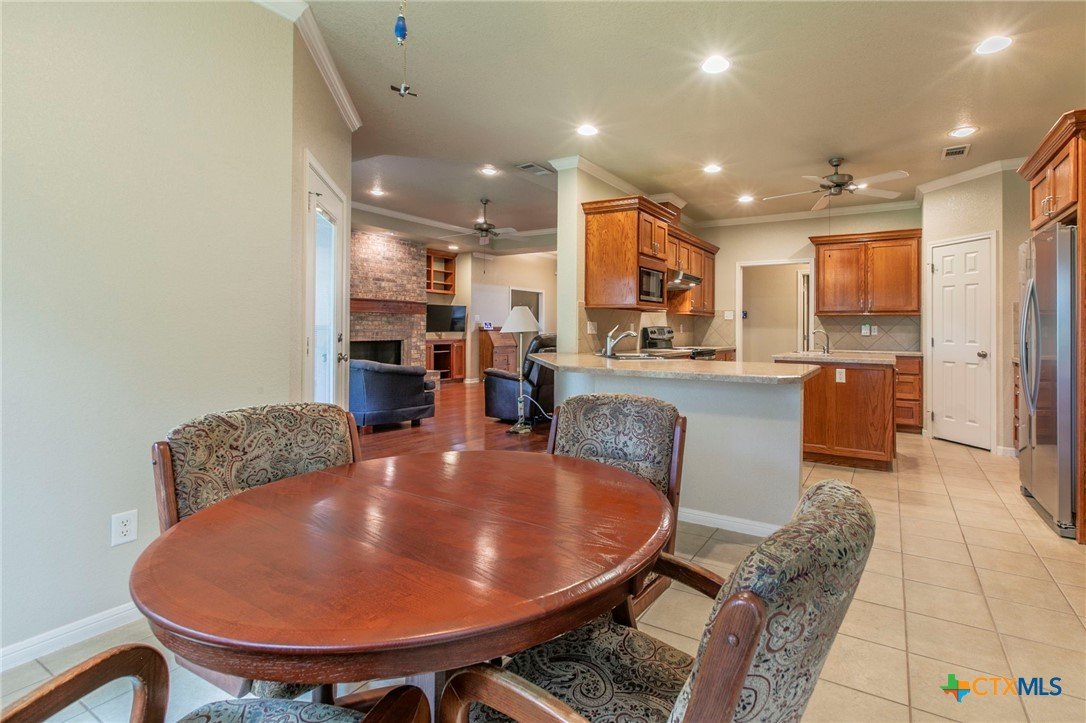 Beautifully maintained 4-bedroom, 2.5-bath home nestled on nearly half an acre in a quiet cul-de-sac with no HOA or city taxes—located in desirable Belton ISD. Offering just under 2,400 square feet, this home is surrounded by mature trees that provide shade and privacy. The spacious kitchen features custom cabinetry, an island with prep sink, and a bright breakfast area, along with a formal dining space perfect for gatherings. The living area boasts a cozy fireplace and a thoughtful split floor plan, ideal for both family time and personal space. The home includes a full two-car garage plus a third smaller bay—perfect for a workshop, storage, or outdoor toys. Located in a fantastic neighborhood just minutes from Lake Belton, with access to a public boat ramp.
