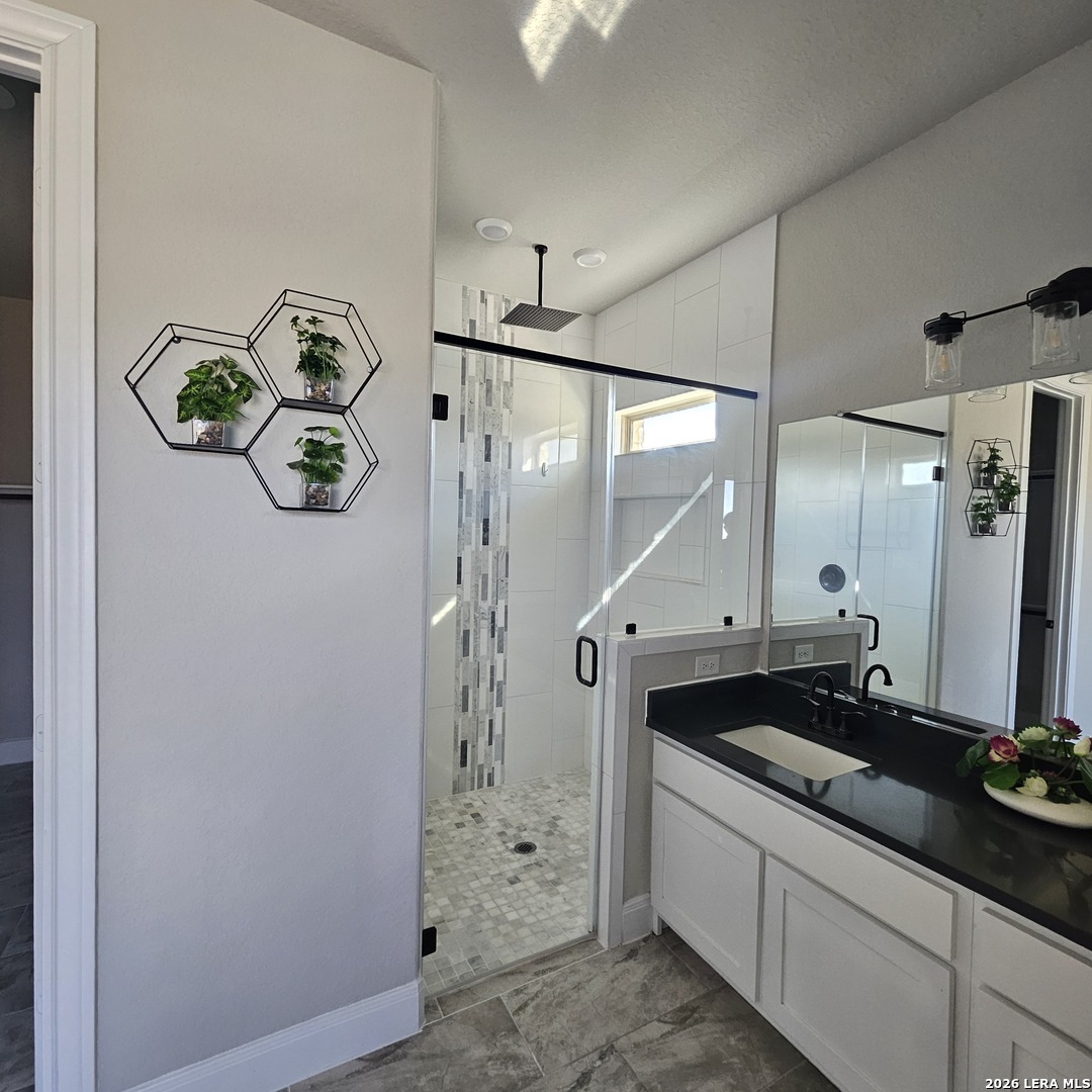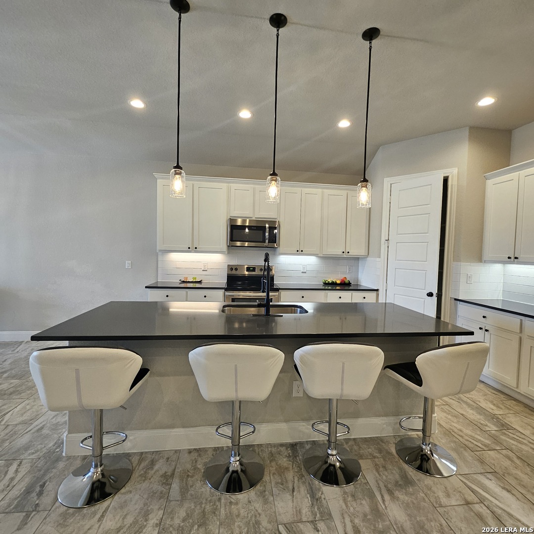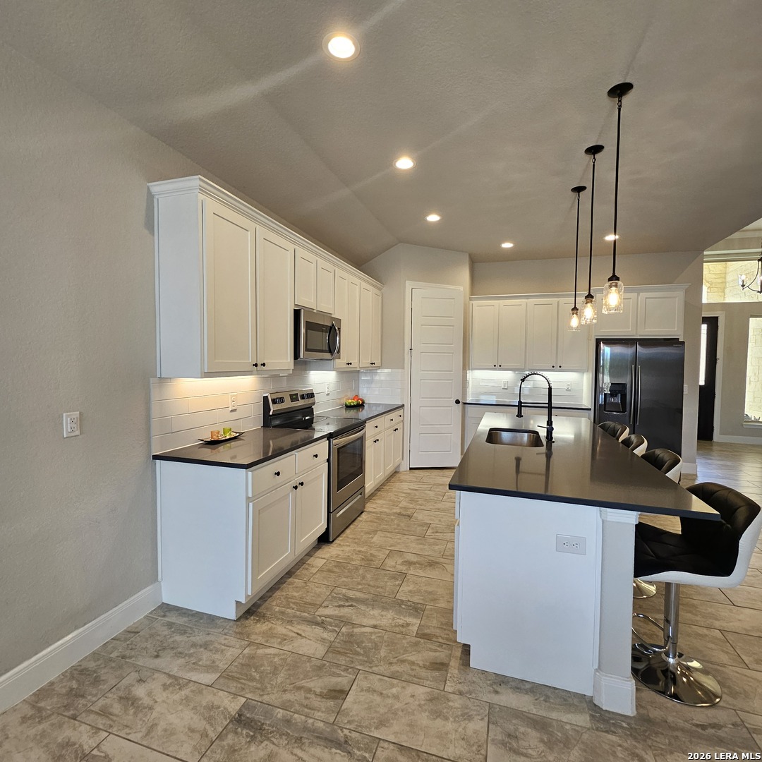 Beautiful country one story home open floor plan, high ceilings, solid countertops, included steel appliances and large walk-in closet with master suite gives you endless options in the Granberg a 0.75 acres and out door privacy fence all around the back yards. 18 mins from San Antonio downtown. Located in the desirable store that is close to HEB/Walmart and surrounded with many fast food dine-Ins. This home is in Move-In Ready condition and convenience, Luxury and enjoyment awaits!