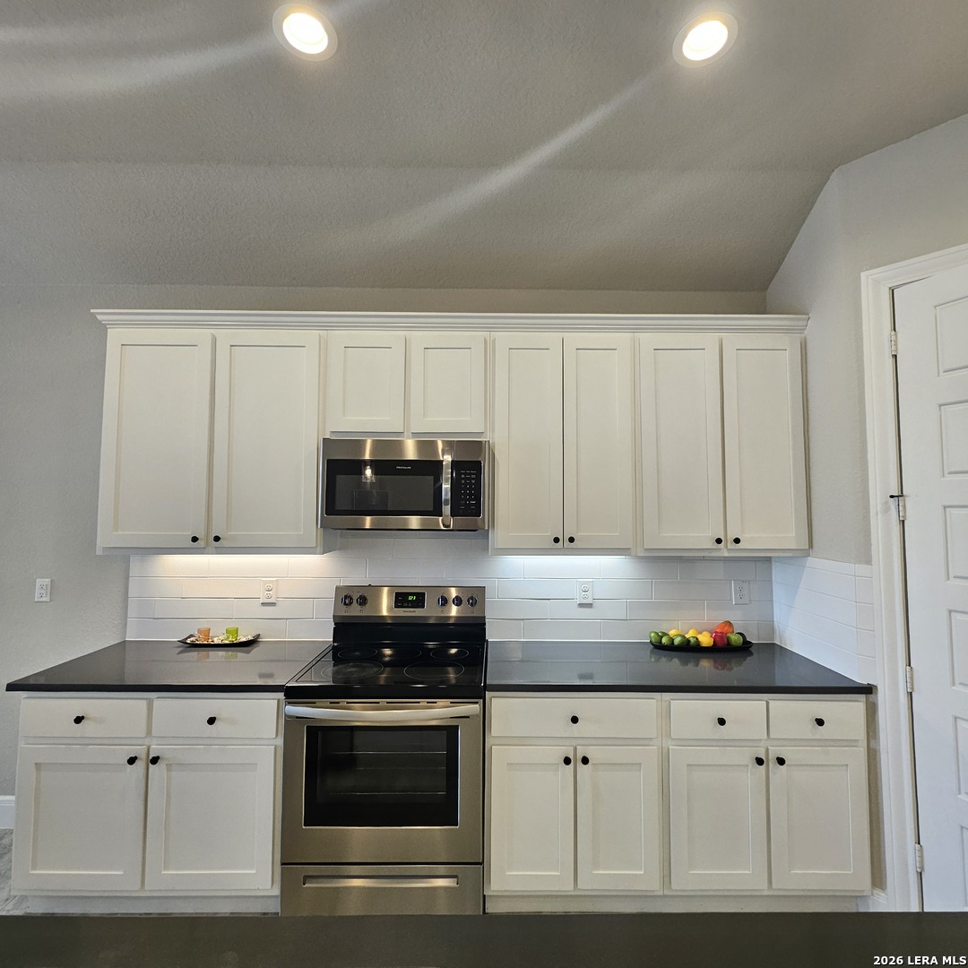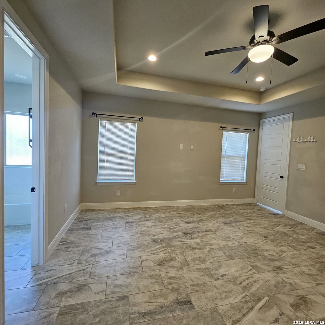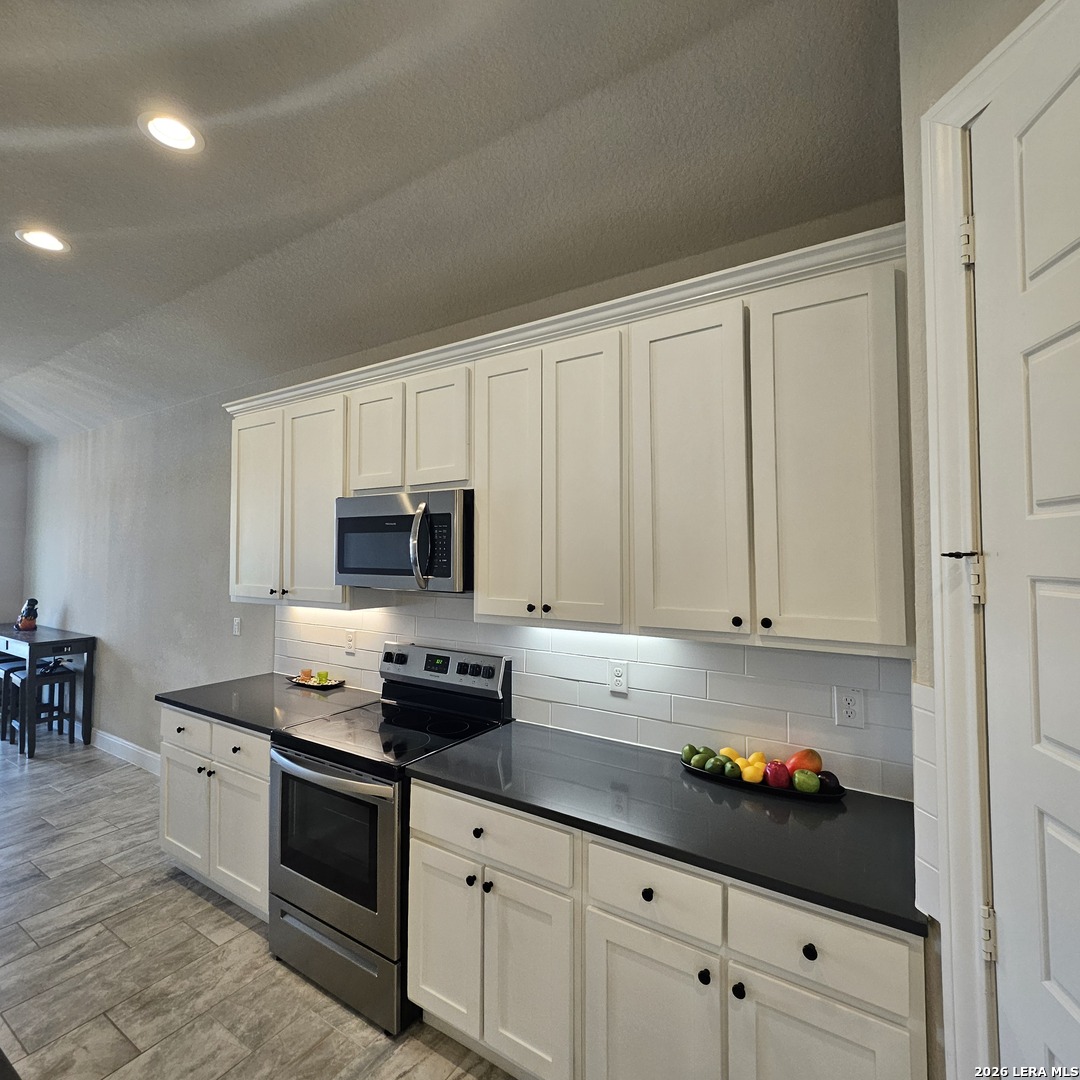 Beautiful country one story home open floor plan, high ceilings, solid countertops, included steel appliances and large walk-in closet with master suite gives you endless options in the Granberg a 0.75 acres and out door privacy fence all around the back yards. 18 mins from San Antonio downtown. Located in the desirable store that is close to HEB/Walmart and surrounded with many fast food dine-Ins. This home is in Move-In Ready condition and convenience, Luxury and enjoyment awaits!