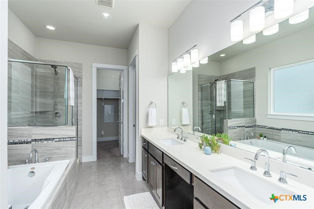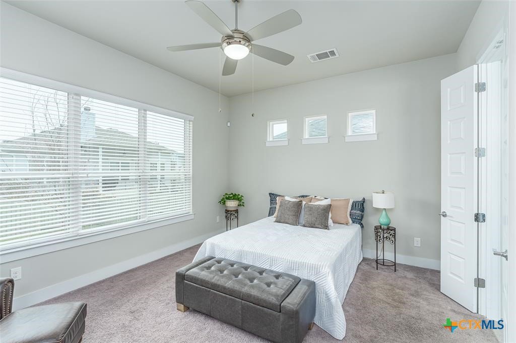 SIGNIFICANT PRICE IMPROVEMENT!!! Modern One-Story Home in Gated Edgewater Community. Welcome to Edgewater, a small, private gated community offering low-maintenance living in one of the most convenient and fast-growing areas of Williamson County, Texas. This 100% masonry, one-story modern home sits on one of the largest HOA-maintained lots and backs to a lush greenbelt along Spanish Creek, offering space to roam, fish, hike, bike, and enjoy the outdoors with pets. The walkable location places you minutes from Starbucks, restaurants, bars, shopping, and daily services, with easy access to I-35, FM 1431, and 183A. Ideally positioned between New Hope Drive and Whitestone Boulevard, the home is surrounded by major amenities including Perfect Game Sports Complex, the new CedarView 117-acre mixed-use development with Scheels, Marriott and NFM, Brushy Creek Parks, and Williamson County Park. Designed for modern living, this single-story open-concept home features lofty ceilings, abundant natural light, and seamless indoor-outdoor flow. The chef’s kitchen offers tall cabinetry, a large center island with counter-height seating, walk-in pantry, and premium finishes. The dining area is wrapped in windows, while the living room features a gas fireplace, custom built-ins, floor plug, and sliding glass doors opening to a large screened-in patio—ideal for entertaining. The primary suite features clerestory windows, a spa-style bath with soaking tub and walk-in shower, and a large walk-in closet. Secondary bedrooms are secluded, and tasteful upgrades elevate the home throughout. Extensive builder upgrades include enhanced cabinetry, fireplace, added storage, and a tankless water heater. Washer, dryer, refrigerator, and freezer convey. A rare opportunity to own a modern, low-maintenance home near Brushy Creek with exceptional access to parks, trails, dining, and future development. Immediate approval on showing requests.