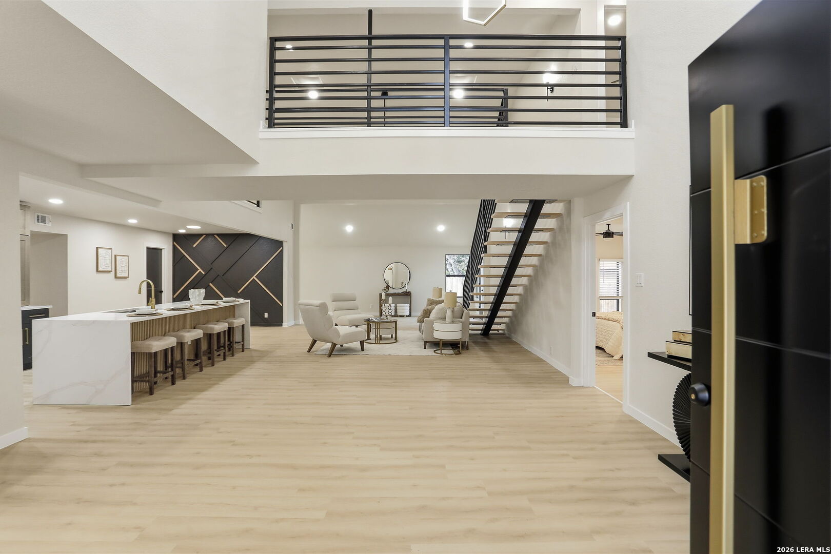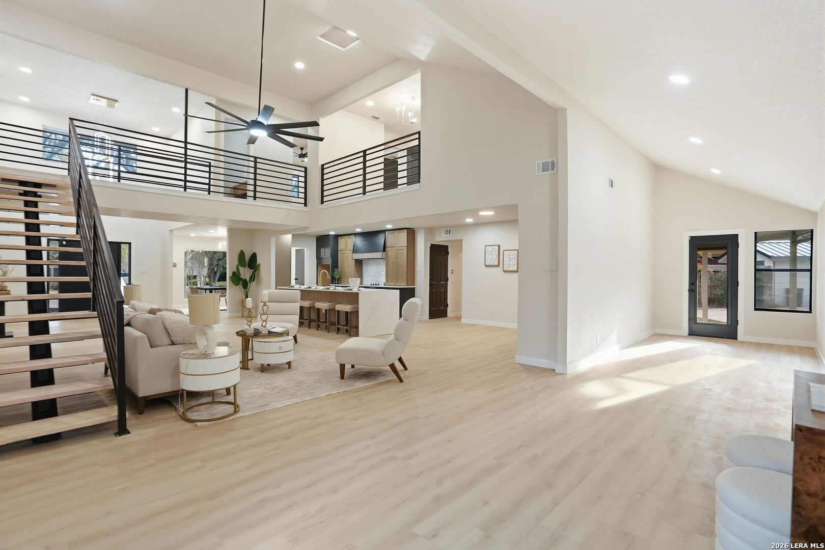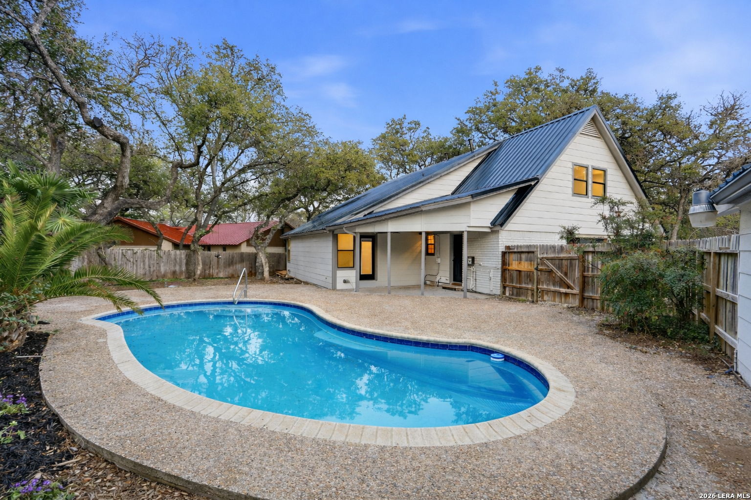 Welcome to 13707 Bluffmont, an exceptional blend of modern updates and thoughtful design in the highly desirable Bluffview of Camino Real community. This beautifully reimagined home features stunning curb appeal with a brand-new metal roof and all-new windows throughout, setting the tone for quality and durability. Inside, an open-concept floorplan flows effortlessly, anchored by elegant quartz countertops and a striking floating metal staircase that adds architectural flair to everyday living. With spacious living areas designed for both relaxation and entertaining, this home offers versatility for today's lifestyle. Natural light pours in through the expansive windows, creating an inviting atmosphere in every room. Step outside to your private backyard retreat - a sparkling inground pool and cabana await, perfect for summer gatherings or quiet evenings under the stars. The privacy-fenced yard creates a serene oasis while offering space for play and outdoor enjoyment. Located on a quiet cul-de-sac, this residence enjoys access to community amenities including tennis courts, playgrounds, and sports courts, ideal for active families and social lifestyles. Residents also benefit from proximity to green spaces like Phil Hardberger Park, offering miles of trails, dog parks, and picnic areas just minutes away. It isn't just a home, it's a lifestyle. Experience the best of in-town living with thoughtful renovations, outdoor luxury, and neighborhood amenities that truly elevate everyday life.