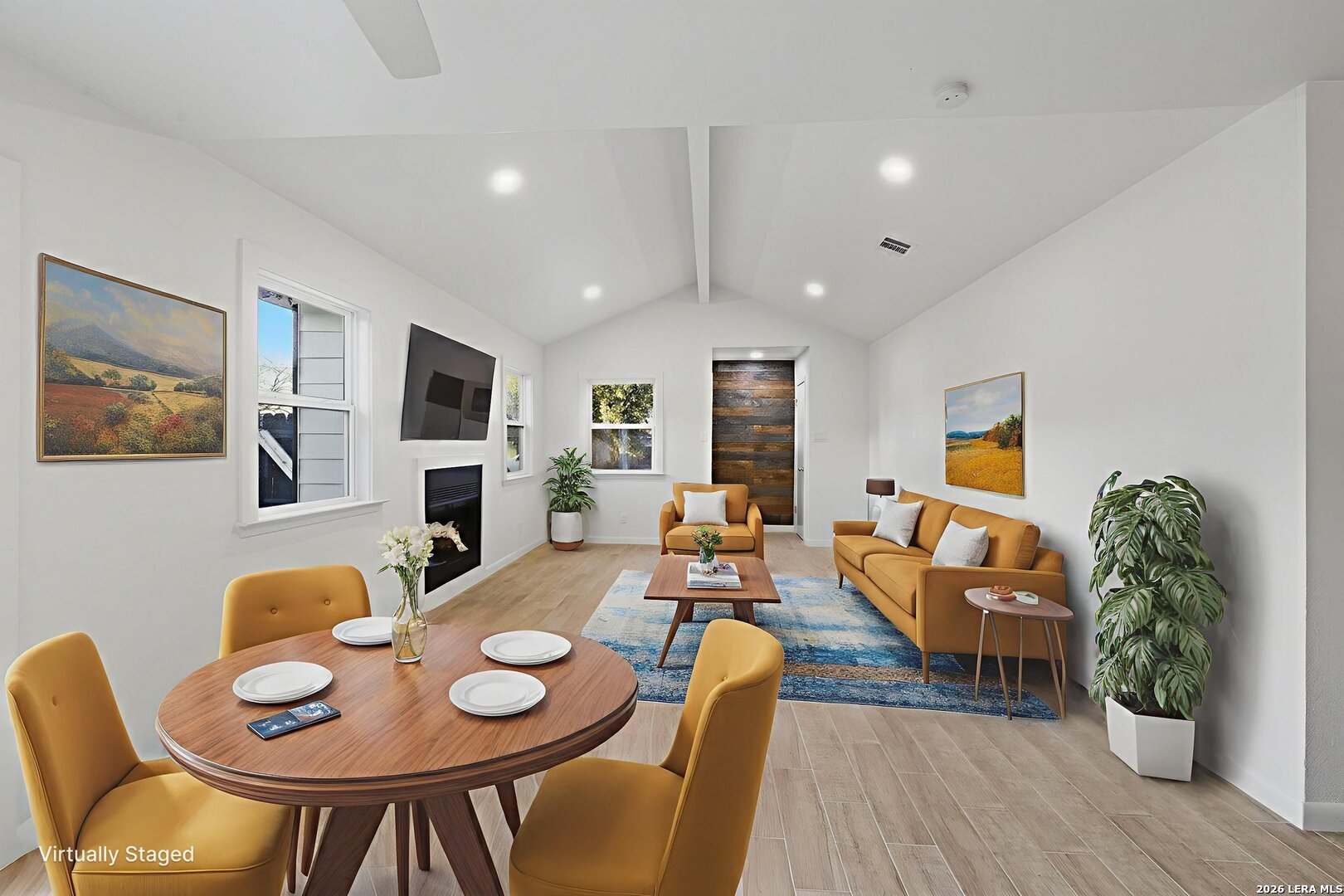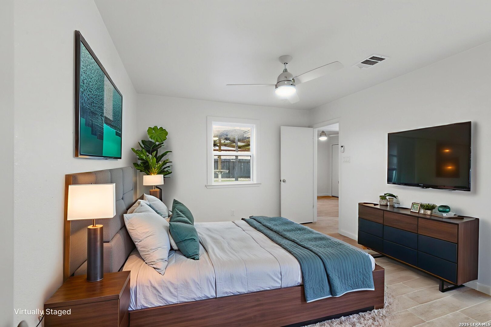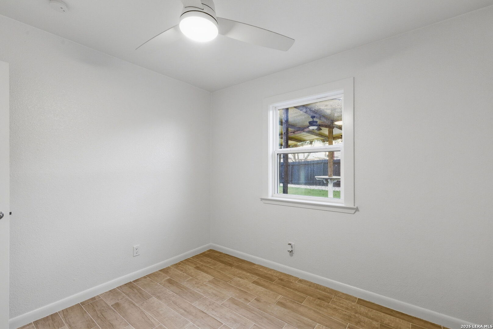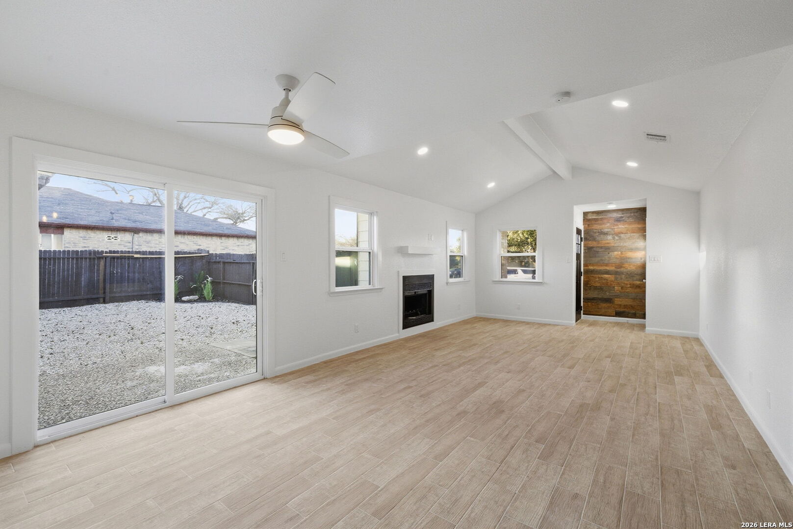 Welcome to 13734 Evanswoods in San Antonio! This fully remodeled, turn-key gem offers a sleek, modern feel throughout and is completely move-in ready. The designer kitchen is a true showstopper, featuring custom white cabinetry, elegant black countertops, a stylish subway tile backsplash, and striking pendant lighting suspended from a custom wood beam, along with brand-new stainless steel oven range and refrigerator. The bathrooms have been beautifully updated with new cabinets and classic white subway tile, creating a clean, modern look that perfectly complements the home's style. Enjoy cozy evenings in the city by the inviting fireplace, adding warmth and charm to the living space. The home offers plenty of storage, including a coat closet in the foyer, plus a convenient laundry closet ready for your washer and dryer. Step outside to a true backyard retreat, designed for year-round enjoyment. This beautifully xeriscaped, low-maintenance oasis features an expansive covered gazebo-style patio with ceiling fans, perfect for outdoor dining, entertaining, or relaxing in the shade. The fully wood fenced yard offers privacy, functionality, and plenty of space to gather with family and friends. Walking distance to Woodstone Elementary School and conveniently located near popular restaurants, shopping, and scenic nature trails. This neighborhood has so much to offer-don't miss this exceptional opportunity. A true GEM, send your offers!