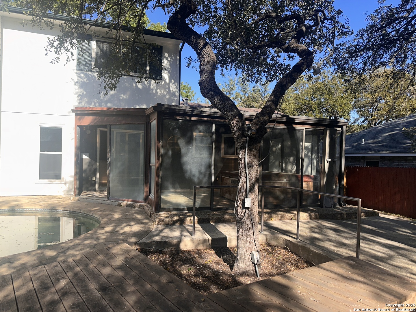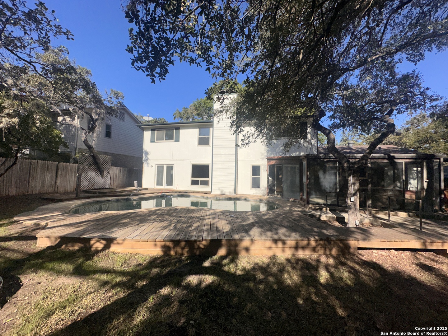 A fantastic home with 2 living areas downstairs. Kitchen with ample cabinet space. Primary bedroom downstairs as well. Outside you have an enclosed patio and an inground pool for your outdoor entertainment. Upstairs features an additional living area and 3 remaining bedrooms.