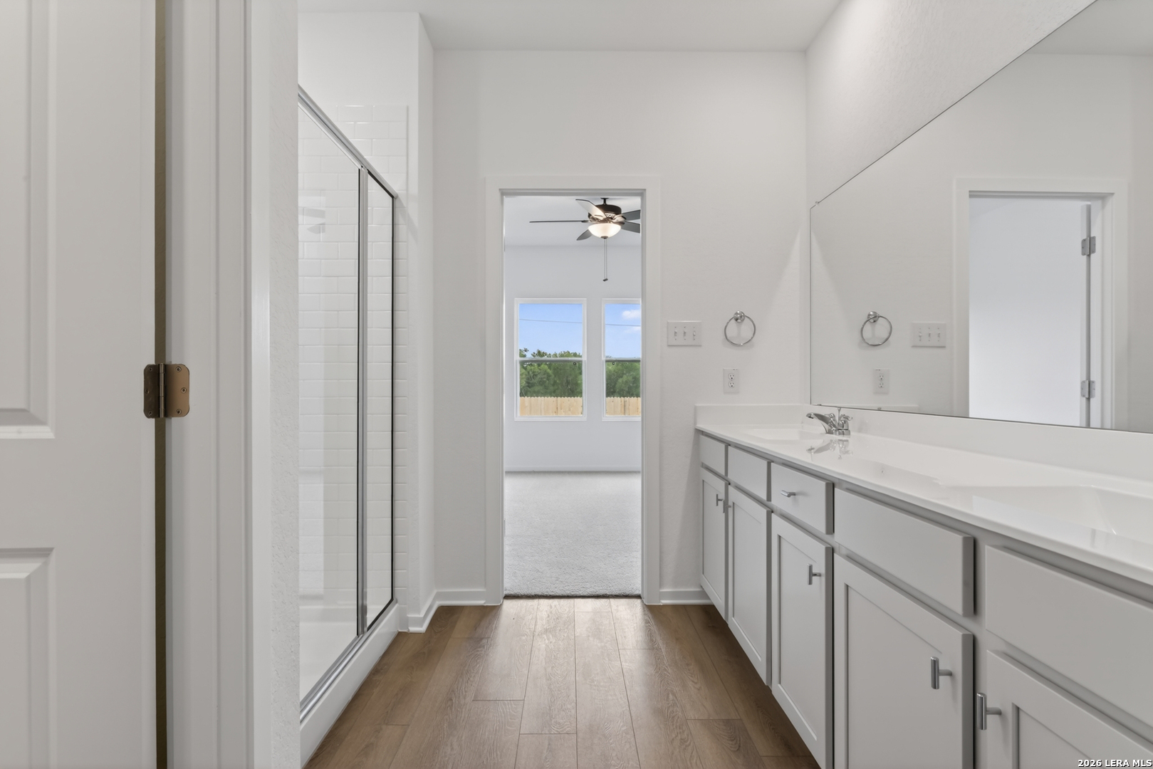 Charming two-story home featuring a gourmet kitchen with a center island that flows into a bright and comfortable family room. Large windows overlook the backyard and fill the space with natural light, creating an inviting setting for daily living and gathering with loved ones. The private primary suite offers an oversized shower, double vanity, and a walk-in closet designed for convenience. A loft and three secondary bedrooms with a shared bath provide plenty of space to relax, study, or enjoy quiet downtime. Covered patio on the back of the home. This home is part of our Artisan Collection - where earthy tones, tactile textures, and bohemian-inspired touches come together to create a warm, inviting atmosphere. Think copper-kettle popcorn by the fire, curated finishes, and a look that's effortlessly unique, comfortably livable, and beautifully real. This home is in Hennersby Hollow, with easy access to Hwy 90, Jungman Rd., major employers, SeaWorld, shopping, and top Medina Valley ISD schools. Community amenities include a pool, lazy river, playground, and activity lawn.