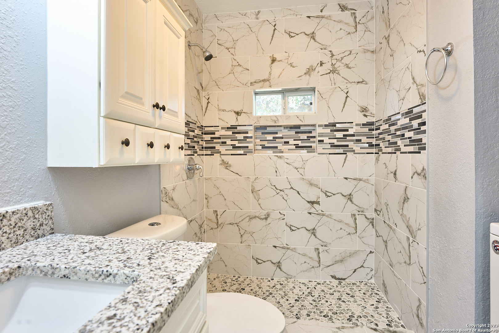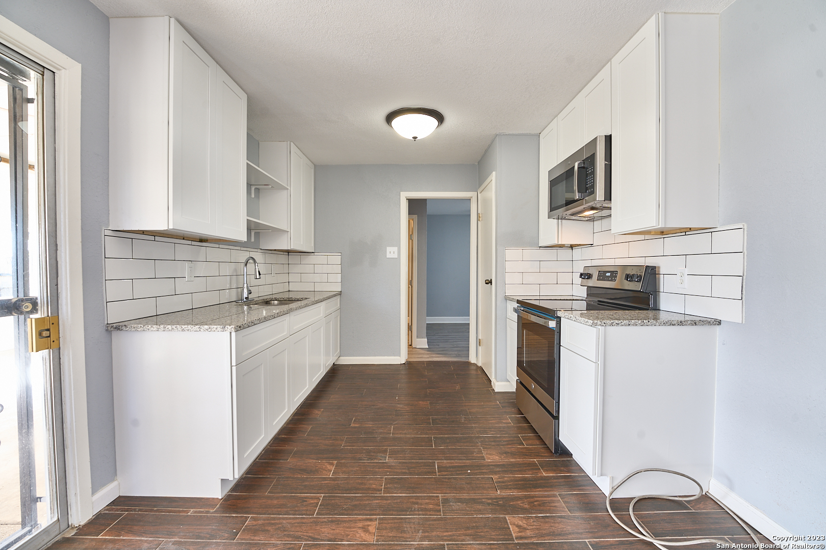 Welcome to your dream home, where convenience meets comfort! Nestled in a prime location just outside the gates of Lackland AFB, this recently renovated 3-bedroom, 1-bathroom residence is a perfect blend of modern living and accessibility. As you step inside, you'll be greeted by a thoughtfully redesigned interior that seamlessly combines style and functionality. The open floor plan creates a welcoming atmosphere, providing ample space for both relaxation and entertainment. The entire home has been tastefully updated with contemporary finishes, including sleek flooring and modern fixtures. This property has an expansive covered porch, providing the ideal setting for enjoying the beautiful Texas weather year-round. Whether you're sipping your morning coffee or hosting a barbecue with friends, this outdoor space is a true extension of the living area. This is a true owner carry note