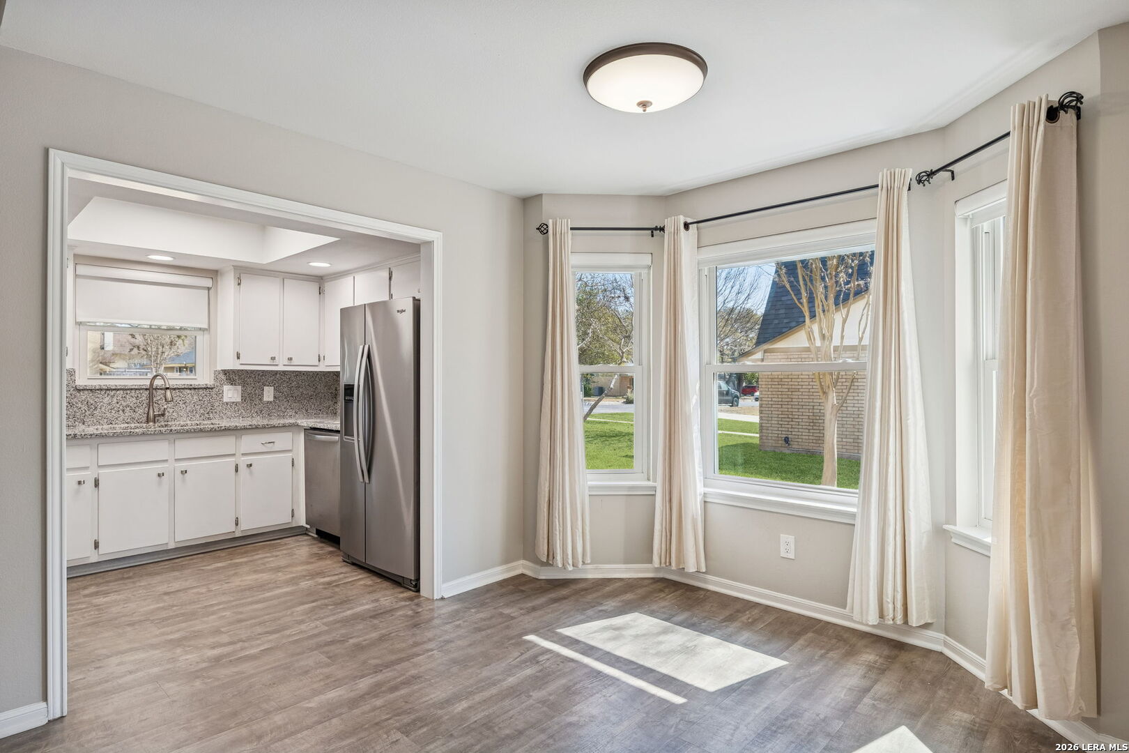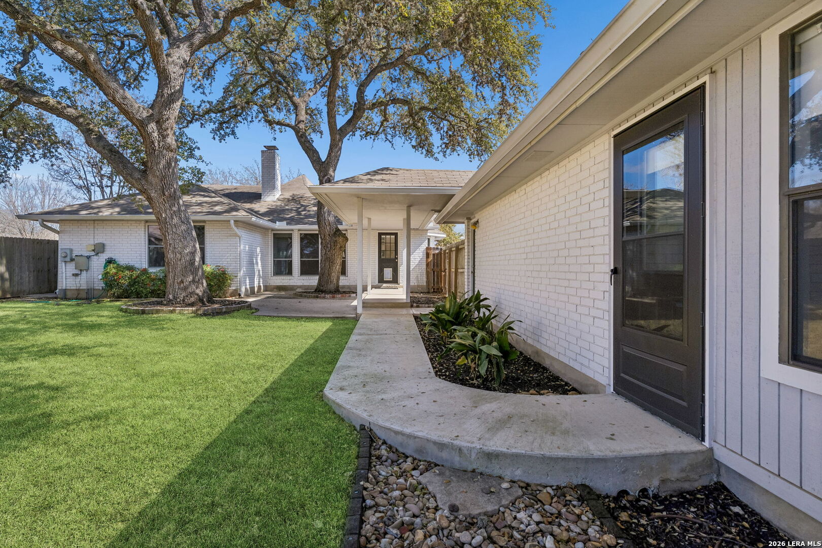 PRIME LOCATION | UPDATED | ADDITIONAL FLEX SPACE | AMAZING YARD Charming Tudor-style home located in the heart of Boerne, TX, positioned on a quiet cul-de-sac just minutes from historic Main Street and within highly regarded Boerne ISD. This beautifully updated 3-bedroom, 2-bath residence offers a rare combination of character, prime location, and proven income potential. The open living and dining area features a wood-burning fireplace, fresh interior paint, new flooring, and abundant natural light through energy-efficient double-pane windows. The functional layout provides seamless flow for everyday living and entertaining. The updated kitchen is appointed with granite countertops, tile backsplash, farmhouse sink, and stainless-steel appliances. A versatile flex space with private exterior entrance and dedicated HVAC system offers flexibility for a home office, fitness room, guest space, or creative studio. The fenced backyard includes a sprinkler system for easy maintenance, and a covered walkway connects to the two-car garage. Previously utilized as a successful long-term rental, this property presents an excellent opportunity for investors seeking an income-producing home in Boerne, as well as owner-occupants looking for a centrally located residence near downtown Boerne shopping, dining, top-rated schools, and local amenities. Move-in ready with strong investment appeal in one of Boerne's most desirable and walkable neighborhoods. Schedule your showing today. Main home is 1,120 +/- sq ft and additional heated and cooled flex space is 280 +/- sq ft.