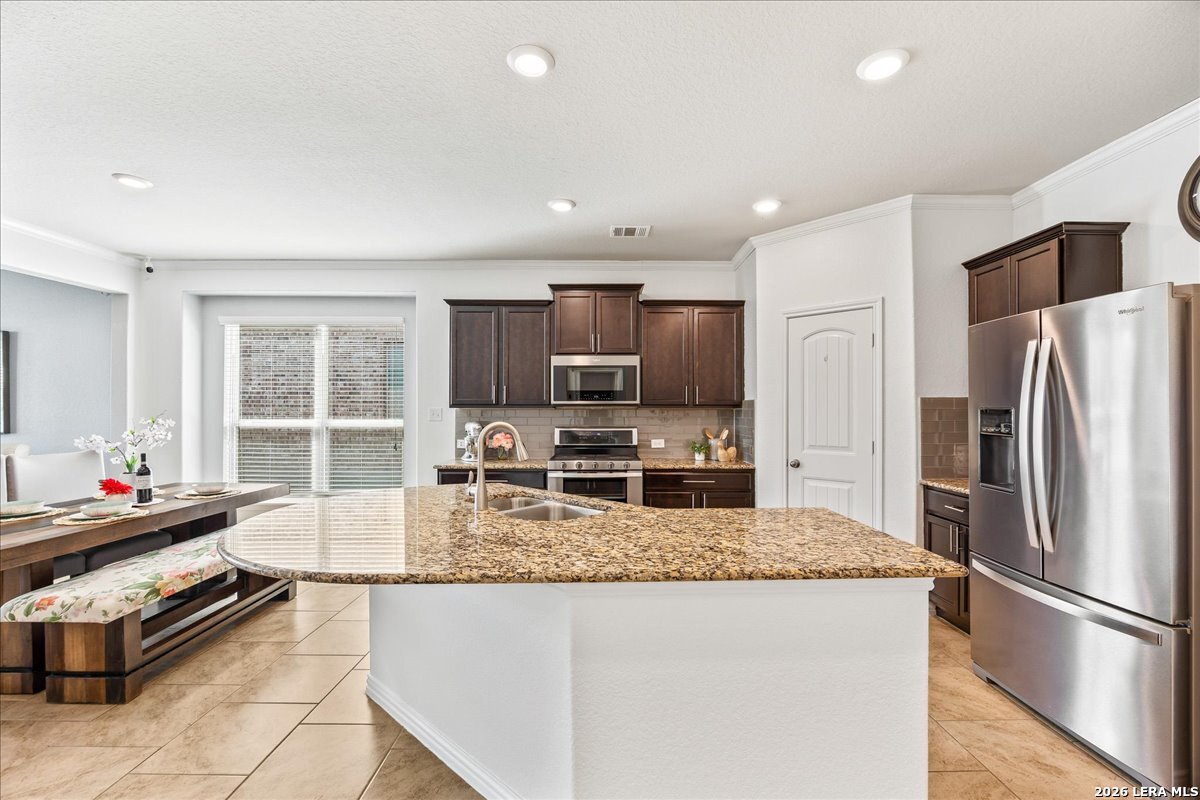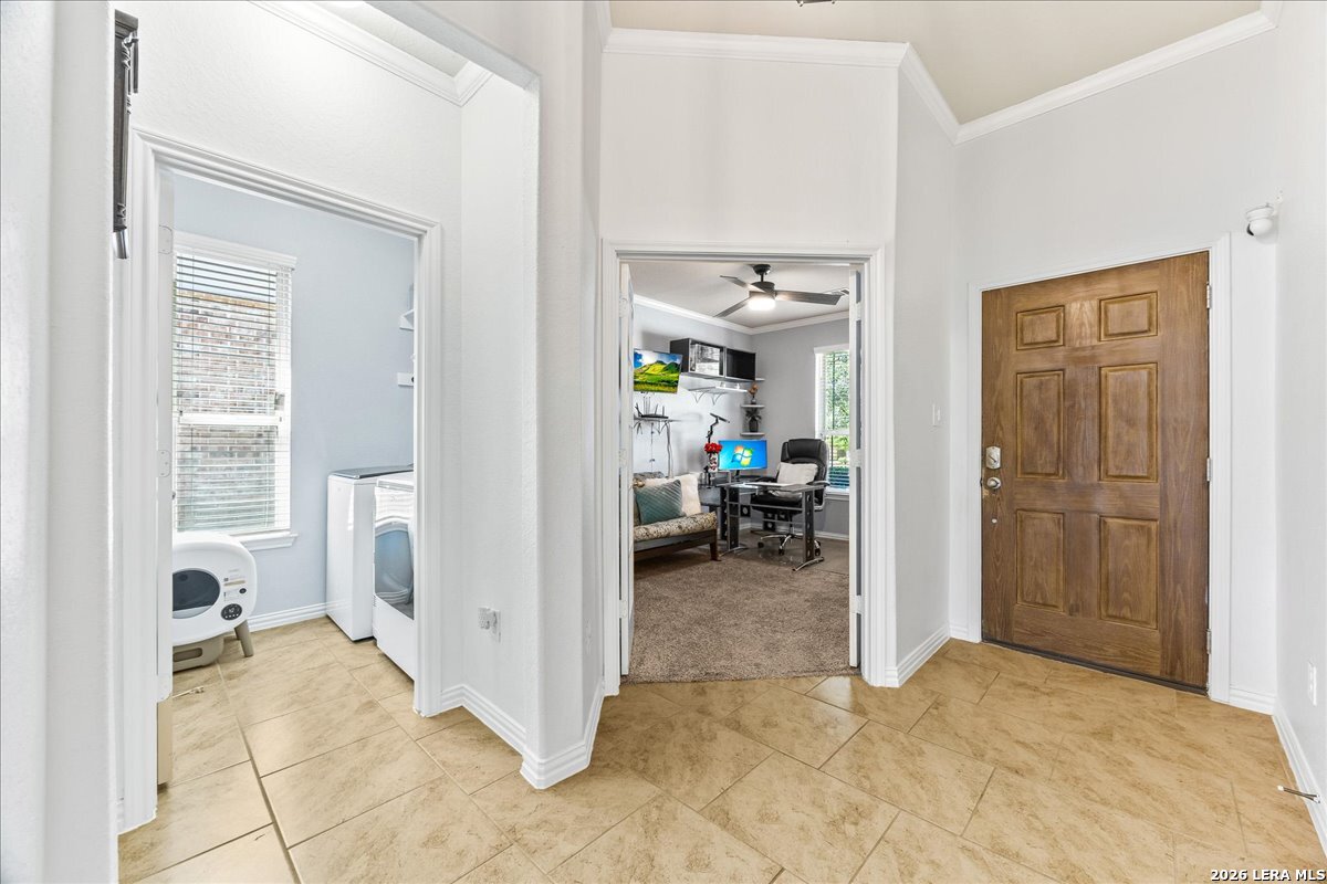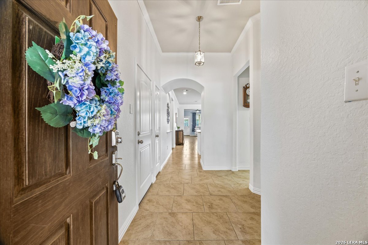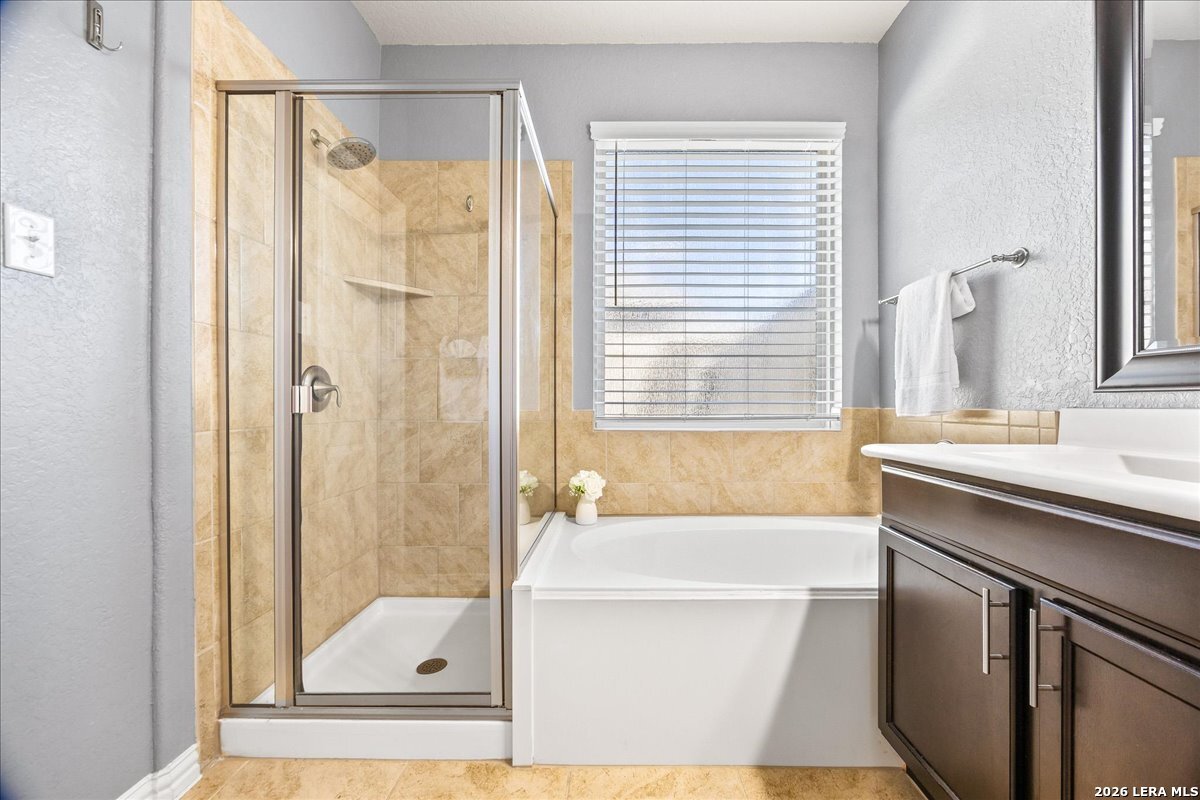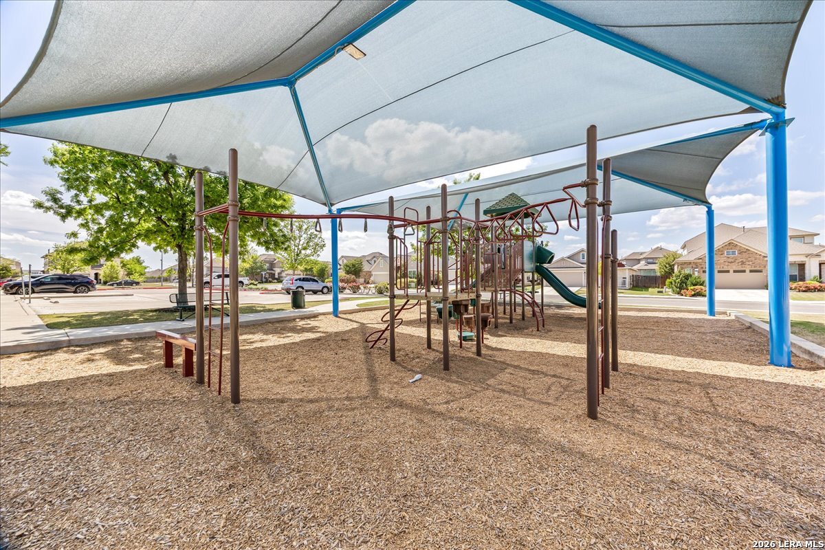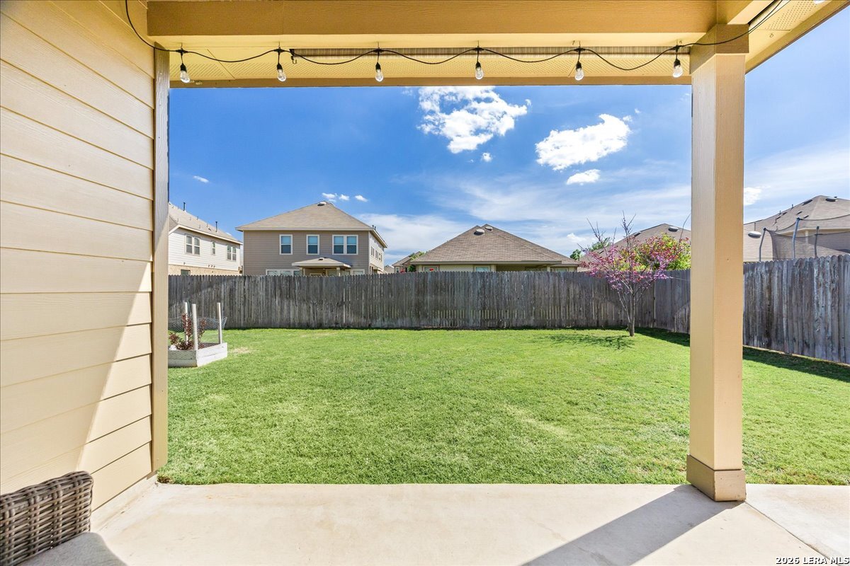 This beautiful 1,771 sq ft single-story home offers a fantastic, no-stairs layout featuring three spacious bedrooms, two full baths, plus a dedicated office or study-you truly have to see it in person! Built in 2016, this open-concept home has been well cared for and thoughtfully maintained, including a NEW roof and water softener replaced in March 2026 for added peace of mind. The layout is perfect for everyday living and entertaining. The kitchen, at the heart of the home, showcases rich walnut-toned cabinetry, granite countertops, a walk-in pantry, and updated Whirlpool stainless steel appliances-including gas cooking and a double oven. It flows seamlessly into the dining area and an expansive living room. The private owner's suite is tucked toward the back of the home and features a spacious ensuite bath with a soaking tub and dual vanities. Step outside to relax on the covered patio overlooking a fully fenced, peaceful backyard. Enjoy fantastic neighborhood amenities including a community pool and playground, all within the highly sought-after Northside ISD. Conveniently located near shopping, Hwy 211, 1604, 151, and Lackland AFB-this home truly offers both comfort and convenience.
