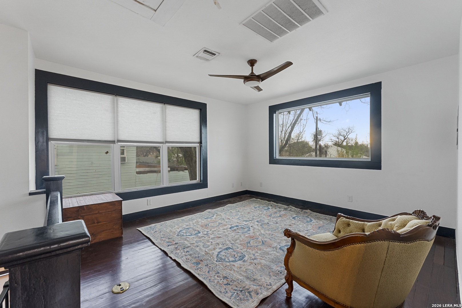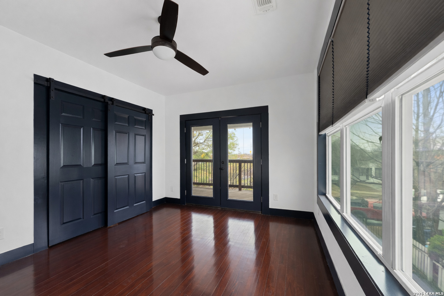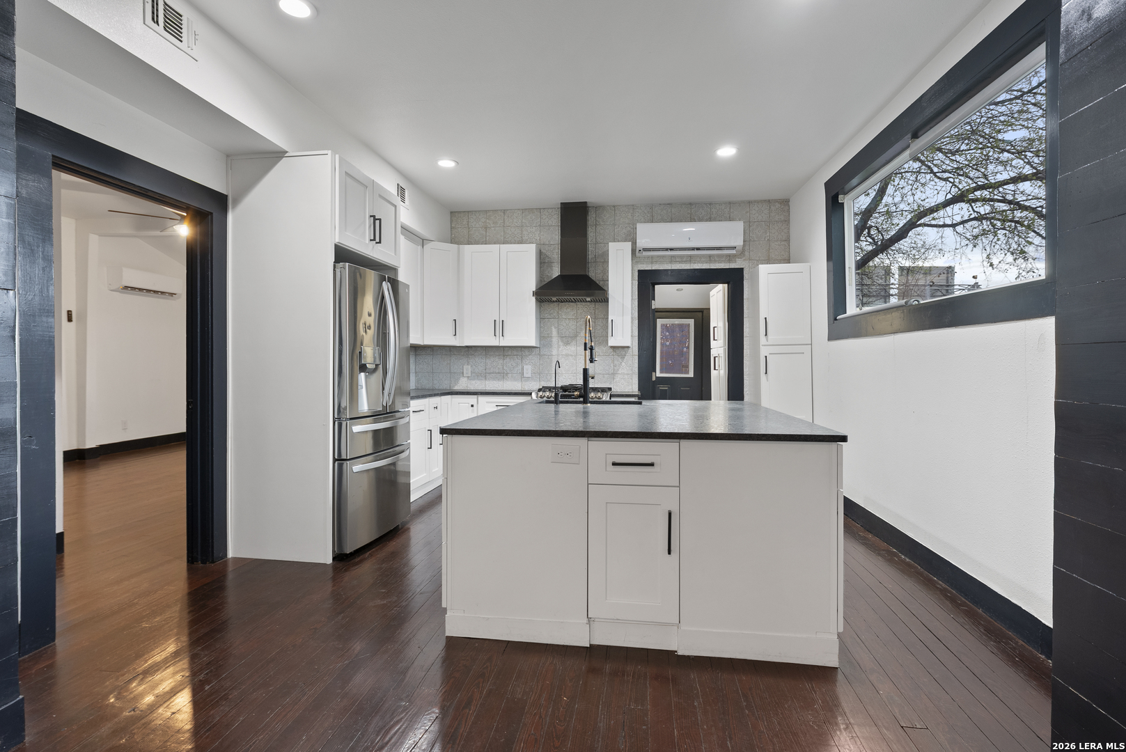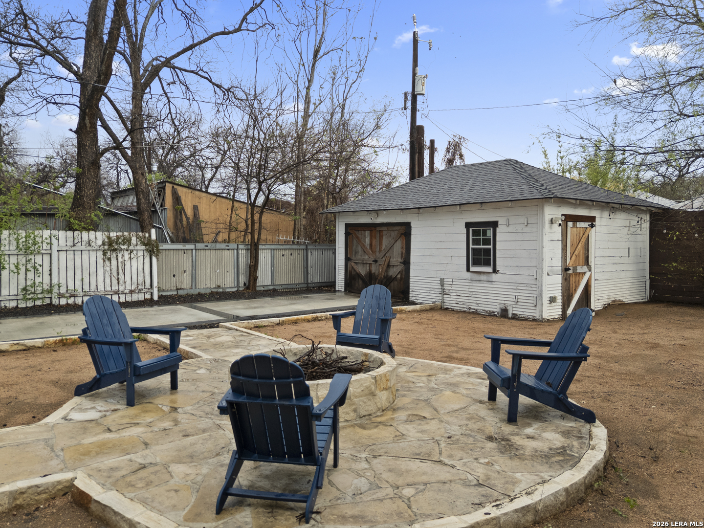 Beautifully restored 1914 historic home blending timeless character with modern updates. Enter through private wrought iron gates to a home featuring an oversized front porch and balcony, high ceilings, abundant natural light, and mostly original hardwood floors. The open floor plan includes a downstairs primary suite with spa-style bath and deck access, plus an updated kitchen with granite countertops, stainless steel appliances, and a large island. Upstairs offers three spacious bedrooms, a sitting/game room, and a balcony with downtown views. Detached two-car garage, privacy fence, tankless water heater, and major system updates. Located minutes from the San Antonio River Walk, The Pearl, Blue Star Arts Complex, and Hemisfair Park.
