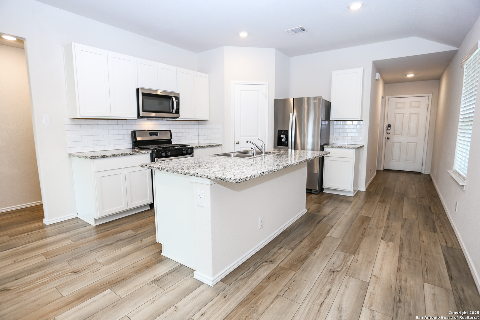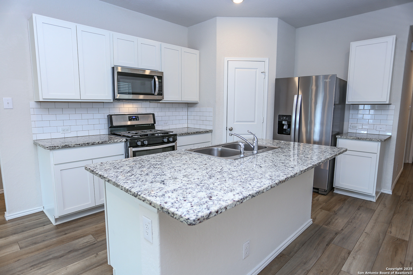 Brand New Rental House available for immediate move in. This 1296 sq. ft. one story three bedroom 2 bath features an open floorplan with large combined living and dining. All floors are hard surface...NO carpet. The kitchen is a chef's dream with stainless steel appliances, including a refrigerator and large island creating all the cooking space you will need! The oversized Primary bedroom is separated from the other two bedrooms offering privacy with a nice size walk in closet. Relax in your back yard without the maintenance (mgmt. company maintains). 2 car attached garage. Schedule your private tour today! Pictures may be a different location but same floorplan