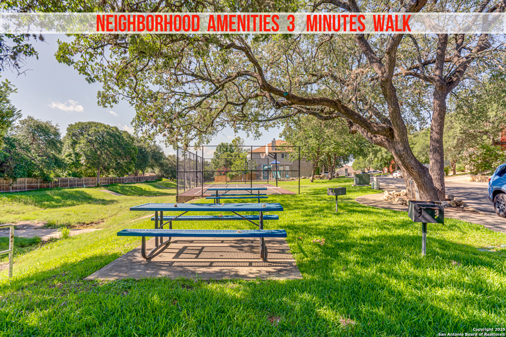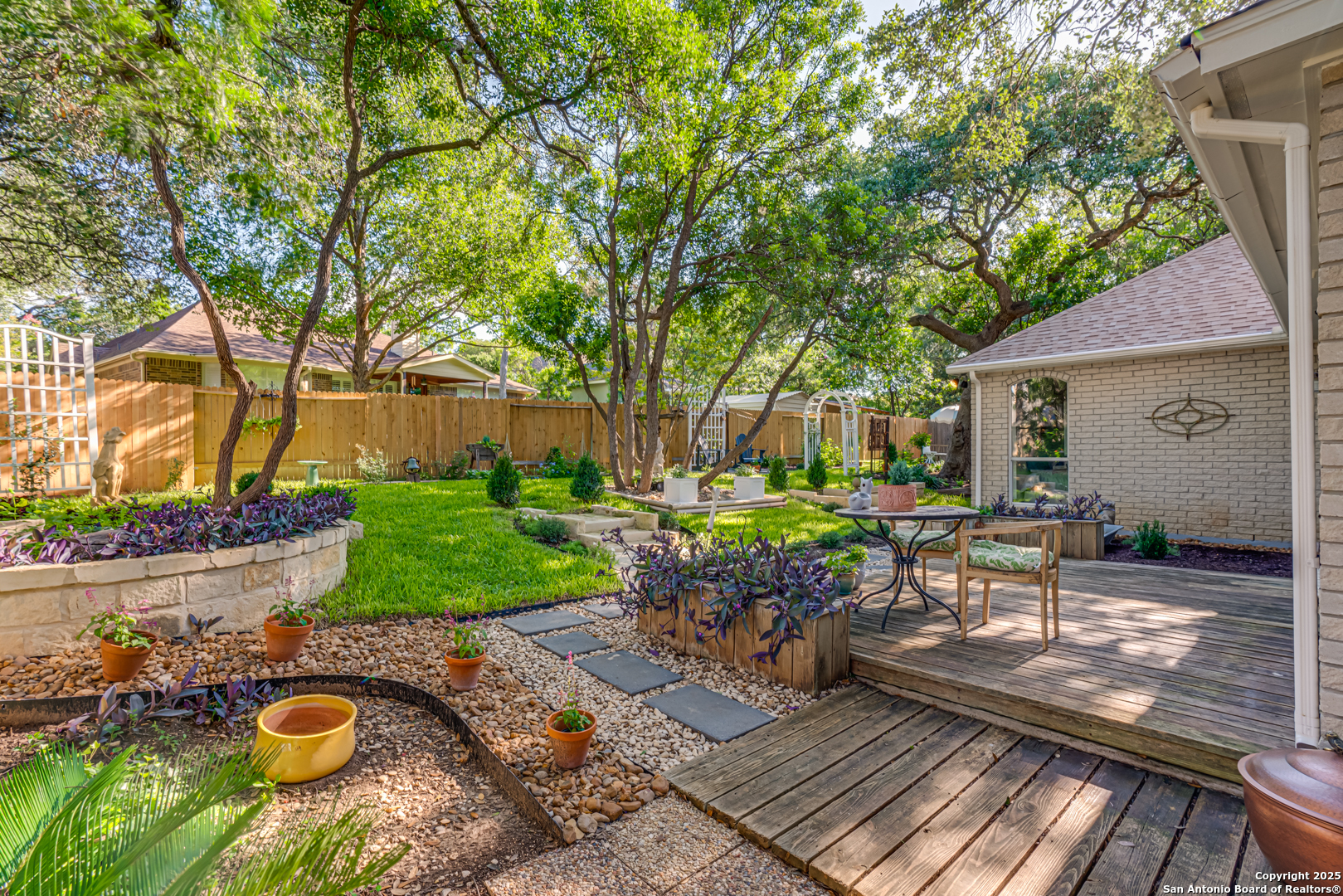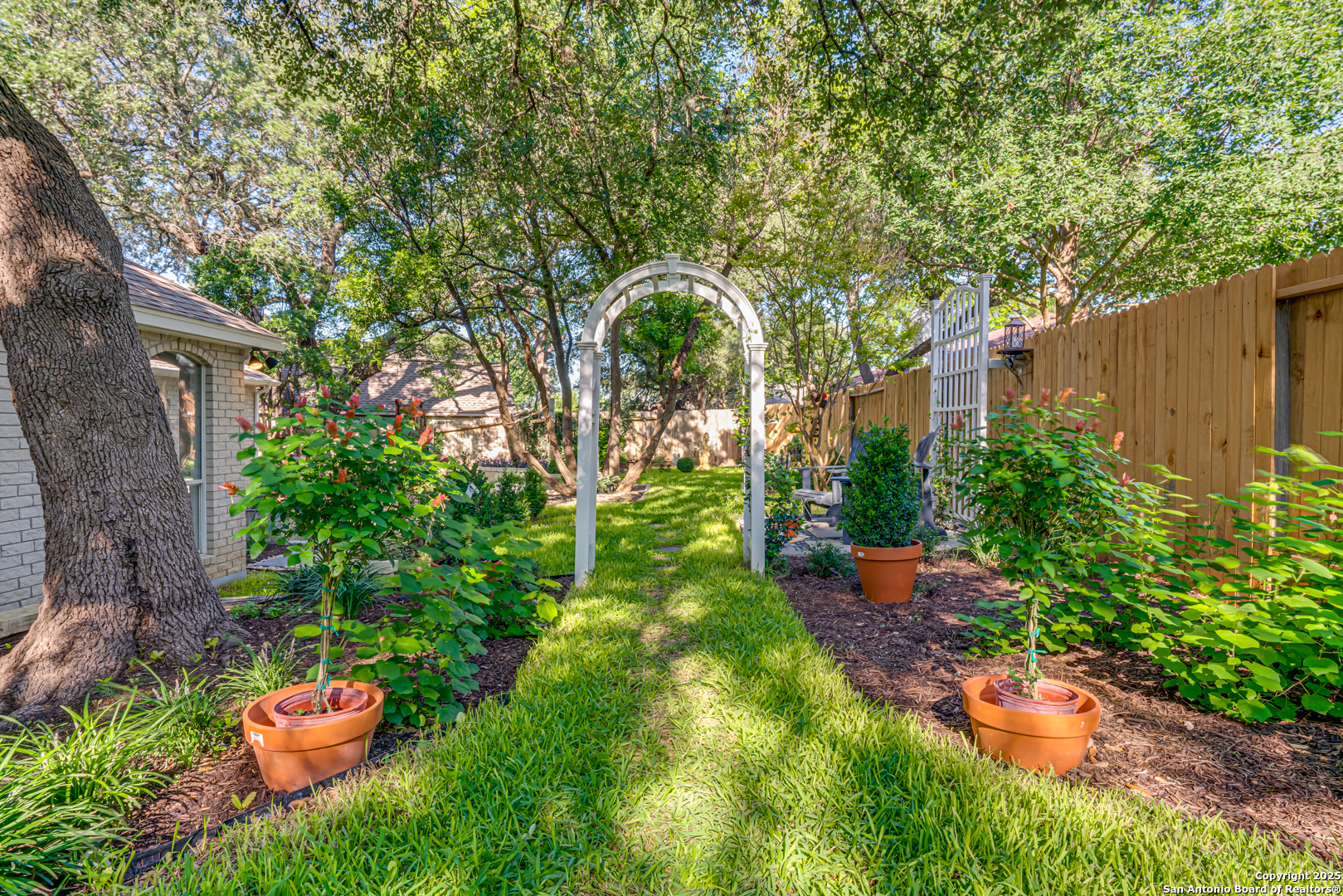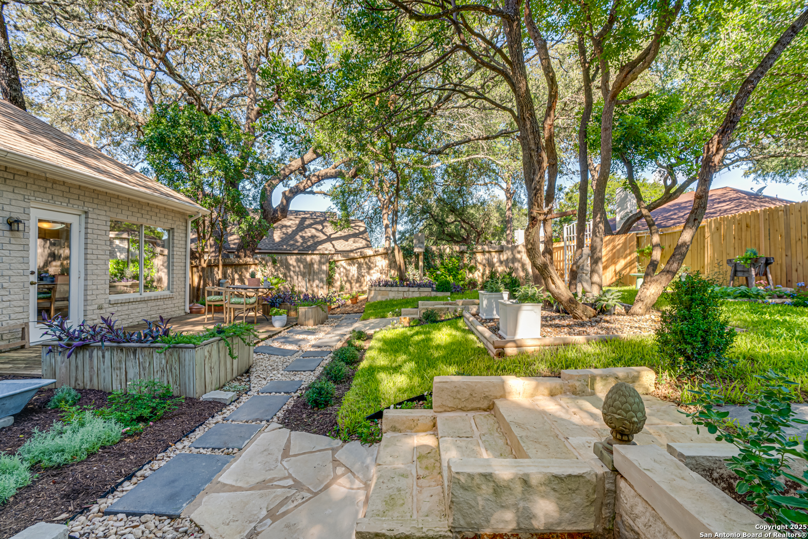 Tucked inside a quiet gated community near UTSA, this charming one-story home offers 4 bedrooms, 2 bathrooms, and just over 2,100 sq ft of thoughtfully maintained living space. From the moment you arrive, the front and backyard greet you with lush, garden-style landscaping, carefully designed as a peaceful oasis. A French-draining irrigation system runs from the backyard to the front, making maintenance easy and efficient. Step inside to a spacious layout featuring a formal dining room and a separate front living area that can easily serve as a second dining space, reading room, or flex area. Natural light pours into the open-concept living space, highlighting the updated kitchen with sleek countertops and a brand-new stove and oven, ready for daily meals or entertaining. The cozy gas fireplace in the living room adds warmth and charm, making it an inviting space to unwind. Each bedroom offers comfort and space, while the primary suite provides a relaxing retreat with a walk-in shower and soaking tub. Located just minutes from UTSA and one of San Antonio's largest entertainment districts, you'll enjoy quick access to shopping such as La Cantera, dining, and fun for all ages. With a blend of quiet comfort and unbeatable location, this home truly has something for everyone.