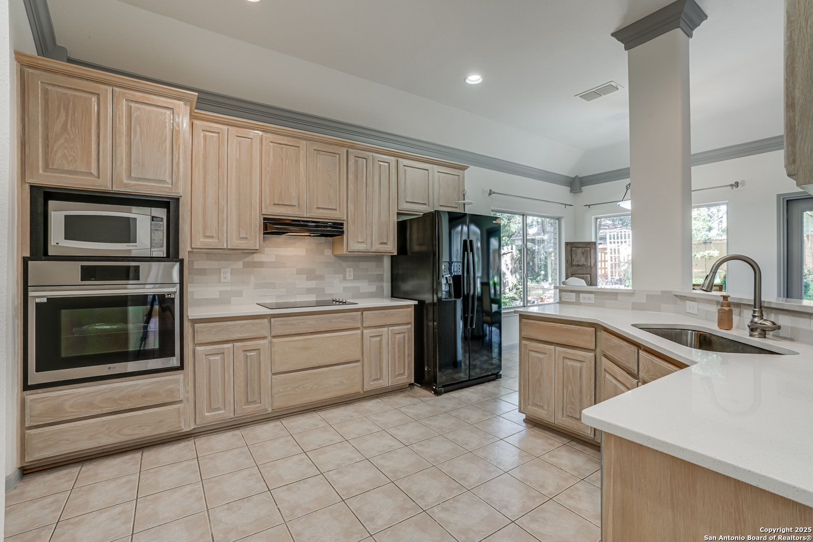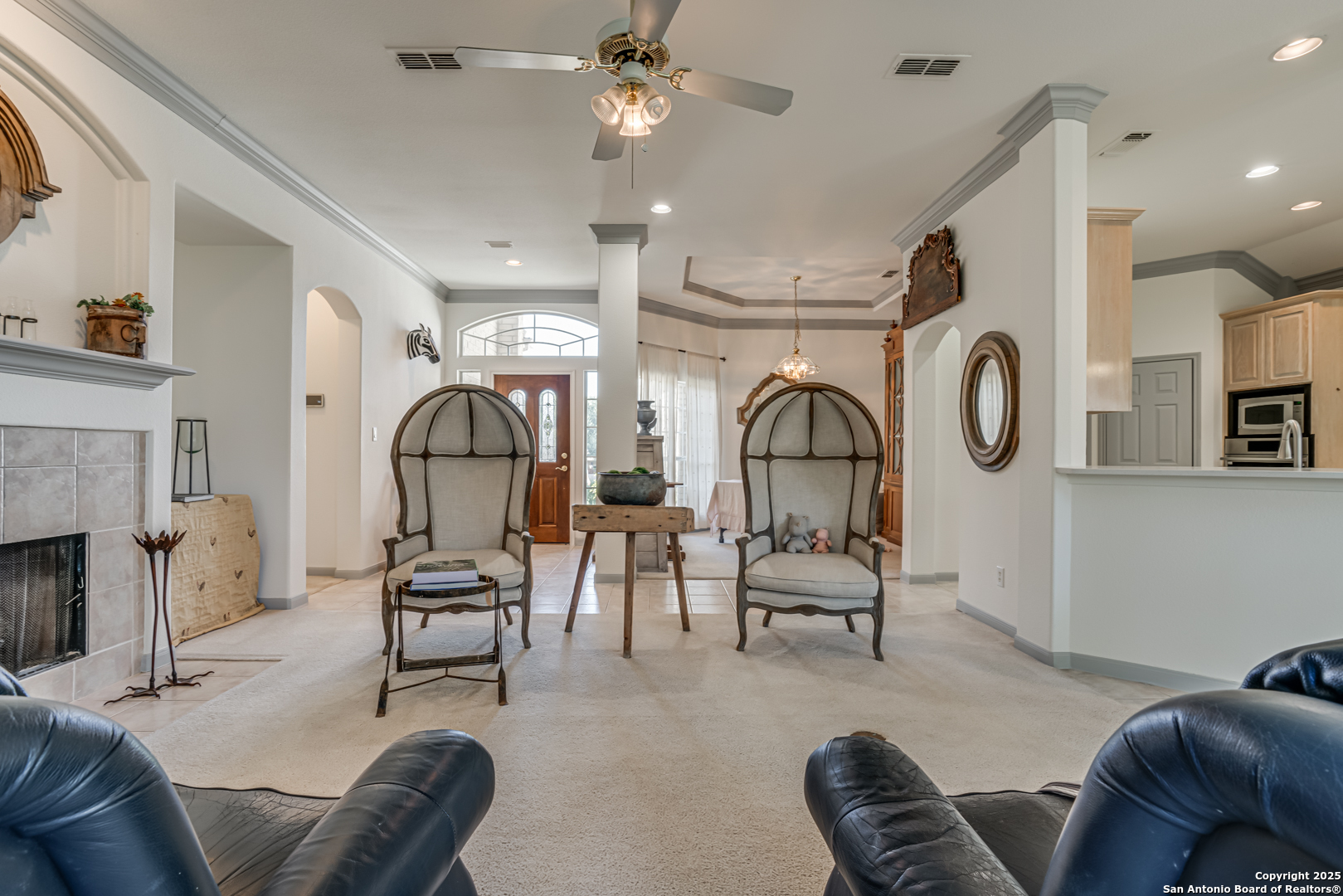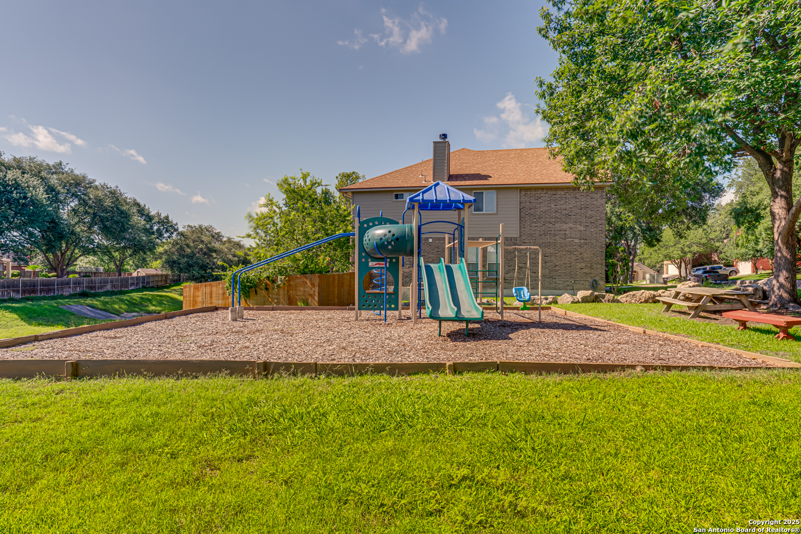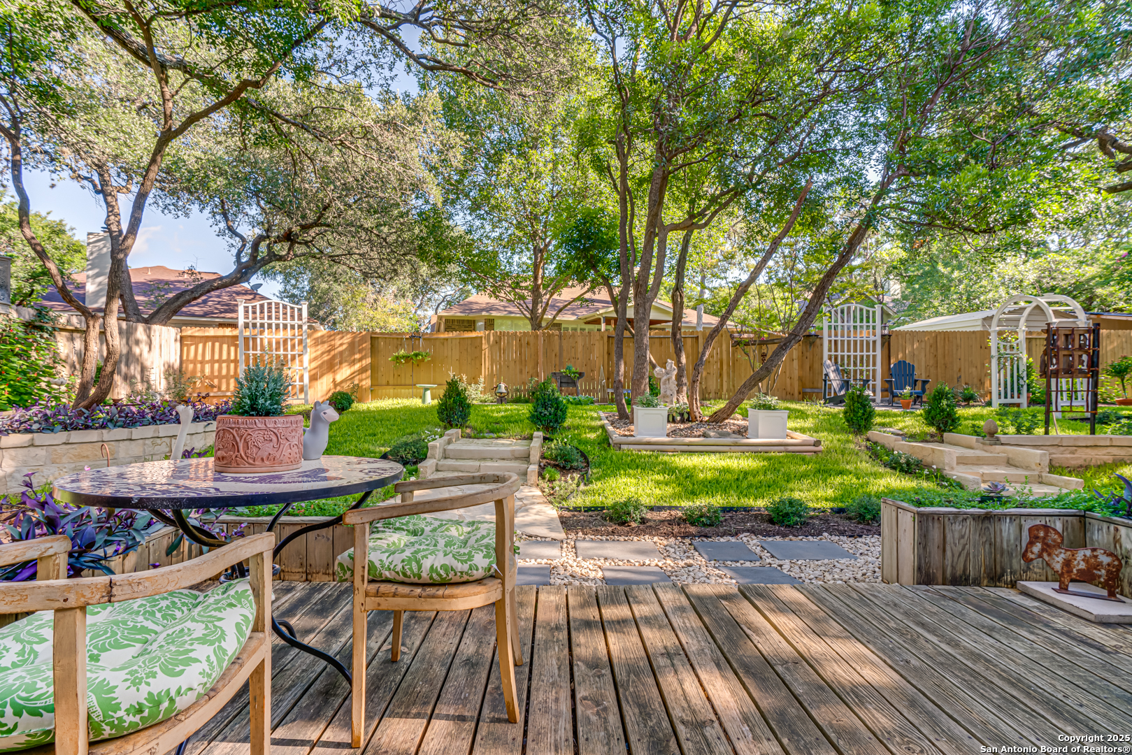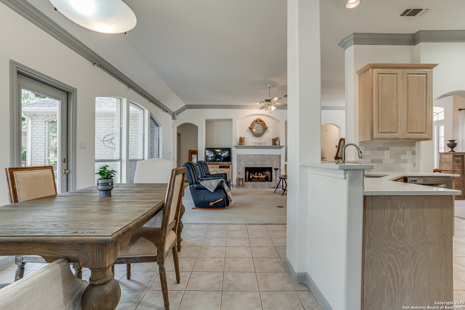 Tucked inside a quiet gated community near UTSA, this charming one-story home offers 4 bedrooms, 2 bathrooms, and just over 2,100 sq ft of thoughtfully maintained living space. From the moment you arrive, the front and backyard greet you with lush, garden-style landscaping, carefully designed as a peaceful oasis. A French-draining irrigation system runs from the backyard to the front, making maintenance easy and efficient. Step inside to a spacious layout featuring a formal dining room and a separate front living area that can easily serve as a second dining space, reading room, or flex area. Natural light pours into the open-concept living space, highlighting the updated kitchen with sleek countertops and a brand-new stove and oven, ready for daily meals or entertaining. The cozy gas fireplace in the living room adds warmth and charm, making it an inviting space to unwind. Each bedroom offers comfort and space, while the primary suite provides a relaxing retreat with a walk-in shower and soaking tub. Located just minutes from UTSA and one of San Antonio's largest entertainment districts, you'll enjoy quick access to shopping such as La Cantera, dining, and fun for all ages. With a blend of quiet comfort and unbeatable location, this home truly has something for everyone.